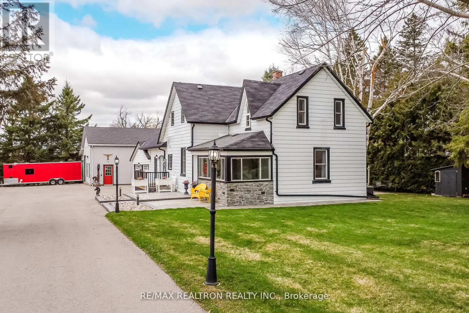 Yonge St/Shore Acres Dr A Rare Find - Updated Century Home PLUS HUGE SHOP**** Farmhouse Charm & Business Potential! This beautifully updated century home perfectly blends timeless farmhouse charm with modern convenience and incredible potential for a home-based business. Equipped with 200-amp service and situated on a gated, mature property with a newer paved driveway, outdoor lighting, and a peaceful creek, this lovingly maintained home offers privacy, natural beauty, and easy access to nearby amenities. Inside, you'll find a stunning new kitchen that complements the homes original character, as well as main floor laundry and a walkout to the backyard. Large windows invite views of wildlife and lush surroundings. Upstairs, the primary bedroom includes a walk-in closet & gorgeous 4-piece ensuite, and two additional bedrooms on the upper level give space for the whole family. The main floor offers a spacious formal dining room, large living room and a sun-room that invites you to relax and enjoy! Ideal for entrepreneurs, the property features an over 2900 sq. ft. shop with heat & AC connected by a breezeway equipped with a brand new 3-piece bathroom, a kitchenette and mezzanine providing optimum exposure and versatility for a wide range of uses including workshops, studios, hobbies or small business operations. Additional notable features include attached 2-car garage, new panel in shop, updated main floor 3-pc bathroom, and additional storage shed. With mature trees, serene views, and a setting that feels worlds away yet close to everything, this property is ideal for anyone looking to enjoy the charm of country life without sacrificing modern comforts or entrepreneurial opportunities. A rare find that's been truly cared for and is ready to welcome its next chapter. (id:27476)