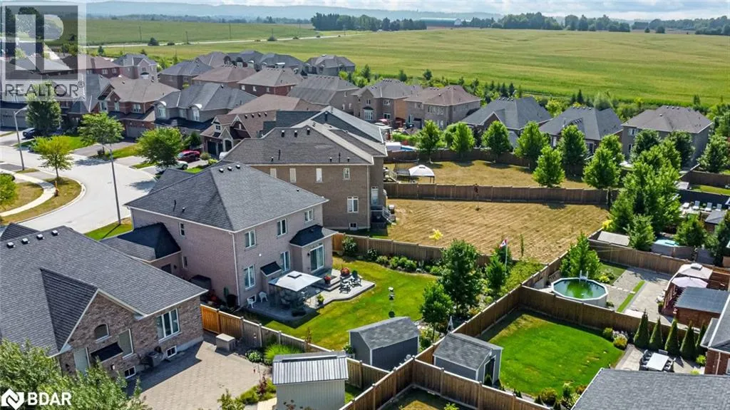 Hwy 27/Riley St/Copeland Cres IMMACULATE HOME WITH OVER 3,500 SQ FT OF EXCEPTIONAL LIVING SPACE ON A PREMIUM PIE-SHAPED LOT IN A QUIET NEIGHBOURHOOD! Discover this gorgeous, beautifully maintained 2-storey home in a quiet, family-friendly neighbourhood just minutes from parks, golf, the library, and a recreation centre, with quick access to Hwy 27 and 89, making it an excellent choice for commuters. Set on a premium pie-shaped lot with a 136 ft depth on one side, the property offers outstanding outdoor space and eye-catching curb appeal thanks to its timeless brick and stone exterior, landscaping, covered front entry, and stone patio walkway. Step through the elegant double doors into a grand two-storey foyer and over 3,500 sq ft of finished living space filled with tasteful finishes and natural light. The expansive, open-concept layout boasts 9 ft ceilings, hardwood floors, California shutters, and spacious principal rooms perfect for everyday living and entertaining. The stylish kitchen features white cabinetry, a dark contrasting island, granite counters, stainless steel appliances including a gas stove, a newer fridge, and a sliding door walkout to the large fenced backyard with a patio and storage shed. The inviting main living area centres around a cozy gas fireplace, while the main floor laundry room adds functionality with a laundry sink and direct garage access. Upstairs, the generous primary suite impresses with a double door entry, a walk-in closet, and a luxurious 5-piece ensuite with a water closet, dual vanity, and soaker tub. Each of the two additional bedrooms enjoys its own private ensuite, providing added comfort for family or guests. A fully finished basement expands the living space, and with a double car built-in garage plus driveway parking for six more, this #HomeToStay offers everything your family needs, both inside and out! (id:27476)