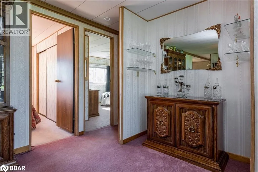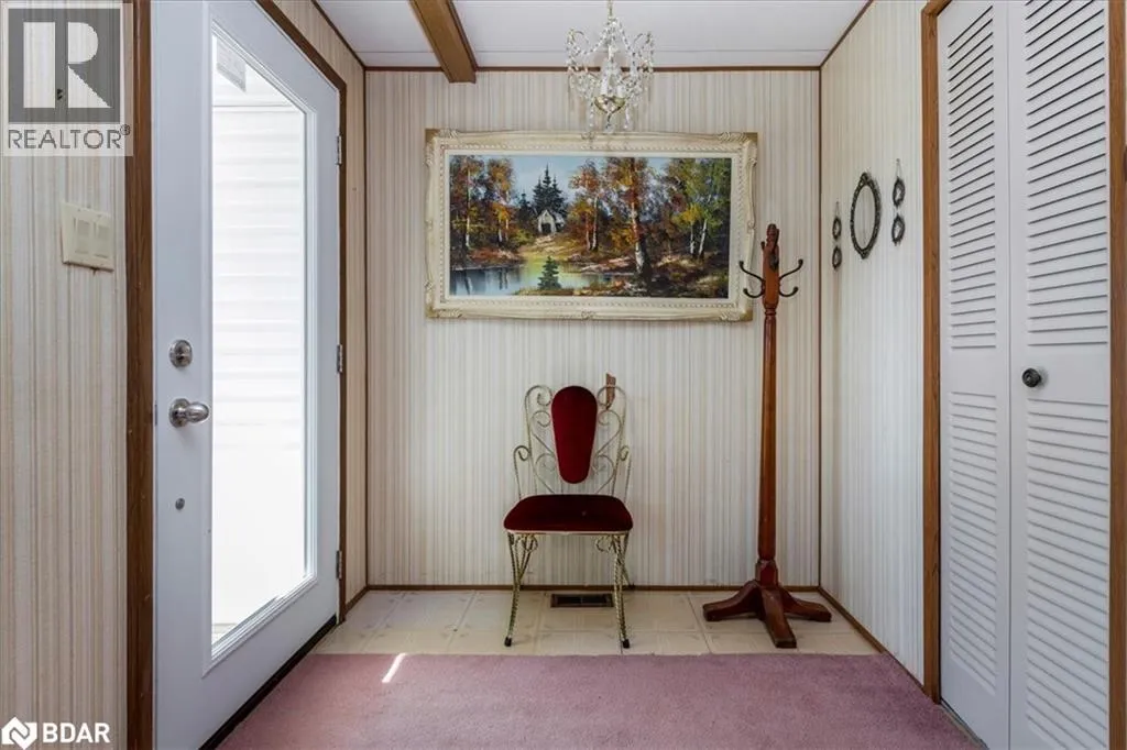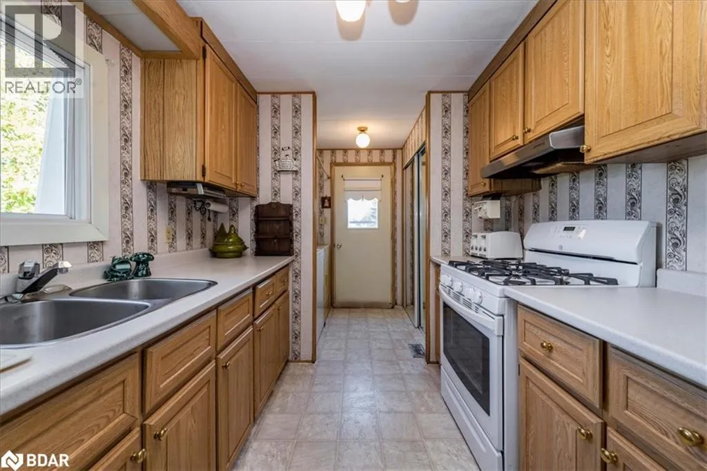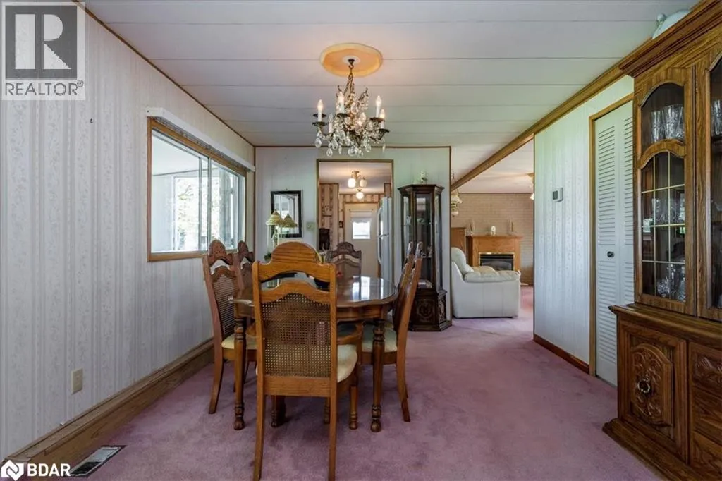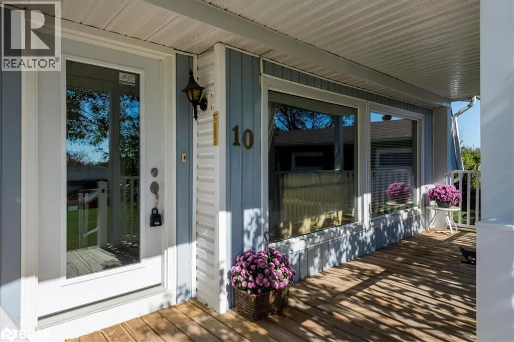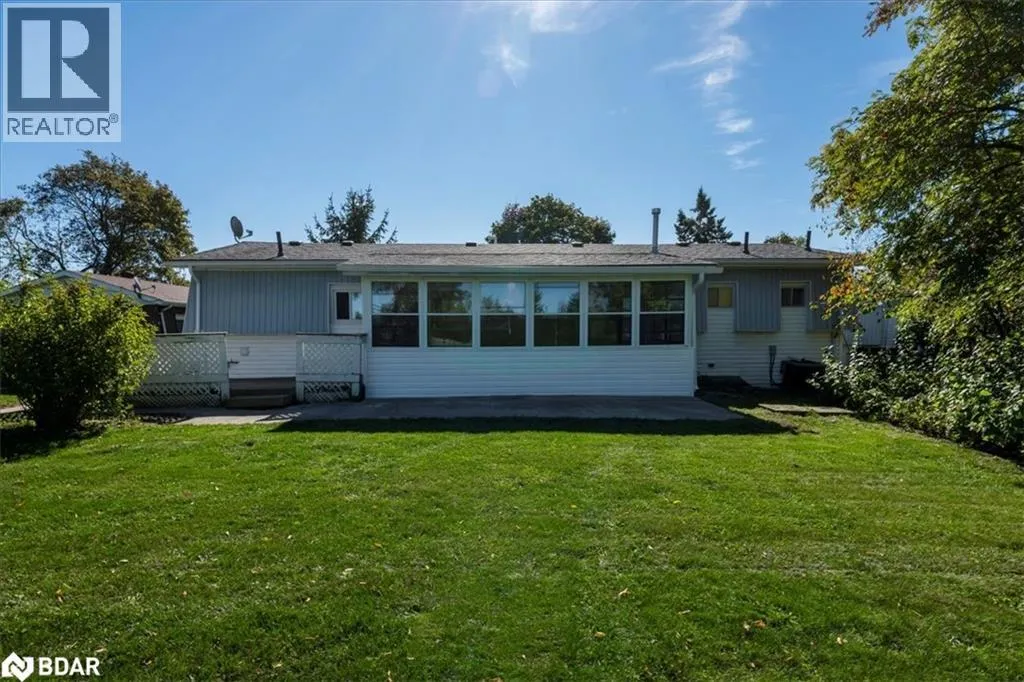 Lockhart Road to Weeping Willow Dr to left on Hawthorne to right on Mimosa Dr to left on Mimosa Cres. Great retirement living in the largest landlease community in Ontario and just south of Barrie. Conveniences galore within minutes. A small Mall on location with a Restaurant, variety store, pharmacy, hair dresser. A lovely home with a nice layout and great for a large dining room set so you can continue all your entertaining. Living room is large with big windows to let all the light in. A galley kitchen has lots of cupboards and your laundry is at the very end of the room. There are 1 1/2 bathrooms, two bedrooms, and a Sunroom. The outside of the home has had a peaked roof installed along with the siding changed to vinyl. Enjoy your afternoon or evening sitting on the front covered porch or on the back deck. So many activities within the community, you can be as busy or as quiet as you like. On going dances, darts, billards, kareoke, bingo, two outdoor heated salt water pools and the list goes on. Golf carts allowed ! New Fees 855.00 new taxes 155.30 (id:27476)
