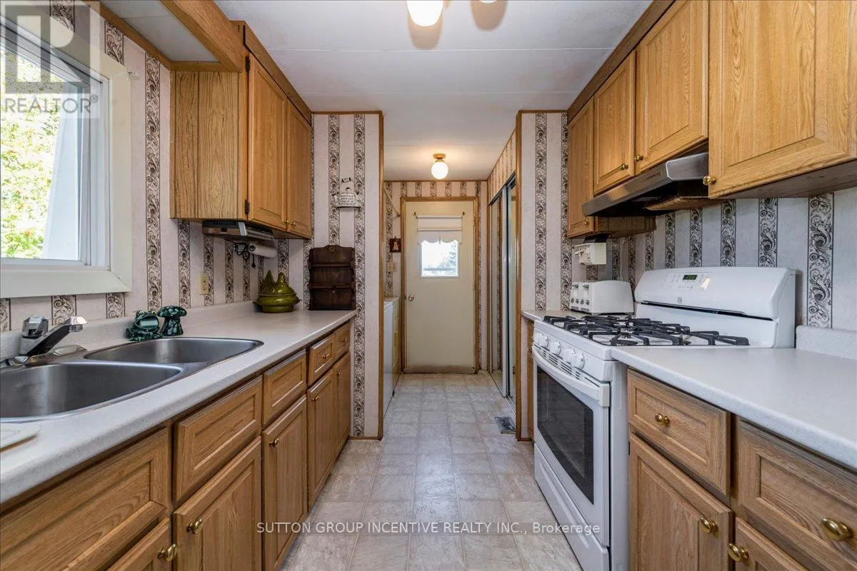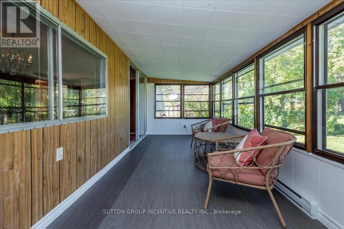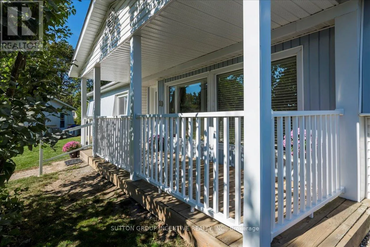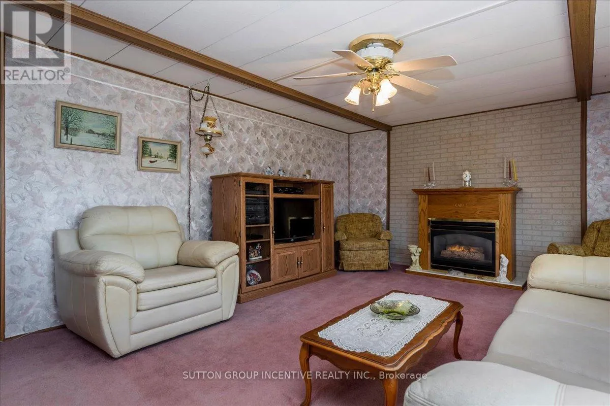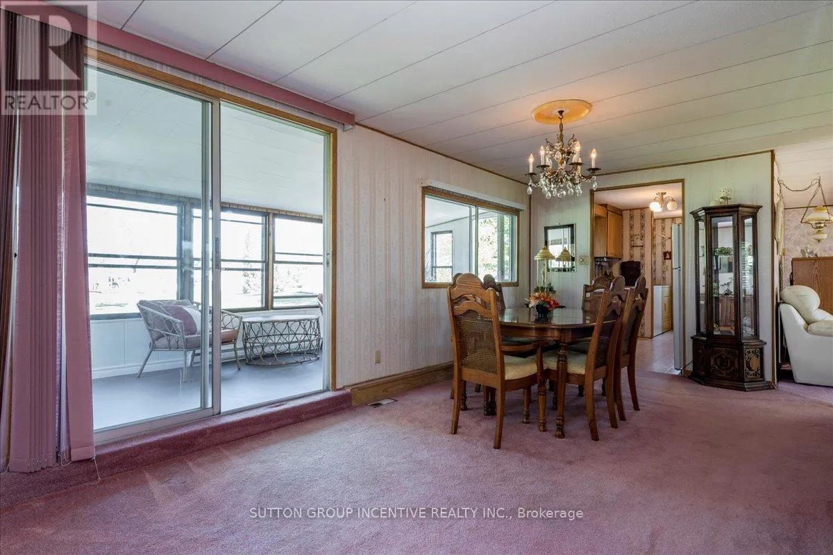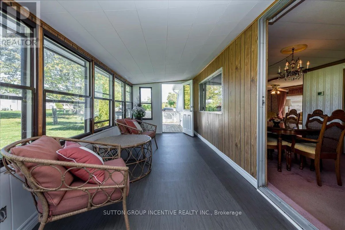 Cross Streets: Mimosa Drive. ** Directions: Lockhart road to Weeping Willow Dr to left on Hawthorne, right on Mimosa Dr left on Mimosa Cres. Great retirement living in the largest landlease community in Ontario and just south of Barrie. Conveniences galore within minutes. A small Mall on location with a Restaurant, variety store, pharmacy, hair dresser. A lovely home with a nice layout and great for a large dining room set so you can continue all your entertaining. Living room is large with big windows to let all the light in. A galley kitchen has lots of cupboards and your laundry is at the very end of the room. There are 1 1/2 bathrooms, two bedrooms, and a Sunroom. The outside of the home has had a peaked roof installed along with the siding changed to vinyl. Enjoy your afternoon or evening sitting on the front covered porch or on the back deck. So many activities within the community, you can be as busy or as quiet as you like. On going dances, darts, billards, kareoke, bingo, two outdoor heated salt water pools and the list goes on. Golf carts allowed ! New Fees 855.00 new taxes 155.30 (id:27476)