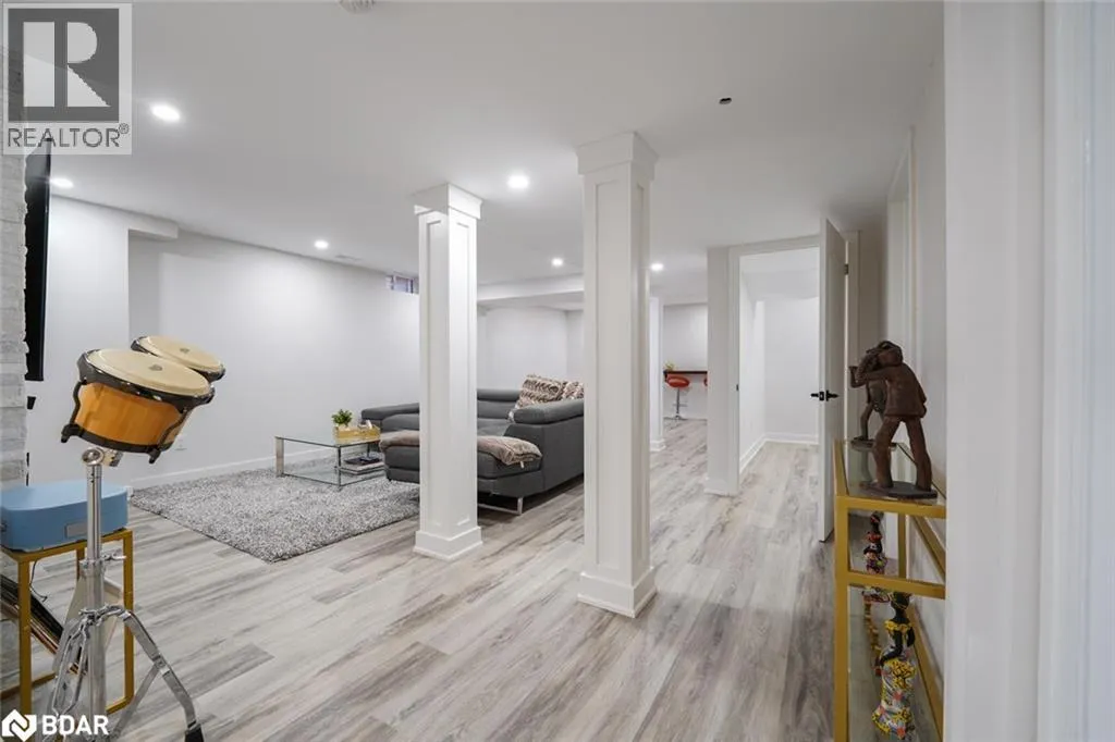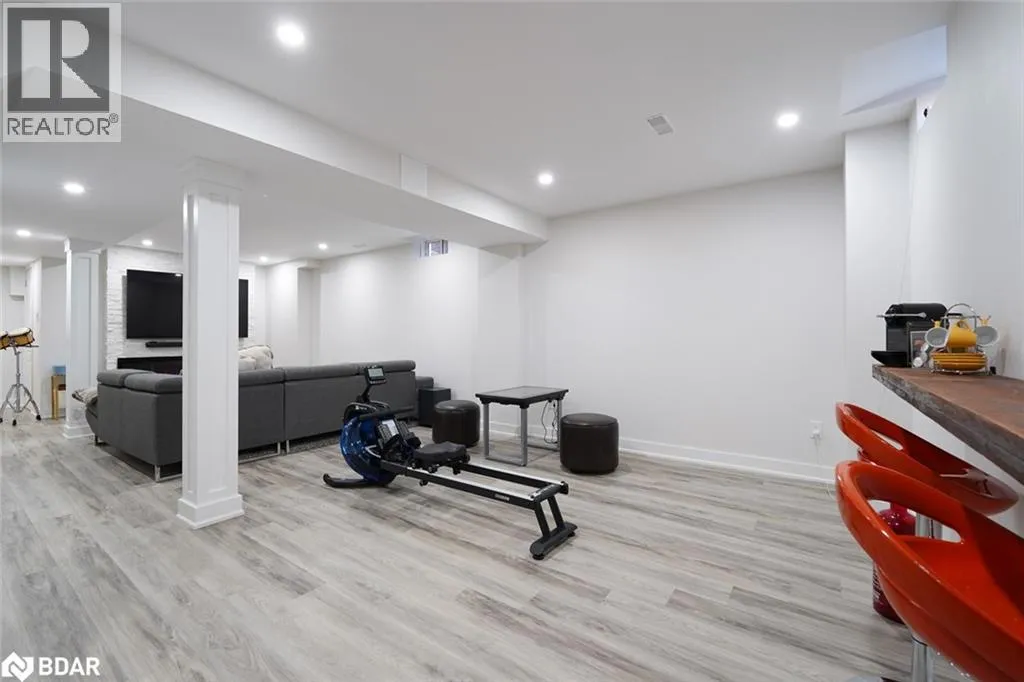 Innisfl Beach Rd to Webster to Hunter to Dawson A home crafted with intention and designed to inspire in the heart of Innisfil. From the moment you arrive, youâll feel the difference â the attention to detail, the quality of the finishes, and the warmth that only a truly custom-built home can offer. This move-in ready 5-bedroom, 5-bathroom detached home offers more than 3,600 sq. ft. of luxury living space in one of Innisfilâs most desirable family-friendly neighbourhoods. Inside, natural light fills the open-concept main floor, featuring hardwood flooring, 9-ft ceilings, and elegant spaces designed for both comfort and entertaining. At the heart of the home, the chefâs kitchen impresses with quartz countertops, refinished cabinetry, modern backsplash, and a spacious island perfect for family gatherings. A built-in scent-diffuser system adds a subtle touch of elegance, creating a truly one-of-a-kind living experience. Upstairs, every bedroom offers custom closet organizers and thoughtful design, while the finished basement provides additional living space, ideal for an in-law suite, home gym, or media room â perfect for growing families or guests. Step outside to your private backyard oasis, where stamped concrete pathways lead to a custom-covered patio, perfect for outdoor entertaining year-round. Enjoy the swim spa hot tub and panoramic six-person sauna, creating your very own wellness retreat at home. Additional highlights include a security system, epoxy-coated garage floor, and new garage doors that enhance both curb appeal and functionality. Every detail of this Innisfil dream home tells a story of craftsmanship, comfort, and design excellence. Itâs more than a place to live â itâs a lifestyle that welcomes you home every day. Every home tells a story â this one just happens to be unforgettable. Welcome to your next chapter. (id:27476)