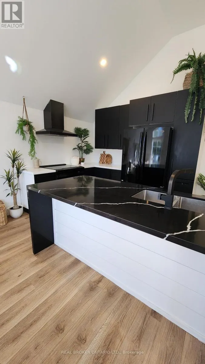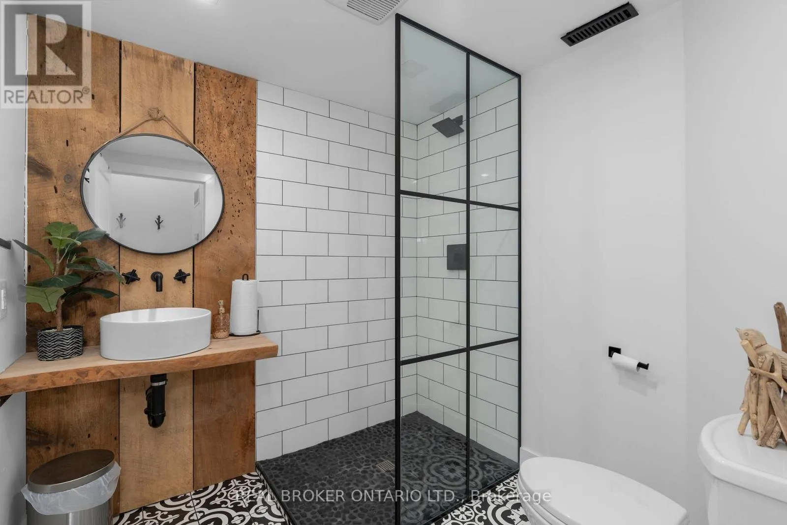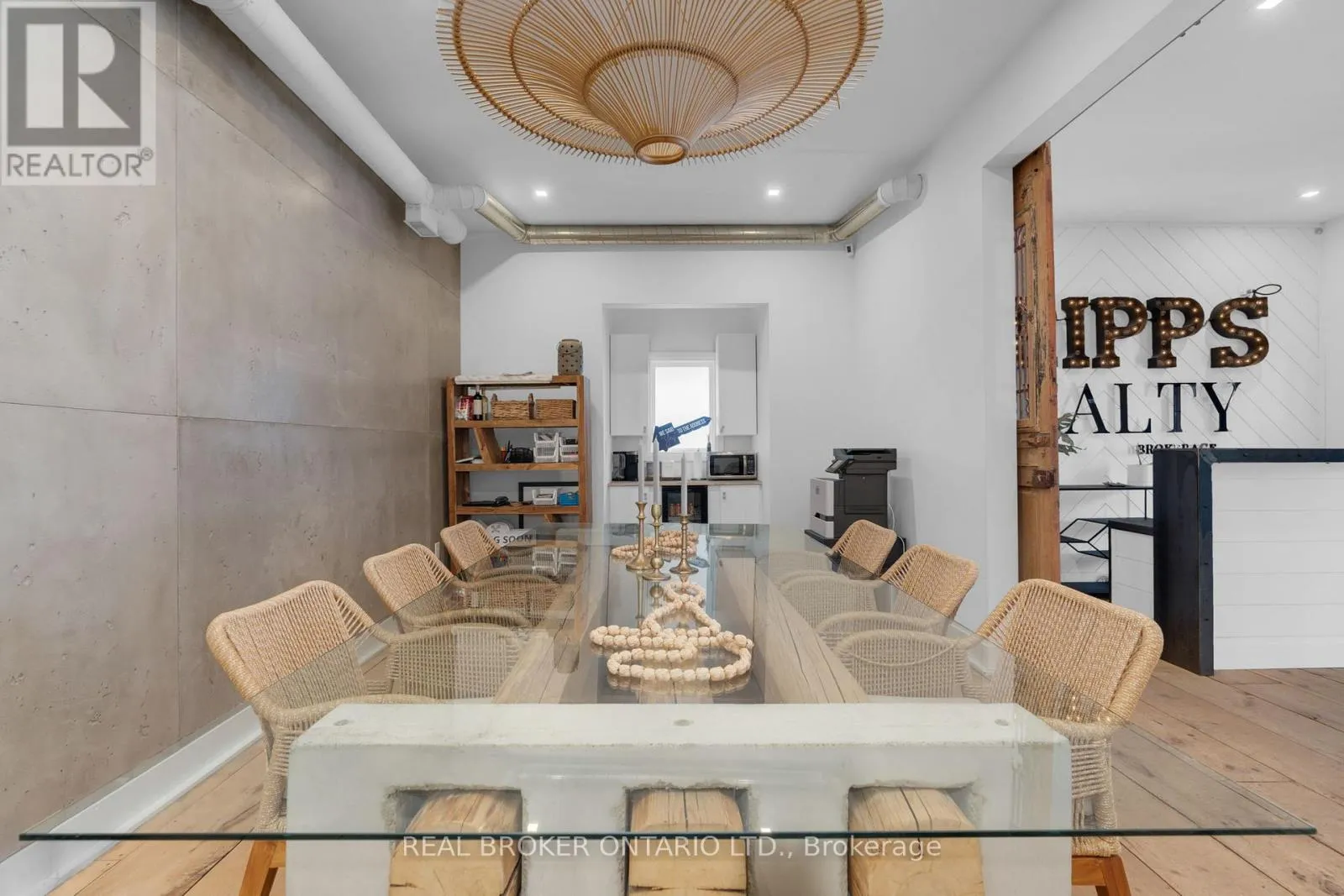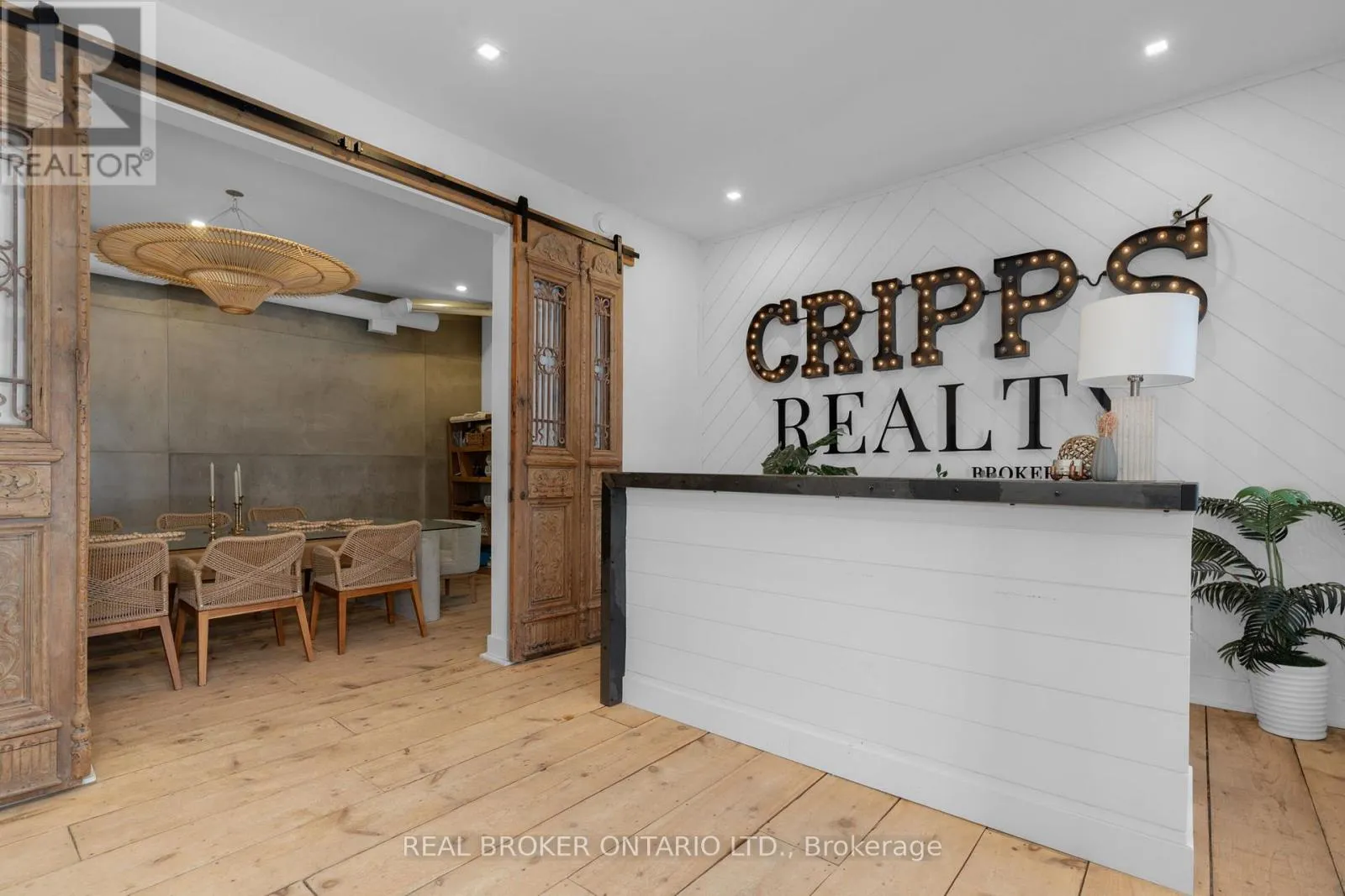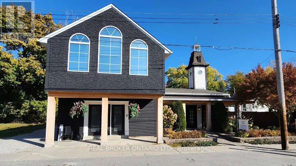 Cross Streets: Queen and Dufferin. ** Directions: Queen to Dufferin. One-of-a-kind mixed property with retail/office space plus two completely separate apartments, each with their own main floor laundry. Located in the heart of quaint Cookstown just 5 minutes from the 400 HWY this property has had many successful businesses over the years. Fully gutted and renovated in 2021 and 2022 all 3 units offer different character to the space. The main commercial unit has huge wide plank wood flooring and a wrap-around covered porch. You enter through garden doors to a glassed in office space with 10-foot ceilings and to your right a ship lapped wall perfect for your businesss logo. Through the Egyptian antique doors to the huge board room with Balinese light fixture (and pot lights) and industrial style tile work. A small kitchenette area and 3-piece bathroom are also in this space as well as a huge storage area with garage door and back door for all of your storage needs. To the north of the storefront, you will find two additional doors. The closest door will take you to a one-bedroom apartment with soaring cathedral ceilings, with sleek modern kitchen and quartz waterfall Cambrian countertops. The bedroom has a massive walk-in closet which could also double as a gym or office space/nursery etc. as well as another closet. The 5-piece bathroom has a huge shower and stand-alone soaker tub with dual bathroom vanity. To the next door you will find an adorable one-bedroom apartment with barn doors, massive shower with floating vanity and main floor laundry. With tons of parking around back, a garage, as well as on the boulevard in front of the property your tenants or commercial visitors will never be at a loss for parking. Endless opportunities for this property. What business will you open up? Vacant building open to any closing date. Both apartments painted 2025. Ac 2024 (id:27476)