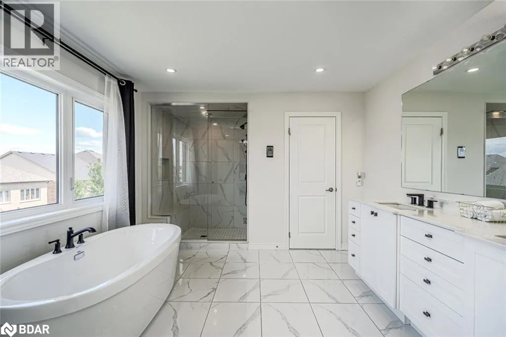 7th Line/Webster Rd/Wickham Rd/Corsal Crt ELEGANT FAMILY HOME SHOWCASING A DESIGNER KITCHEN, A SPA-LIKE PRIMARY SUITE, PREMIUM UPGRADES, & OVER 3,400 SQ FT OF STYLE! Discover refined living in this exceptional home, perfectly situated in a desirable neighbourhood on a quiet court within walking distance of schools and parks. Just minutes from Lake Simcoe, Big Cedar Golf and Country Club, and the vibrant amenities of Innisfil Beach Road, this home offers an unparalleled lifestyle of convenience and luxury. The impressive exterior opens to a backyard with a rough-in BBQ gas line, and ample green space ideal for relaxation and entertaining. A tandem 3-car garage with an EV charging port and extended driveway parking provides unmatched practicality. Inside, the main floor boasts white oak hardwood floors and a bright open-concept layout with a modern eat-in kitchen and living room with a gas fireplace, a walkout to the backyard, a formal dining room, and a versatile bedroom that easily converts to an office if needed. The designer kitchen elevates everyday living with quartz countertops and slab backsplash, a large island, a custom range hood, crown moulding, upgraded tile flooring, and soft-close cabinetry. A hardwood staircase with sleek black steel spindles adds timeless character and leads to 4 spacious upper-level bedrooms - including a primary suite with 2 walk-in closets and a spa-inspired ensuite featuring a quartz double vanity, a soaker tub, upgraded tiling, and a frameless steam shower with a quartz seat and digital controls. A second bedroom offers its own 4-piece ensuite, while the remaining bedrooms share a generous 5-piece bath. The basement with a bathroom rough-in presents endless opportunities for customization, and the home is further distinguished by pot lights throughout, a 200-amp panel, and an array of premium builder upgrades. Elevate your lifestyle with this extraordinary #HomeToStay, offering the ultimate combination of elegance, comfort, and everyday ease. (id:27476)