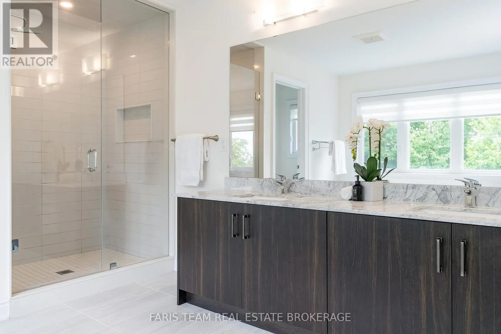 Lawson St/Blackmore St Top 5 Reasons You Will Love This Home: 1) Discover this beautifully designed spacious home, offering comfort, style, and functionality, while boasting four generous bedrooms, a versatile upper level family room complete with a charming balcony, and a fully finished walkout basement, perfect for entertaining or creating an additional private retreat 2) Step inside to find tall 10' ceilings, expansive windows that flood the space with natural light, and elegant hardwood flooring that flows through the main level and upper hallway, alongside 8' interior doors, gas fireplaces in both the family room and living room creating cozy gathering spaces, and a dedicated main level office with a stylish glass door providing the ideal work-from-home environment 3) The heart of the home, the kitchen, is a true show-stopper, featuring sleek stainless-steel appliances, a massive quartz island, modern backsplash, and an integrated office nook, with abundant cabinetry, there's no shortage of storage for all your culinary needs 4) The primary suite is a serene sanctuary, delivering a huge walk-in closet and a spa-inspired ensuite bathroom complete with a soaker tub, glass walk-in shower, and double sinks for added convenience and luxury 5) Outside, enjoy the peaceful privacy of a backyard framed by mature trees, creating a natural oasis, ideally located just minutes from beautiful beaches, vibrant restaurants, shopping, and more, providing seclusion and accessibility. 3,067 above grade sq.ft. plus a finished basement. *Please note some images have been virtually staged to show the potential of the home. (id:27476)