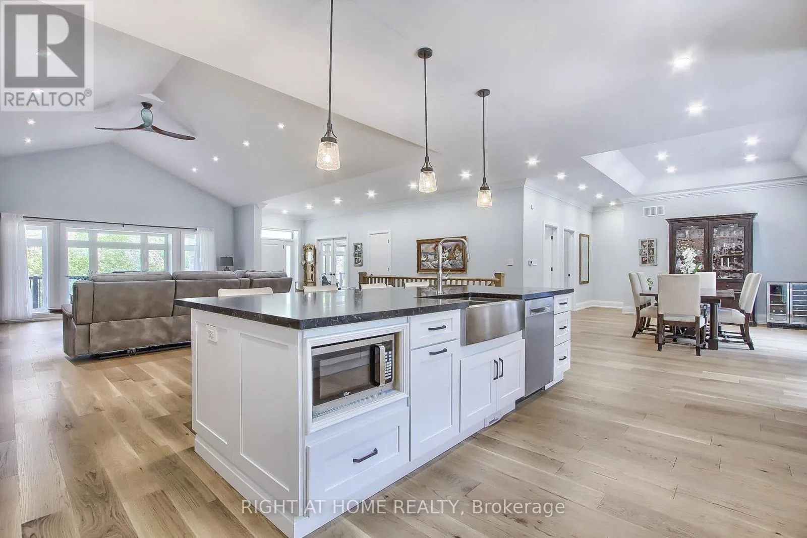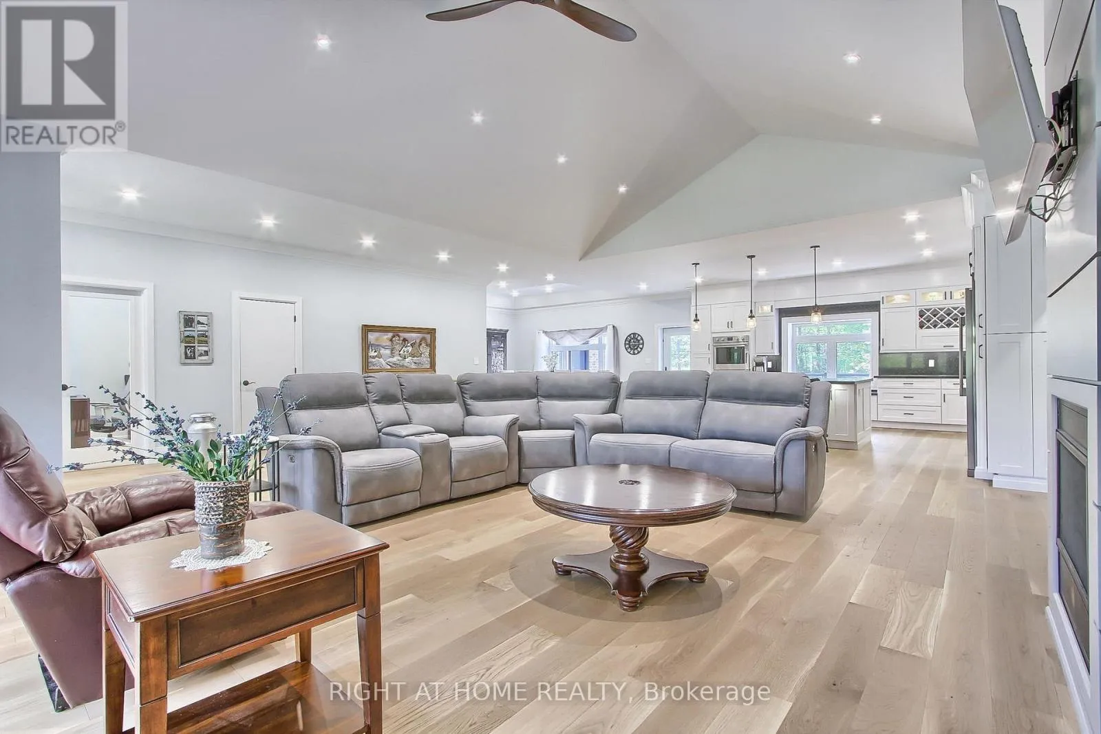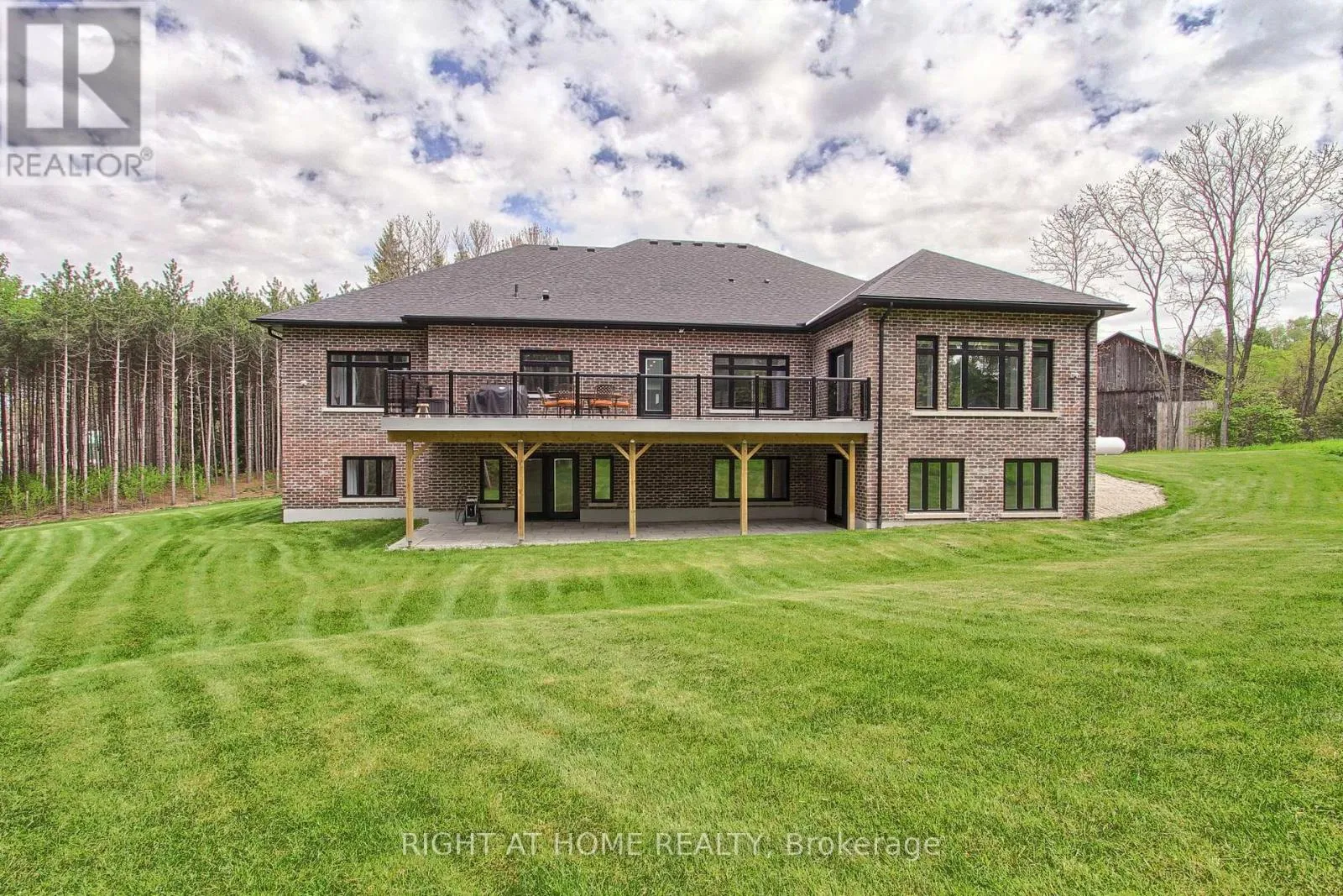 Cross Streets: 10th sideroad and 14th line. ** Directions: 400/89 -- 10th sideroad to 14th line left on 14th. Welcome to this exceptional 3+2 bedroom, 5 bathroom custom-built estate home set on a private 3.25-acre treed property, offering luxury country living just minutes from Hwy 400, Barrie, Bradford, Cookstown & Innisfil. A long, tree lined driveway leads to over 5,500 sq.ft. of premium finished living space, designed for comfort, style, and energy efficient living. Built with ICF construction for superior strength & efficiency, this home features soaring 10-ft ceilings, oversized windows, and a bright open concept layout. The great room offers stunning vaulted ceilings and a beautiful fireplace, creating a warm and inviting atmosphere. The chef's kitchen includes a large island, premium appliances, and walkout to a spacious deck, perfect for entertaining. Formal dining area for seamless hosting.The thoughtful split bedroom layout enhances privacy. The luxurious primary suite includes a walk-in closet, spa-inspired ensuite, and private deck access. Two additional main floor bedrooms share a stylish Jack and Jill bath. Main floor office, powder room, and laundry/mudroom with garage access complete this level.The fully finished walkout lower level offers ideal in law or multi generational living with a second kitchen, bright family room with fireplace, two large bedrooms with Jack and Jill bath, an additional full bath, and garage access. Excellent flexibility for extended family, guests, or future rental potential. Outside, enjoy expansive lawns, mature forest views, and a charming barn (sold as-is) ideal for hobby use, storage, or future creative conversion. Peaceful rural setting with modern convenience, close to shopping, schools, dining, Tanger Outlets, and top commuter routes.This one of a kind property combines craftsmanship, privacy, and space in a premier countryside location. Truly the perfect blend of elegance, efficiency, and multi-family potential your private estate retreat awaits. (id:27476)