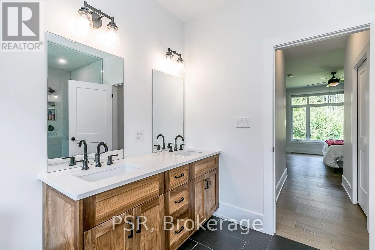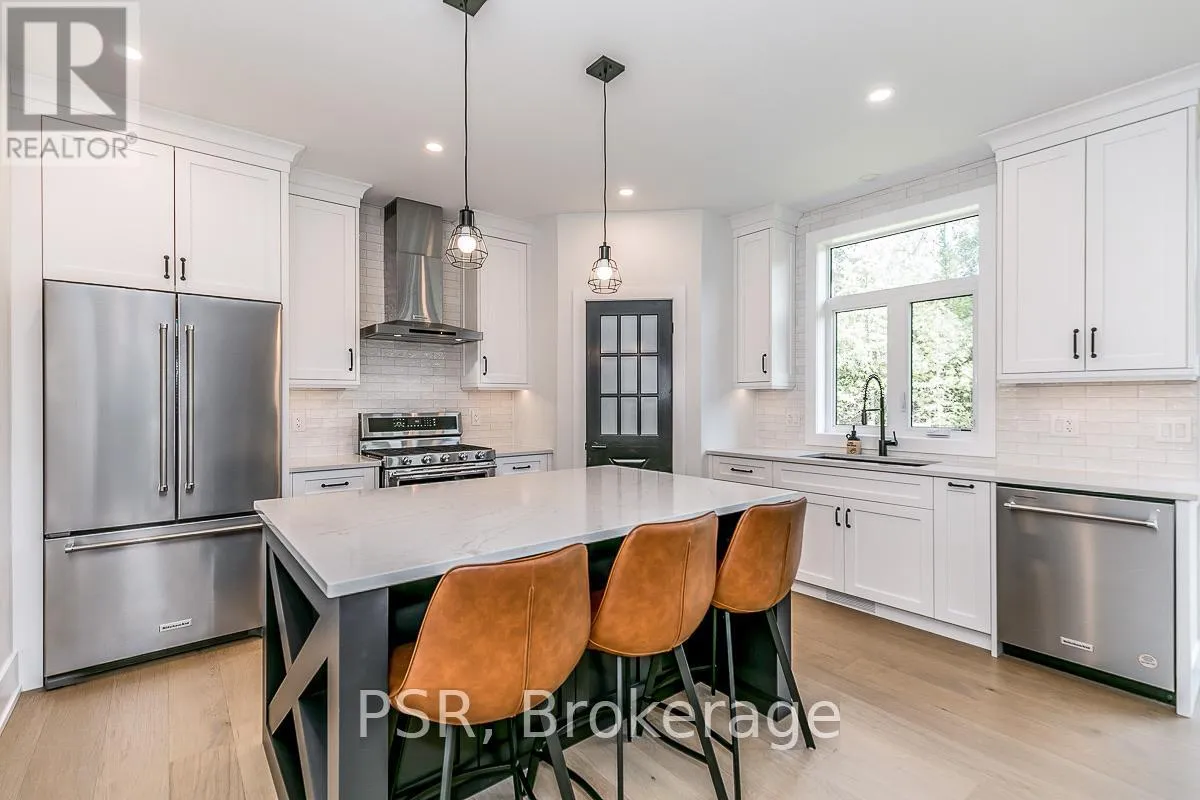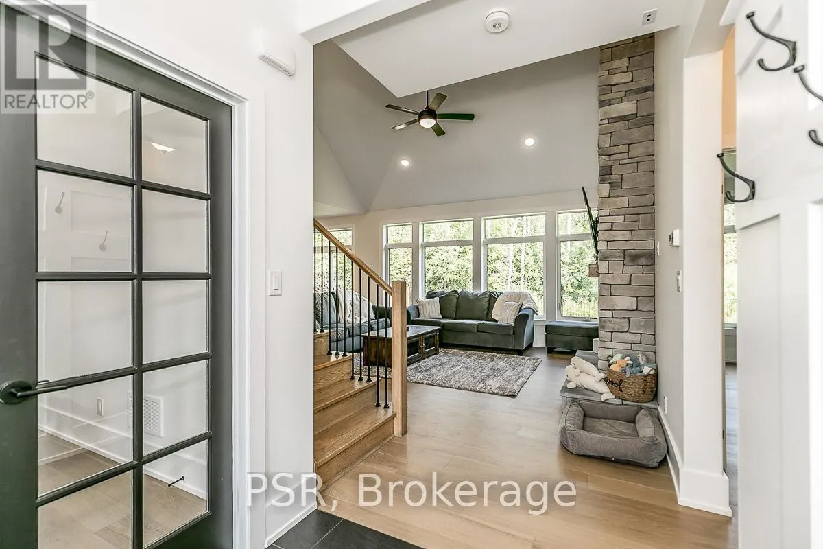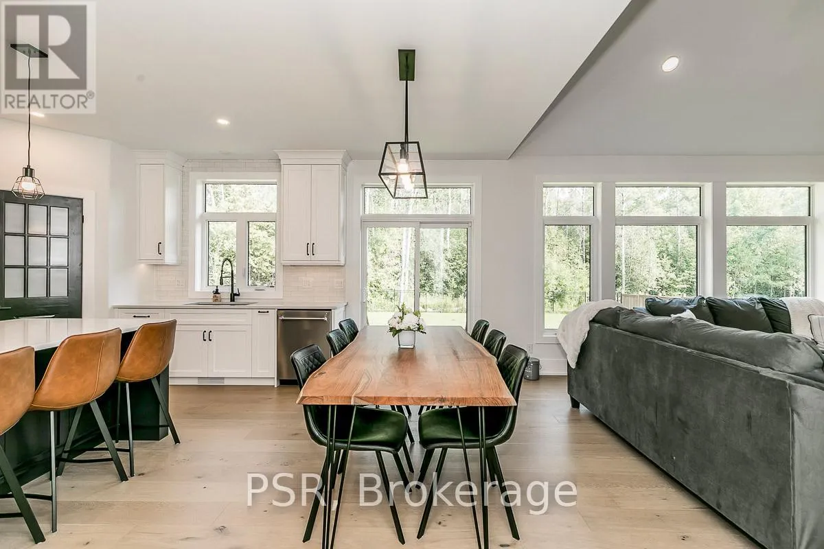20th Sideroad, and Killarney Beach Road This stunning 2022 custom-built bungaloft combines modern luxury, thoughtful design, and natural surroundings. Perfect for those seeking a peaceful retreat just steps from Lake Simcoe. Backing onto a protected conservation area, the home offers nearly 2,200 sq/ft of beautifully finished living space, featuring white oak flooring, vaulted ceilings, and expansive windows that flood the interior with natural light and forest views. The open-concept main level showcases a chef's kitchen with a gas stove and double oven, walk in pantry, and large island ideal for entertaining. The spacious main-floor primary suite includes built-in closet organizers, electronic blackout blinds, and a spa-like ensuite with a double shower. Two additional bedrooms in the loft provide flexibility for family or guests. Practical luxury continues with features like on-demand hot water, a drilled well with full filtration system, backup generator and sump pump, and an irrigation system. The laundry room's custom dog shower and thoughtful millwork, complete with soft-close cabinetry and built-in storage, highlight the home's exceptional craftsmanship. Outdoor living shines with brand-new professional landscaping (2024), a real wood gazebo, and a backyard extending 44 ft further beyond the rear fence-ideal for relaxation or entertaining. The unfinished 1,300 sq/ft basement with 9-ft ceilings and a rough-in bath offers endless potential to expand. Located in a safe, family-friendly community with top-rated schools (including a new Catholic elementary just minutes away), parks, beaches, and trails-all within 20 minutes of Barrie and under an hour to the GTA-this home truly blends luxury, comfort, and convenience. (id:27476)