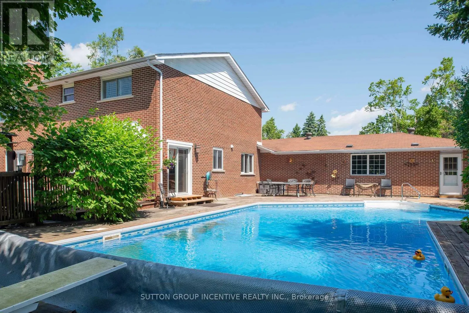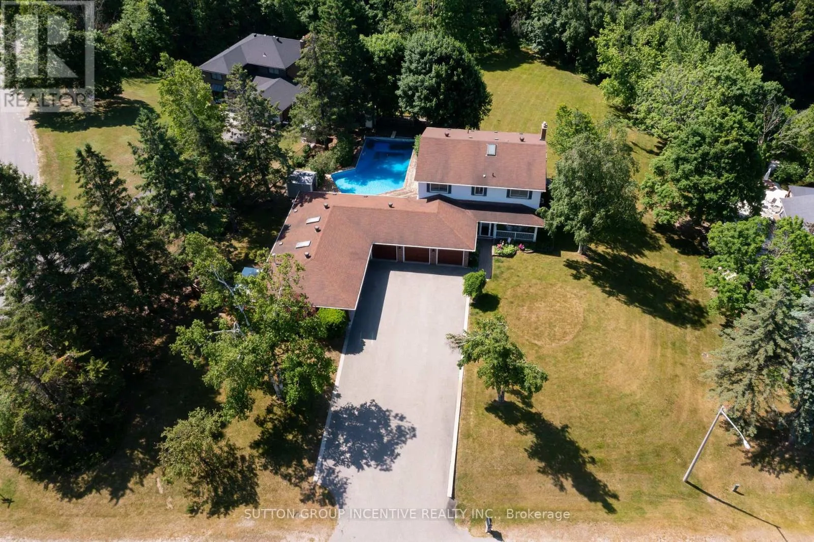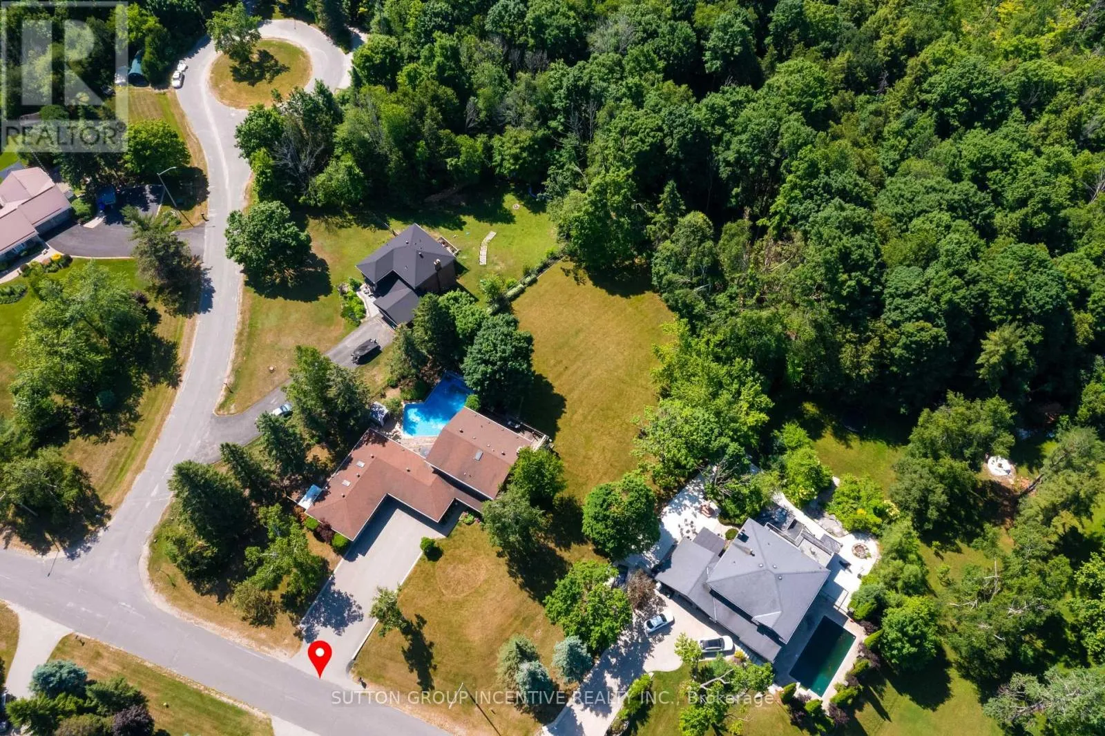 Cross Streets: Parkview Ridge & Innisfil Heights. ** Directions: 400/Innisfil Beach rd. Situated on 2.5 private acres and backing onto a protected greenbelt with mature trees, this home offers tremendous curb appeal among other high-quality residential properties in the area. The 4-bedroom, 4-bathroom residence provides approximately 2,700 sq. ft. of above-grade living space along with a partially finished walk-out basement ready for completion. The property features a long driveway leading to a 5-car garage with an additional carport, as well as a spacious deck overlooking the private, treed setting. A 22' x 46' inground saltwater pool is positioned within mature landscaping, creating a peaceful outdoor environment. Inside, the home includes large principal rooms, a functional layout, a gas fireplace, and well-maintained classic finishes, offering a solid foundation for future updates. The walk-out basement provides considerable potential for additional living space, an in-law suite, or recreation areas once completed. This location offers privacy while remaining close to local amenities, schools, and commuter routes, including convenient access to Highway 400, making it suitable for buyers seeking space, flexibility, and long-term value. (id:27476)