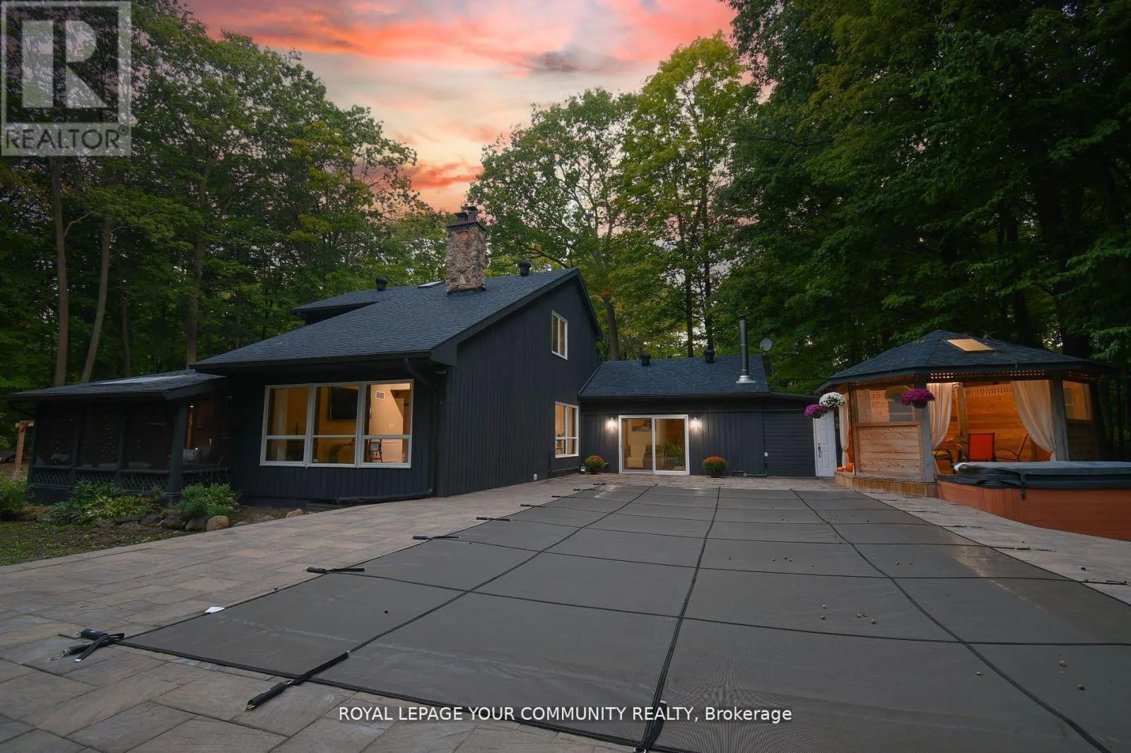 25th SdRd/ Big Bay Point Set within Innisfil's prestigious Big Bay Point community-just 90 minutes from Toronto-this nearly ten-acre private retreat offers an extraordinary blend of privacy, nature, and potential. Steps from Friday Harbour Resort, Lake Simcoe's sandy beaches, and The Nest Golf Club, it's a rare opportunity to create your own paradise in one of Simcoe County's most desired locations. Imagine mornings filled with birdsong and the scent of pine as sunlight filters through your own forest sanctuary. The character-filled two-storey home stands gracefully among maturates, anchored by a majestic California-stone fireplace that radiates warmth on winter evenings. Cathedral ceilings and panoramic windows frame breathtaking forest views year-round. Outdoors, leisure and wellness come naturally - a 16 x 32 ft in-ground pool (awaiting a light refresh to bring back its summer sparkle), hot tub, and cedar gazebo set the stage for relaxed alfresco dinners under the stars. An enclosed cedar sauna with indoor/outdoor access adds a touch of year-round spa indulgence, perfectly complementing this serene environment. With A1 zoning, the possibilities are as open as the landscape itself: build a modern farmhouse, design a luxury country retreat, or create guest cabins or a wellness getaway (buyer to verify uses with the Town of Innisfil). Whether you dream of expanding the existing home or reimagining the land entirely, this property offers the freedom to shape your vision. A circular driveway and ample parking complete this tranquil setting, surrounded by nature trees that ensure total privacy. This is more than a home - it's an invitation to design your legacy in Big Bay Point, where nature meets possibility and every sunrise begins a new story just minutes from the lake. Extras: New gas line & furnace, water softener, newer shingles, replaced eaves, septic cleaned, fresh exterior paint, garage heater. (id:27476)