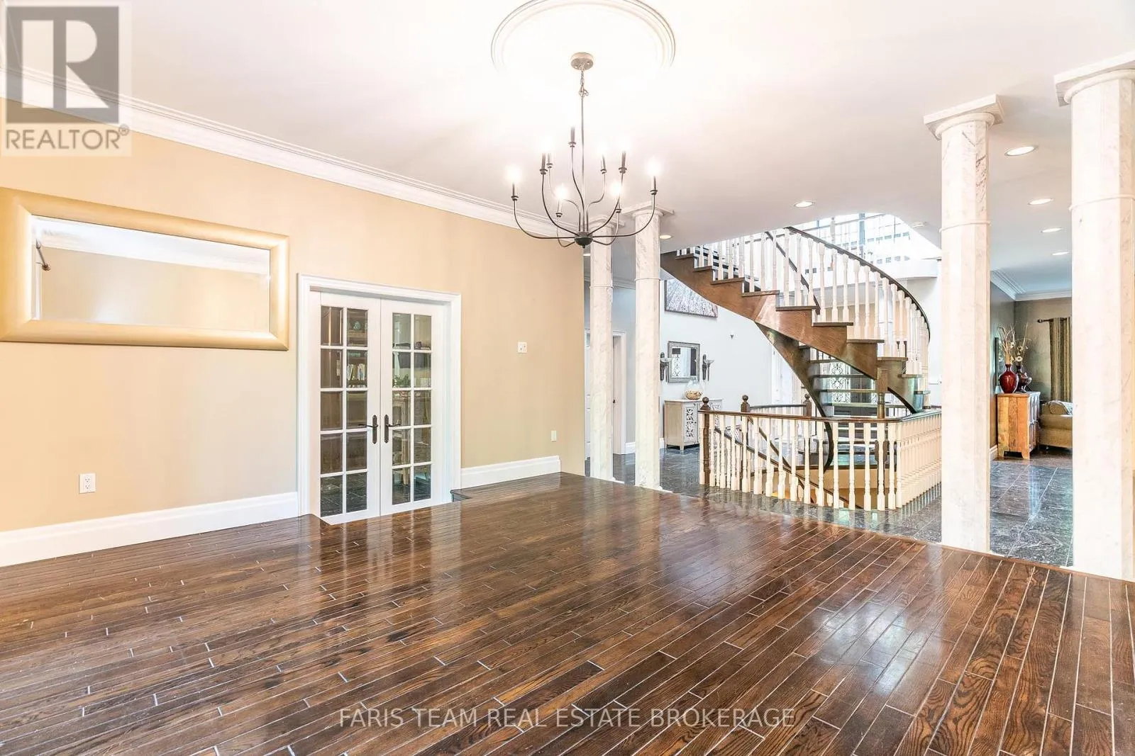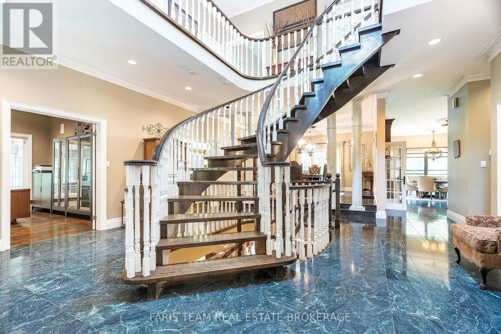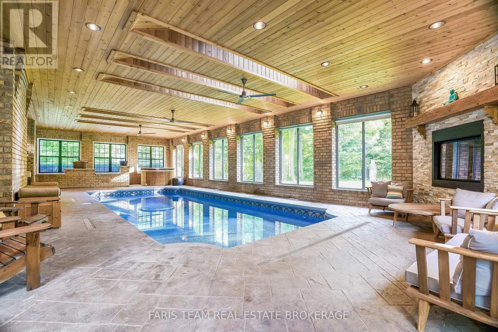 Wilkinson St/Quantz Cres Top 5 Reasons You Will Love This Home: 1) Striking custom-built residence set on a sprawling 2.17-acre estate, boasting unmatched curb appeal with mature trees and a tranquil ravine backdrop that delivers both privacy and natural beauty 2) Experience upscale living in a chef-inspired kitchen featuring sleek stainless-steel appliances, rich cabinetry, and a charming breakfast nook, perfect for intimate meals, flowing effortlessly into the backyard for seamless indoor-outdoor entertaining 3) Bathe in natural sunlight streaming through the elegant glass courtyard, while the refined family and living rooms, each with their own fireplace, offer cozy gathering spaces and step onto private balconies from the bedrooms for stunning, serene views 4) A showstopping indoor pool sanctuary complete with wood beam accents, its own fireplace, and a walkout to pristine landscaping, creates the ultimate space to relax, rejuvenate, and entertain year-round 5) Convenience meets function with a spacious triple-car garage ideal for storing vehicles or outdoor gear, all just minutes away from Barrie and the Barrie South GO station for effortless commuting. 8,409 fin.sq.ft. Age 34. Visit our website for more detailed information. *Please note some images have been virtually staged to show the potential of the home. (id:27476)