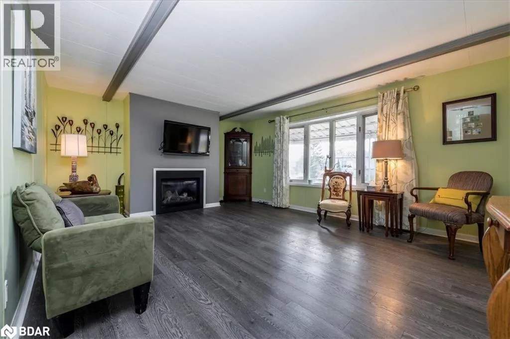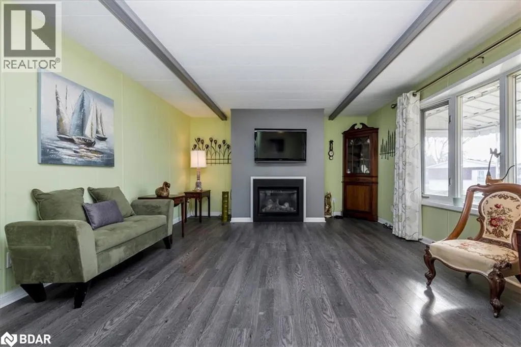 Lockhart Road to Main St ( At Plaza) to # 29 on right side Retirement at its Best ! Large 55 plus community just south of Barrie with many conveniences within minutes. Lake Simcoe within walking distance. Three Rec Halls all with on going activities such as dances, darts, billiards, line dancing, yoga, and so much more. Two heated outdoor salt water pools . This lovely home is a Tara Model with two bedrooms and one and half bathrooms. Large Living Room and Large Dining room so you can still entertain in comfort. Dining room has patio doors to deck over looking green space. Kitchen has lots of storage. Lovely fireplace to cuddle up to in the cold winter months. Private two car parking and no one directly behind you or on one side. Very comfortable, and you can feel the love that was captured here. New Fees : 855.00 New Taxes 162.49 (id:27476)