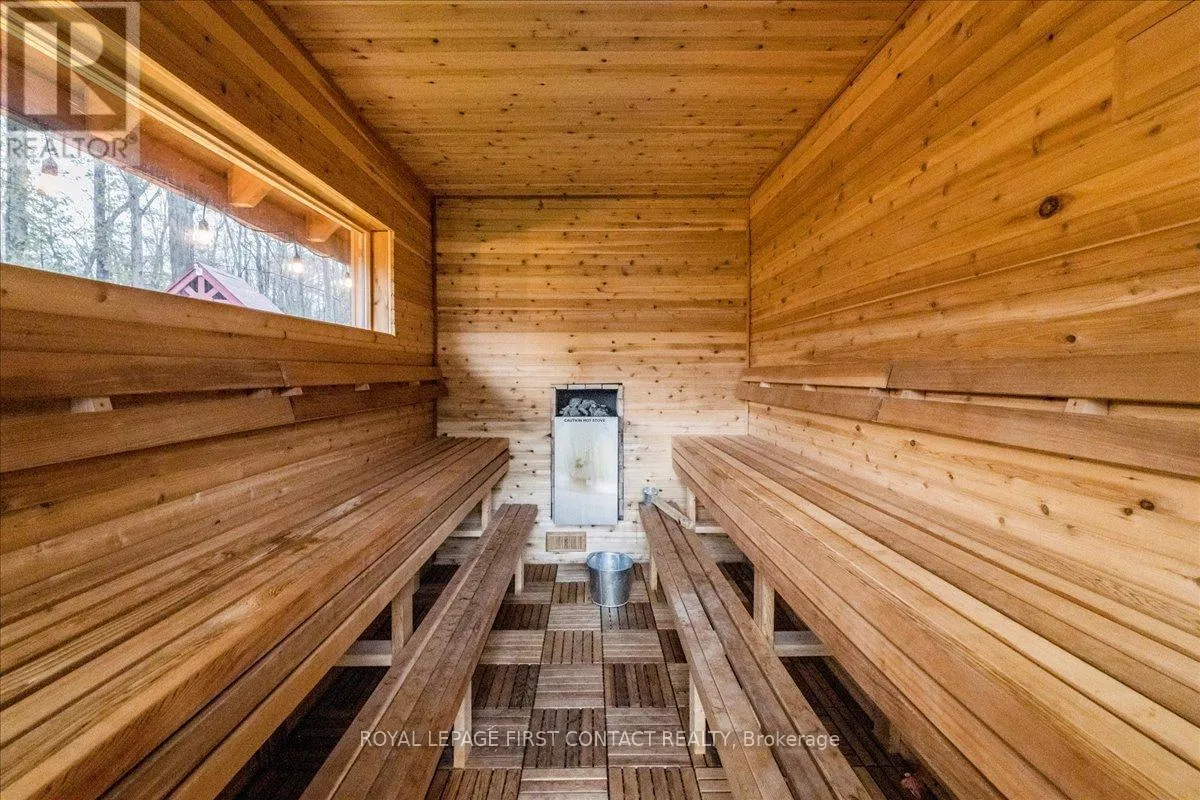 Cross Streets: Mapleview and 25th Side road. ** Directions: Take Mapleview drive to crescent Harbour Rd. Nestled steps from the shimmering shores of Lake Simcoe, this exceptional estate invites you to experience a lifestyle defined by tranquility, sophistication, and nature. Set on a deep, beautifully treed lot, this home blends refined craftsmanship with a warm, inviting comfort-creating residence that feels like a private sanctuary. The residence is a custom-crafted bungalow estate that blends stone, wood, and expansive glass into a warm modern retreat. The home sits on approximately two private acres in an exclusive Lake Simcoe community just steps from the lake. The interior offers over 4300 SQFT above grade, featuring vaulted ceilings, wide-plank hardwood floors, and sun-filled rooms designed around peaceful forest views. The gourmet kitchen includes custom cabinetry, an oversized granite island, premium appliances, and a window-wrapped dining area with direct deck access. The great room showcases a statement stone fireplace, arched picture windows, and an open-concept layout ideal for everyday living and entertaining. The outdoor living space features a covered lounge deck, expansive yard, natural rock landscaping, and a handcrafted cedar sauna cabin nestled among the trees. The property includes 5 spacious bedrooms, multiple living areas, and a serene loft offering flexible use. A 3-car garage paired with an oversized driveway provides parking for 10 vehicles, making it perfect for gatherings, hobbies, or large families. This lakeside estate delivers privacy, craftsmanship, and year-round luxury living in one exceptional retreat. (id:27476)