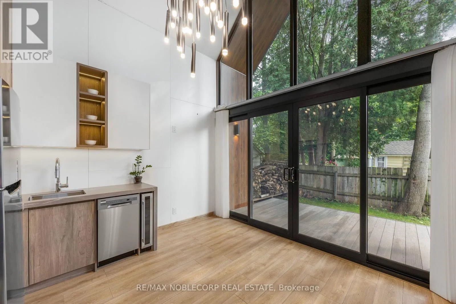 25th S/R & 9th Line Experience an exceptional opportunity with two separate homes on one expansive 50x150 ft private lot, just a short 3-minute stroll to a sandy Lake Simcoe shoreline. Whether you choose to live in one home and generate income from the other, or rent out both for a strong investment, this property delivers versatility and value. The newly constructed garden suite is a showstopper, showcasing striking modern architecture crafted with glass and aircraft-grade aluminum on a helical pile foundation. It features one-way privacy glass walls, a skylight, stainless steel appliances, and a heat pump. The main home offers a bright open-concept layout with an updated kitchen, new flooring and backsplash, newly installed laminate (2024), and a walkout to a private back deck overlooking a grassy yard and campfire area perfect for summer nights. The inviting living room boasts a cathedral ceiling and gas fireplace. The main floor includes a primary bedroom plus a versatile bonus room ideal as an office or walk-in closet, along with an updated bathroom featuring a soaker tub and new built-in washer/dryer (2024). A unique loft bedroom on the second level overlooks the living space. With parking for over eight vehicles and both dwellings fully turn-key, this rare offering is ready to enjoy or invest in. (id:27476)