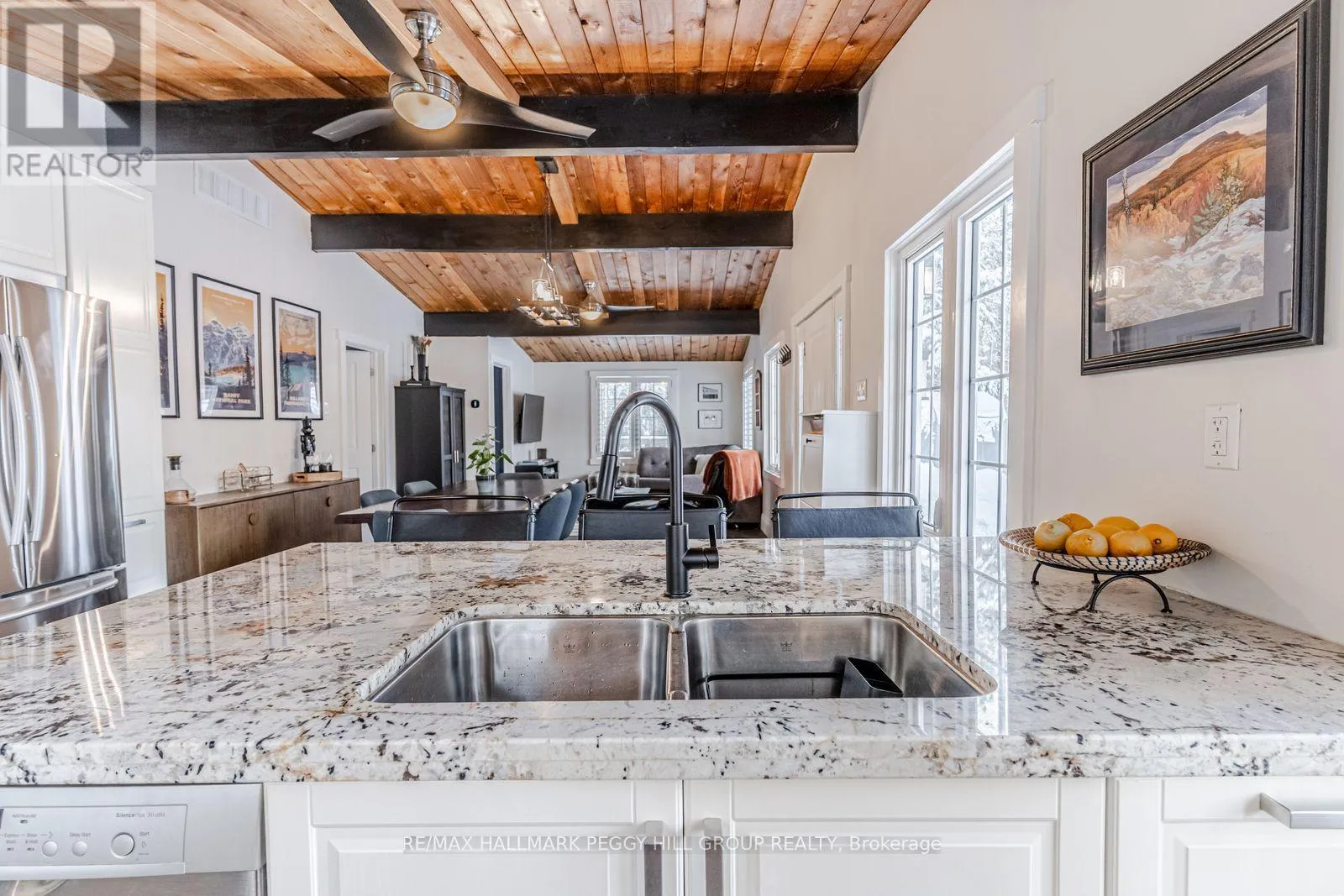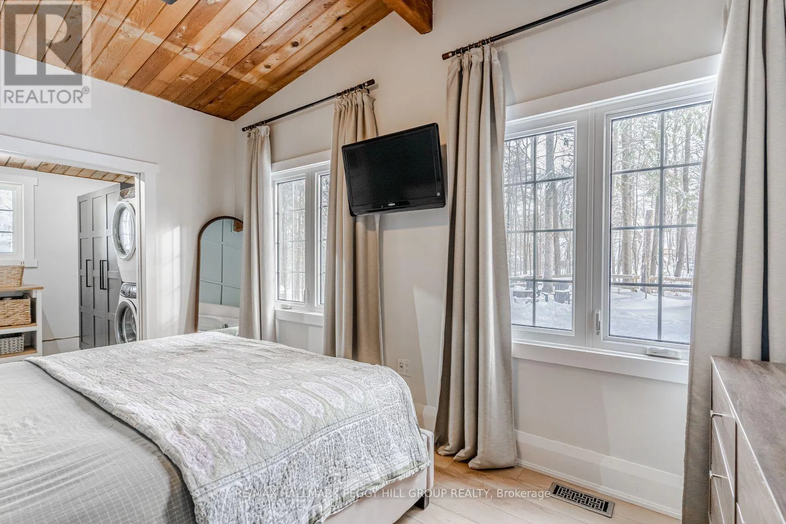 Cross Streets: BIG BAY POINT RD/FAIRWAY RD. ** Directions: 20TH SDRD/BIG BAY POINT RD/FAIRWAY RD. CHARMING FOREST-FRINGED BUNGALOW WITH DEEDED WATER ACCESS, AN INSULATED WORKSHOP, EXTENSIVE UPDATES, & 0.41 ACRES OF PEACEFUL OUTDOOR LIVING! Tucked beneath a canopy of mature trees and within walking distance to a deeded waterfront parcel just up the road, this 1972 Viceroy-built bungalow delivers a peaceful sense of privacy that's hard to find yet easy to fall in love with. Set back from the road on a fully fenced 0.41-acre lot, the home welcomes you with a sweeping circular driveway and a quiet rhythm of life that feels far removed - yet you're only minutes from South Barrie amenities, the GO Station, and the leisure of Friday Harbour. Inside, sunlight spills through oversized windows into a bright, open living space with gently vaulted ceilings and a warm, airy flow. The updated kitchen shines with quartz and granite countertops, a spacious island with breakfast bar seating, and a modern tile backsplash that ties it all together. Two restful bedrooms with updated flooring enjoy peaceful views of the surrounding forest, including a primary suite with semi-ensuite access to a stylish 5-piece bath and a laundry room complete with a newer washer and dryer. Outside, a 10 x 14 insulated workshop with hydro is ready for creative projects, hobbies, or weekend tinkering. Major upgrades offer confidence and comfort, including updated plumbing with an iron filter and water softener, underground 200-amp hydro service, central air, a high-efficiency Navien tankless water heater, a fully spray-foamed crawlspace, and roof updates completed in 2025. Recent inspections and upgrades to the well and septic system ensure peace of mind for years to come, and engineered drawings are also available, allowing for future plans to raise the home and add a full basement. Whether you're sipping coffee on the porch, working on a project in the shop, or enjoying the breeze through the trees, this exceptional #HomeToStay offers a lifestyle of calm, connection, and quiet luxury. (id:27476)