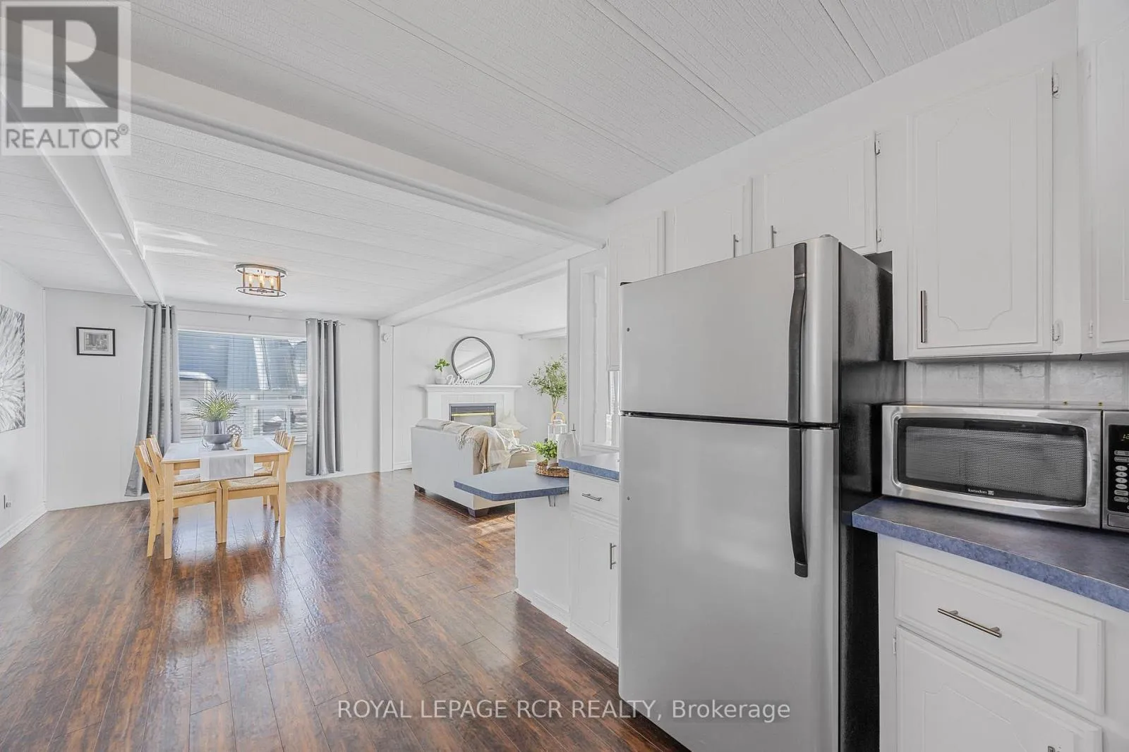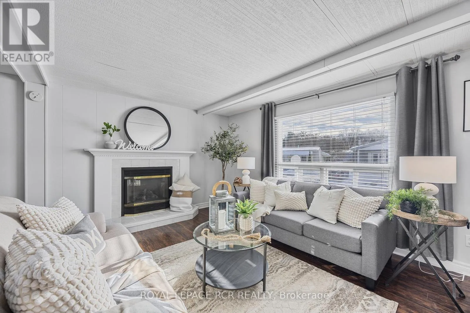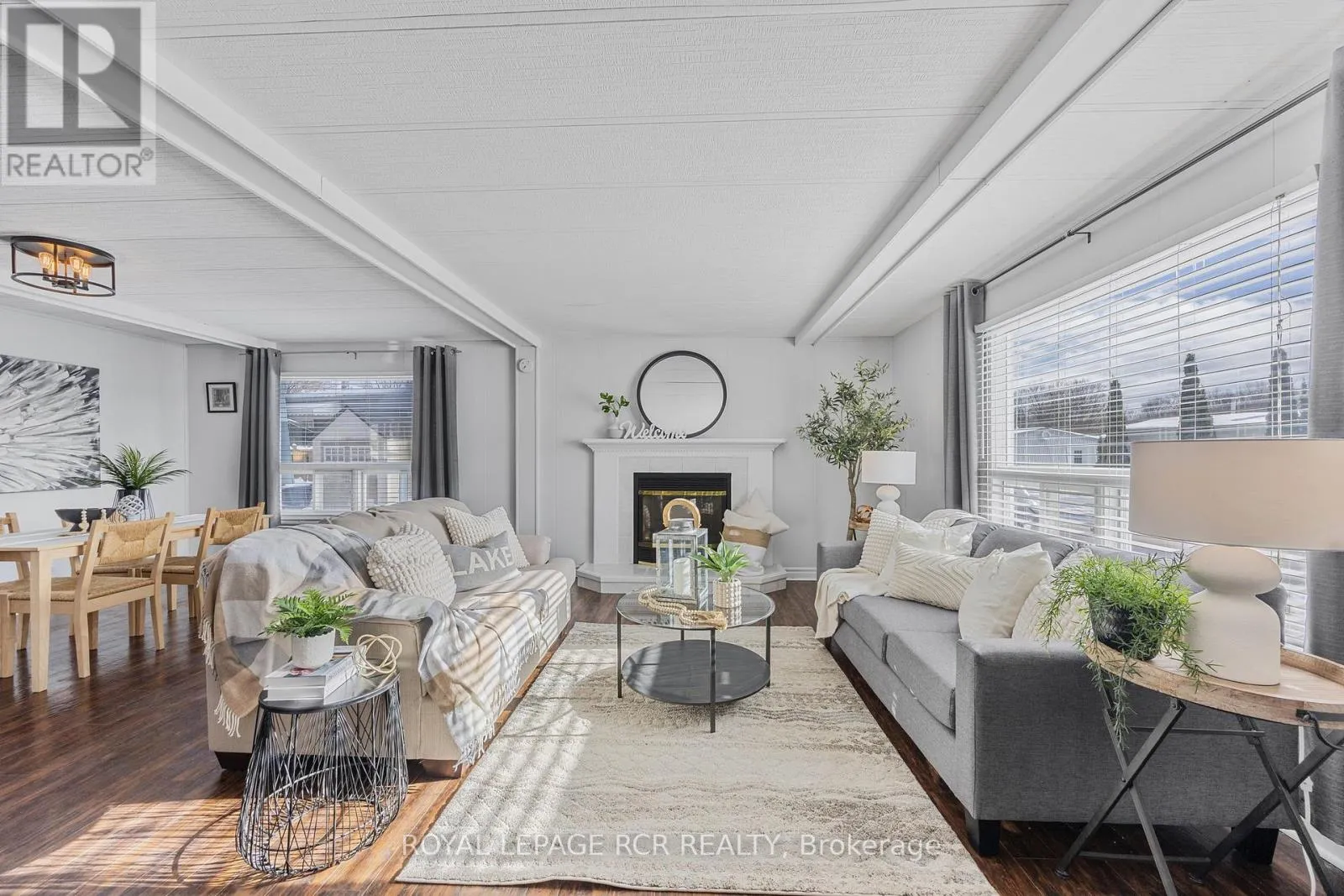 Cross Streets: Lockhart / 25th Sideroad. ** Directions: Lockhart - Flora - Weeping Willow - Linden. Welcome Home! This Beautiful Monaco Style One Level Land Lease Home in the Adult Lifestyle Community of Sandy Cove Acres is Almost 1400 sq ft and is Bright and Spacious. Brand New Grey Flooring Throughout . Open Concept Dining Room and Living Room with Gas Fireplace. Two Bedrooms, Two Bathrooms, 2 Private Parking Spaces. Large Kitchen with Stainless Steel Appliances and Lots of Storage. Family Room with W/O to Deck and Side of Home. Primary Bedroom Features it's Own 2 Pc Bathroom and Walk in Closet. Second Bedroom Could Also Be Used as an Office or Craft/Gaming Room. Park Fee of $869.63/Month . 2 Pools, 3 Rec Centres, Pickleball Courts, Library, Billiards, Shuffleboard, Garbage/Recycling, Snow Plowing Note: Some Staging Has Been Removed From Original Photos. New Grey Vinyl Flooring Throughout - Shown in Last 3 Pics. (id:27476)