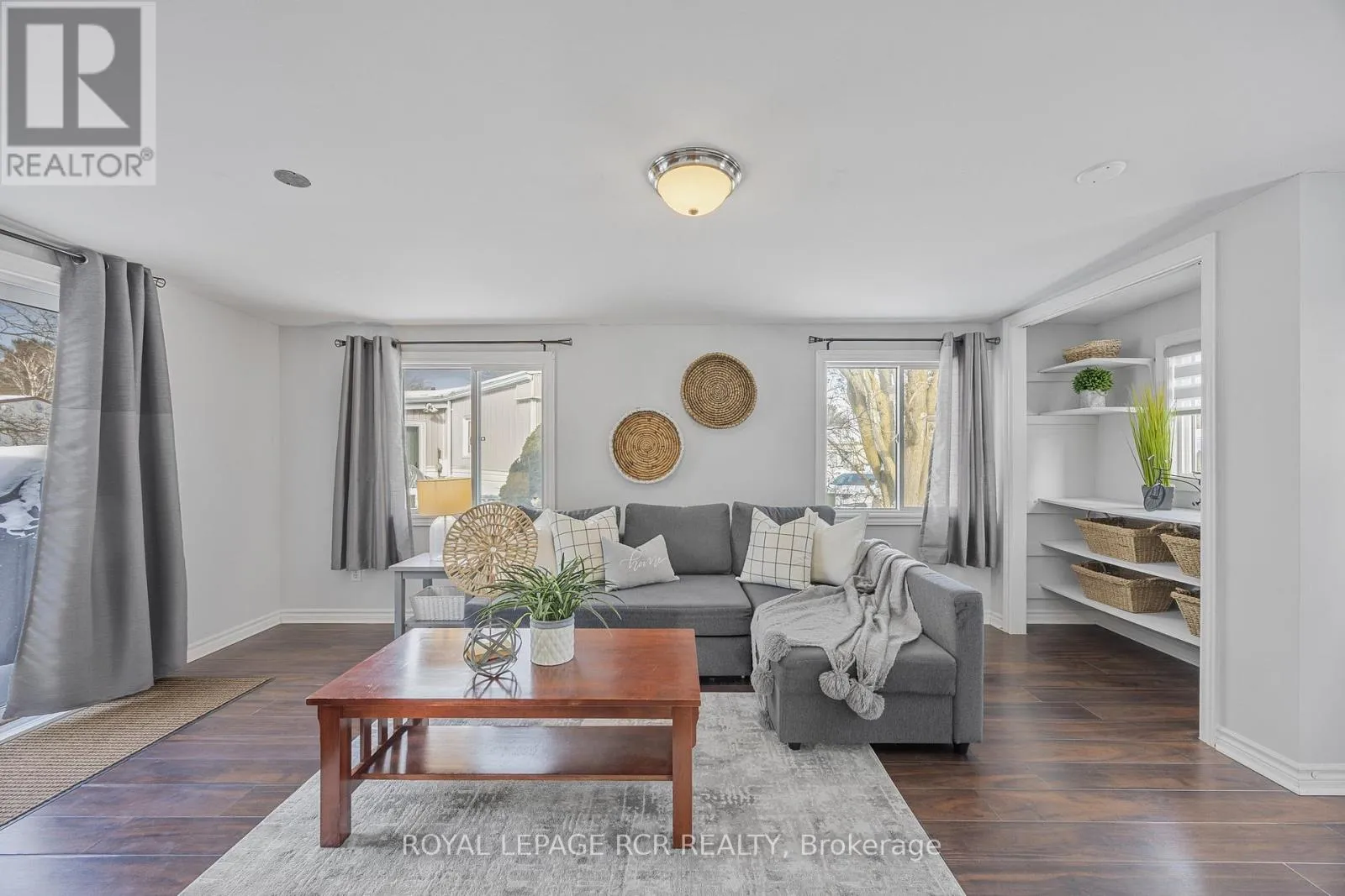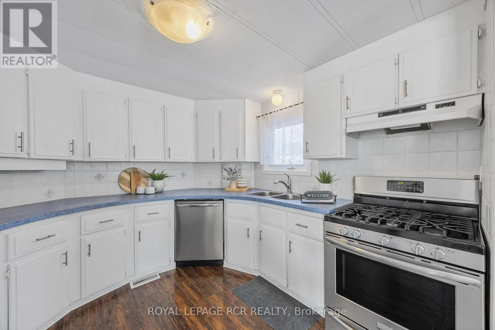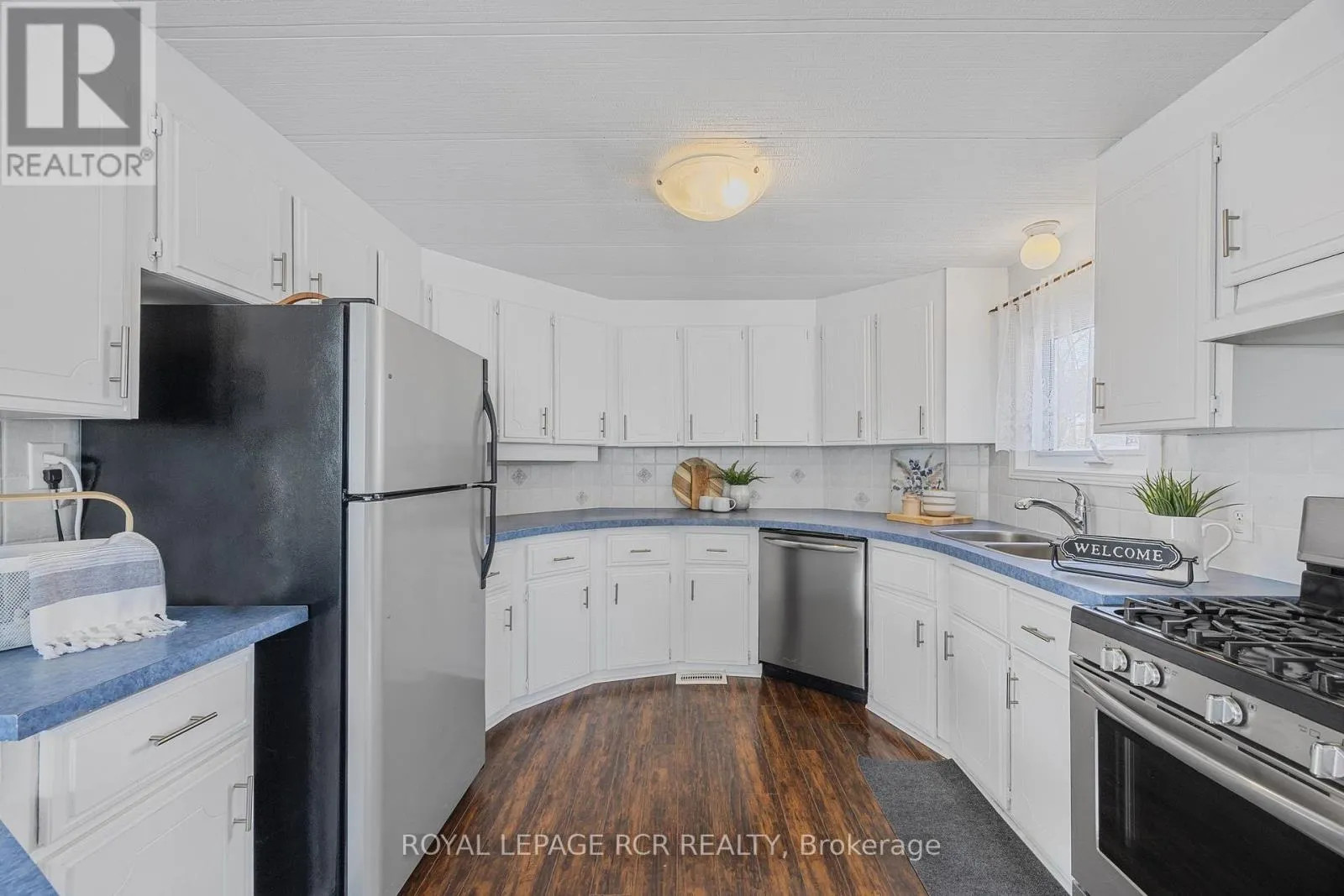 Cross Streets: Lockhart / 25th Sideroad. ** Directions: Lockhart - Flora - Weeping Willow - Linden. Welcome Home! This Beautiful Monaco Style One Level Land Lease Home in the Adult Lifestyle Community of Sandy Cove Acres is Almost 1400 sq ft and is Bright and Spacious. Brand New Grey Flooring Throughout . Open Concept Dining Room and Living Room with Gas Fireplace. Two Bedrooms, Two Bathrooms, 2 Private Parking Spaces. Large Kitchen with Stainless Steel Appliances and Lots of Storage. Family Room with W/O to Deck and Side of Home. Primary Bedroom Features it's Own 2 Pc Bathroom and Walk in Closet. Second Bedroom Could Also Be Used as an Office or Craft/Gaming Room. Park Fee of $869.63/Month . 2 Pools, 3 Rec Centres, Pickleball Courts, Library, Billiards, Shuffleboard, Garbage/Recycling, Snow Plowing Note: Some Staging Has Been Removed From Original Photos. New Grey Vinyl Flooring Throughout - Shown in Last 3 Pics. (id:27476)