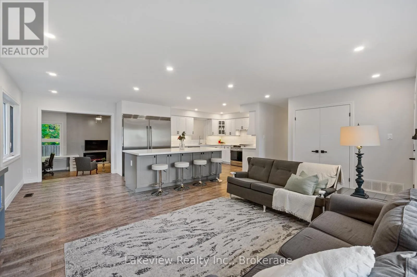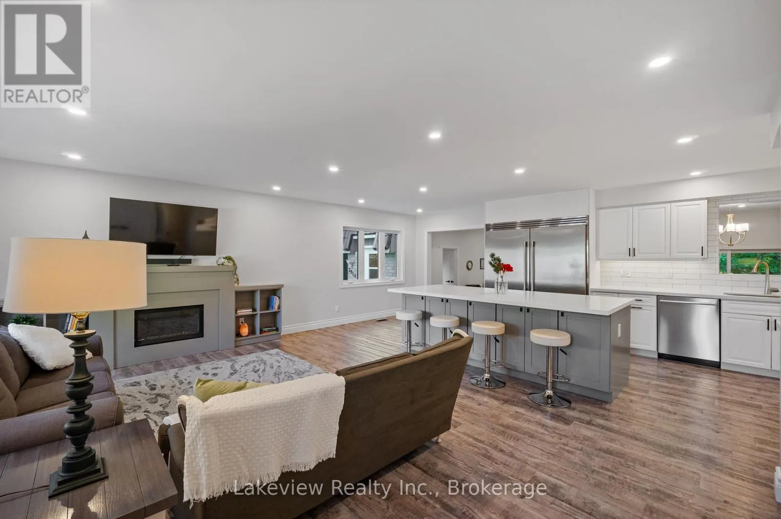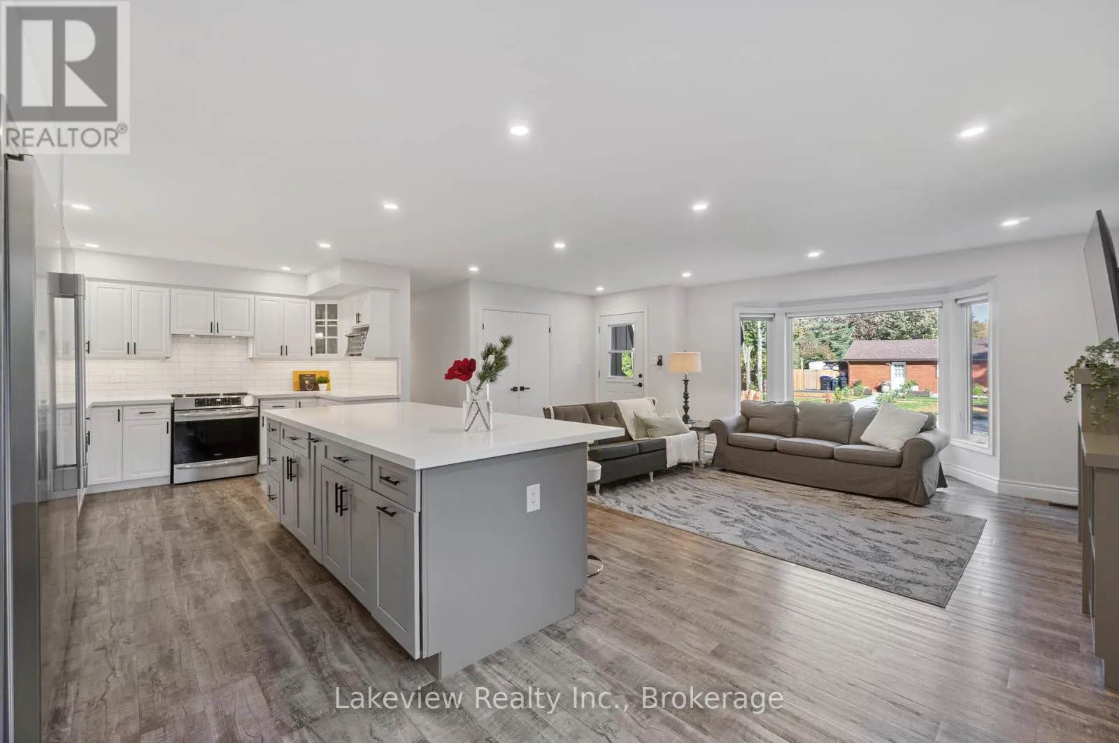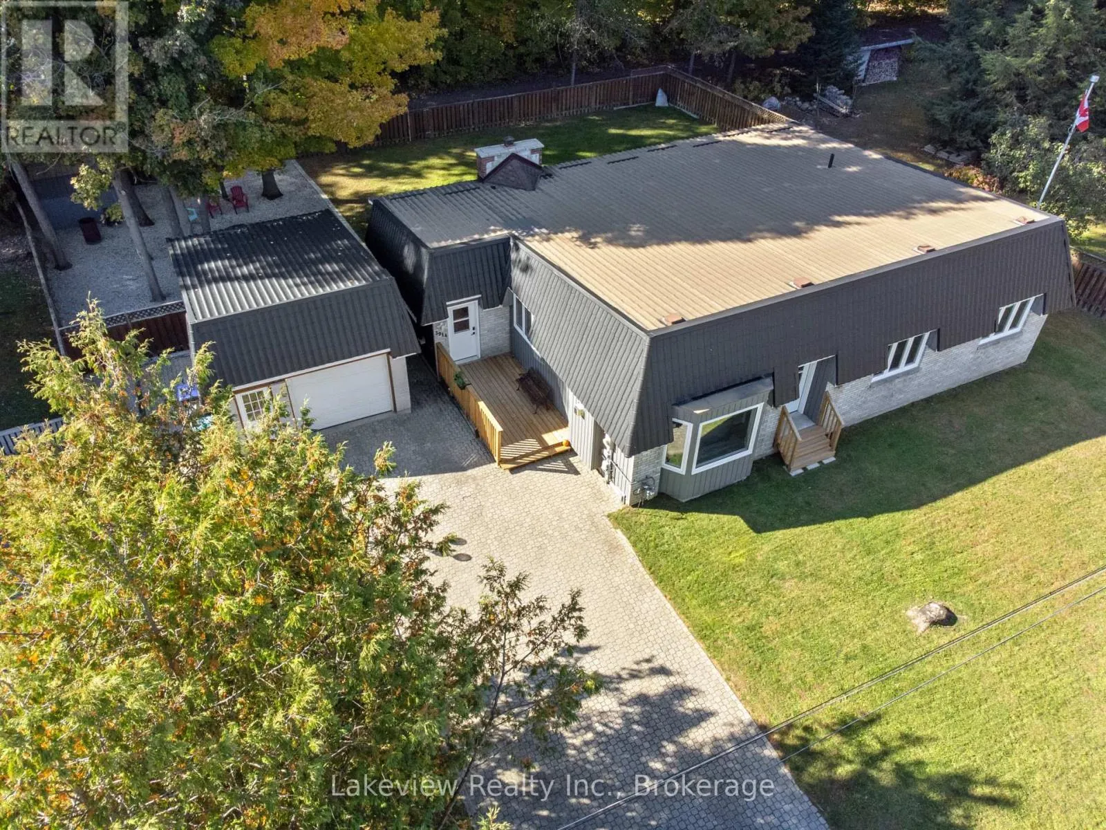 Cross Streets: Big Bay Point Rd/ Rosemary La. ** Directions: Big Bay Point Rd to Rosemary Lane, house on the left. Discover this fully renovated bungalow in a quiet setting that feels like the country-yet just ~10 minutes to Barrie and moments to Friday Harbour Resort's waterfront dining and amenities. Extensive updates (Dec 2022-2024) include new doors & hardware, flooring, pot lights, casing/trim, plus two fireplaces (electric & gas). The redesigned kitchen features sleek counters, a large island and high-end appliances. All new windows and exterior front and side door entry have been replaced, Plus a seamless metal roof with a 50-year warranty adds long-term peace of mind. The finished lower level (2025) offers new drywall, flooring, ducts and lighting, creating versatile space with an additional bedroom, office and family/rec room. Enjoy the hot tub, new decks and a fenced yard for privacy. Premium water treatment system (late 2022) includes pressure tank, hot water tank, reverse osmosis, filtration, softener and UV. Deeded access to a private beach & boat launch for approx. $150/yr delivers lakeside lifestyle without high taxes. Nearby: Fishbone Kitchen, The Nest Golf Club and trails at the Nature Preserve. (id:27476)