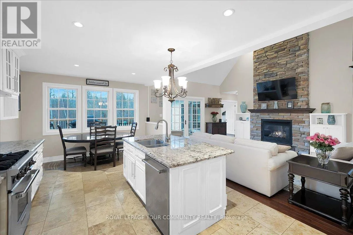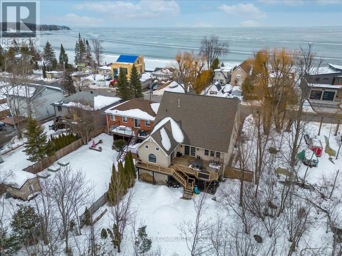 Leonard Street & Rose Lane Situated just steps from the serene shores of Lake Simcoe, this custom-built home captures the essence of lakeside living with its elegant charm. Boasting over 2800 square feet of open-concept space, it's a true haven for entertainers. The impressive high ceilings create a sense of grandeur, while abundant natural light fills the home, enhancing the inviting atmosphere.Inside, the spacious media/recreation room upstairs invites cozy family movie nights, while on the main floor the striking gas fireplace, adorned with exquisite stonework, serves as a focal point in the inviting family room. Additionally, a well-appointed sunlit office in the front, offers the perfect space for work or study, blending functionality and comfort effortlessly.Step outside onto your oversized deck, ideal for hosting summer gatherings or enjoying peaceful evenings with loved ones, all set against the backdrop of your private and beautiful backyard on a premium lot. The fully finished basement features a separate entrance, walking out above grade, presenting a fantastic potential for additional income or a comfortable retreat for guests.This exquisite residence harmoniously blends luxury and leisure, offering a lifestyle where every moment feels like a delightful escape. Designed for those who seek both elegance and functionality, this home is a rare find in a breathtaking location. (id:27476)