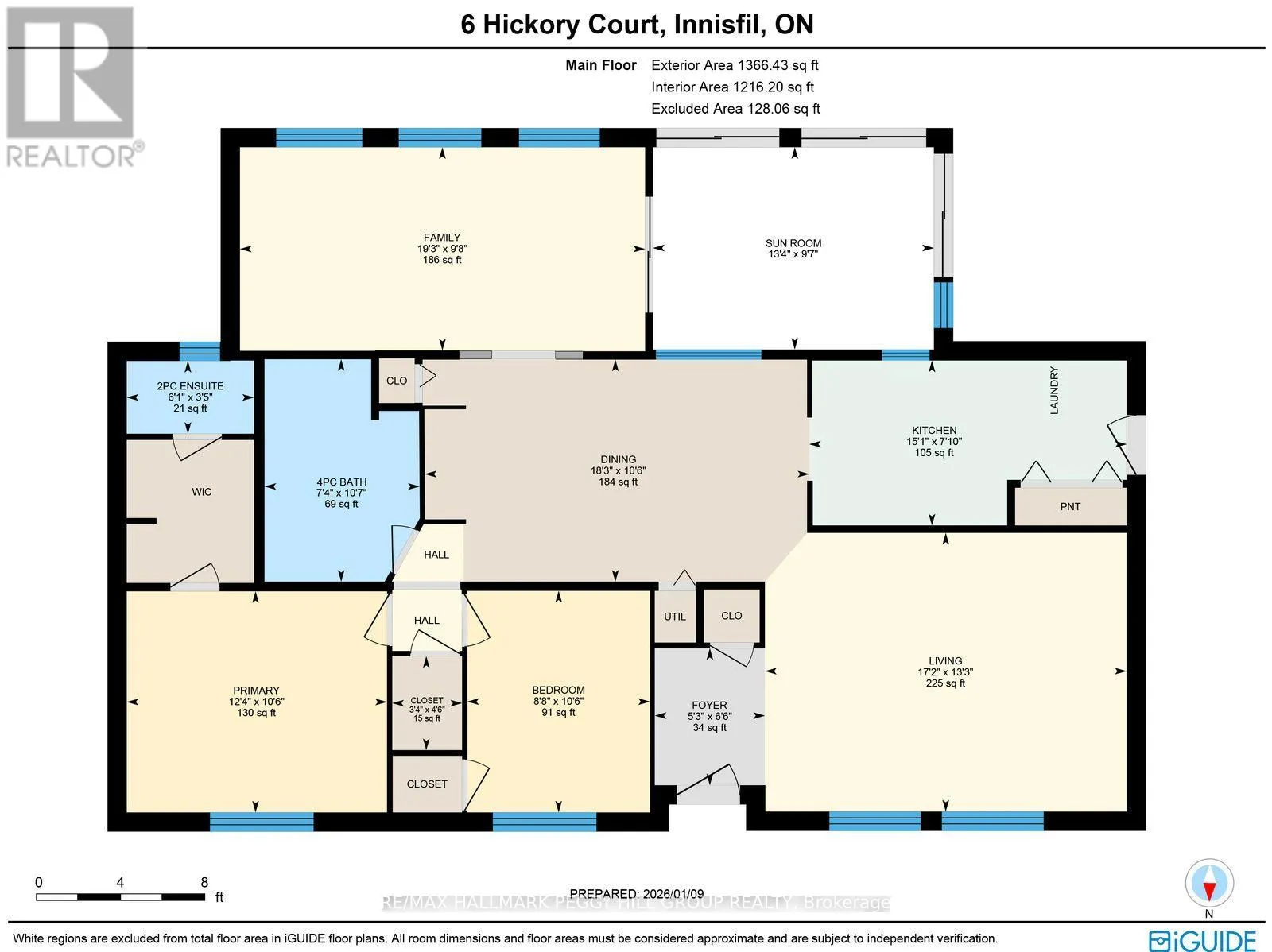 Cross Streets: MAIN ST/HICKORY CRT. ** Directions: LOCKHART RD/MAIN ST/HICKORY CRT. OVER 1,300 SQ FT OF ONE LEVEL LIVING IN A VIBRANT ADULT COMMUNITY WITH AMENITIES GALORE! Start enjoying your golden years at 6 Hickory Court, a bright bungalow in an adult lifestyle community offering over 1,300 sq ft of one-level living, easy-care flooring throughout with no carpet, modern paint tones, and neutral finishes that keep everything feeling fresh and simple. Large windows keep the living room bright, while a separate family room adds that extra space everyone wants, flowing through sliding glass doors to an enclosed sunroom that walks out to a large back deck framed by mature trees, made for morning tea, easy barbecues, and quiet evenings outdoors. The well-equipped galley-style kitchen makes everyday meals and baking days easy, featuring stainless steel appliances, shaker cabinetry with modern hardware, a pantry, and a double sink, plus an adjacent laundry room with its own walkout. The primary bedroom includes a walk-in closet and a 2-piece ensuite, while the second bedroom is ideal for guests, a home office, or a hobby room for knitting and crafts served by a main 4-piece bathroom. Driveway parking for two keeps things practical, and the lifestyle here is a standout, with community amenities that include an on site mall, three clubhouses, kitchen facilities, fitness facilities, games rooms, libraries, laundry facilities, two heated outdoor pools, dart boards, indoor and outdoor shuffleboard, indoor and outdoor pickleball, walking trails, and more. Situated near the shores of Lake Simcoe, just 10 minutes to South Barrie's major shopping centres and the GO station, and 15 minutes to Innisfil Beach Park. Vacant and move-in ready, with a flexible closing to match your timeline. (id:27476)