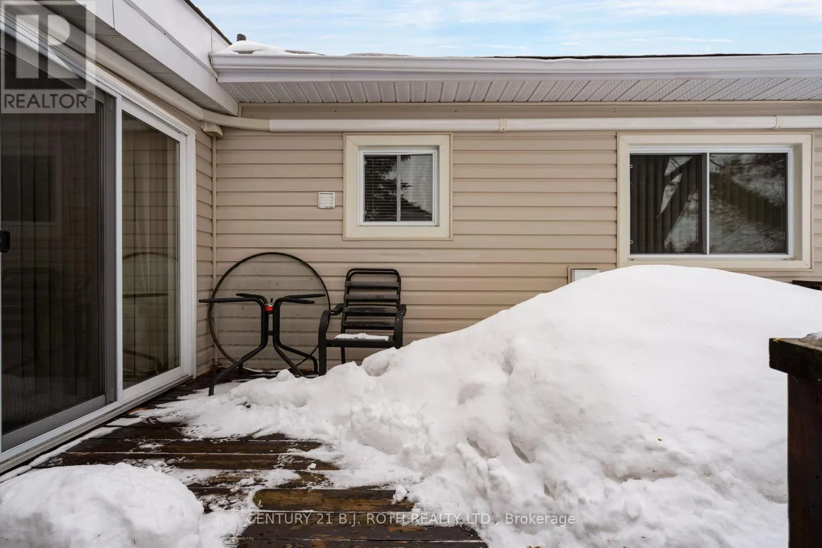 25th Side Rd to Main St Welcome to this well-cared-for home ideally located on the north end of Sandy Cove Acres. A stunning stone walkway and patio create an inviting first impression. Inside, the open concept layout features an updated kitchen with a separate island, flowing seamlessly into a lovely dining area-perfect for everyday living and entertaining. The living room is highlighted by a gas fireplace, adding warmth and charm. This thoughtfully designed home offers a two-bedroom layout, a full bathroom, and a separate laundry area for added convenience. A bright sunroom addition completed in 2019 provides extra living space and walks out to a deck overlooking an open field, offering privacy and peaceful views. Drywalled throughout with laminate flooring and two parking spots, this home is move-in ready and shows true pride of ownership. Book your showing today! Maintenance and Property Tax $1014/month (id:27476)