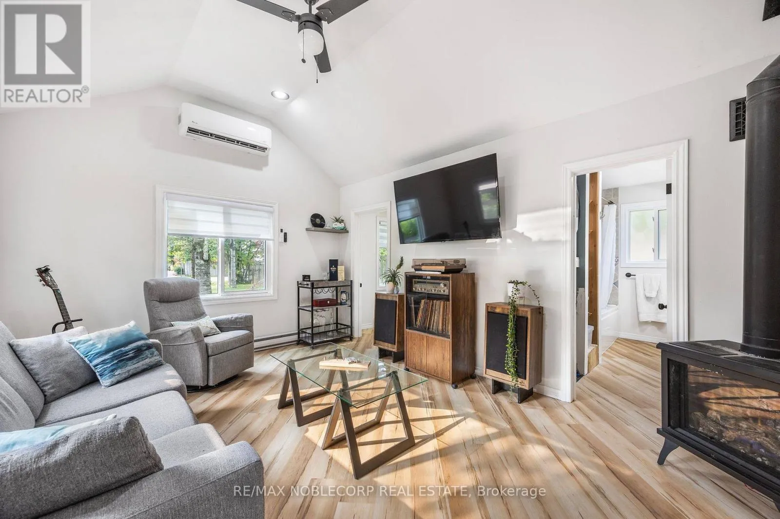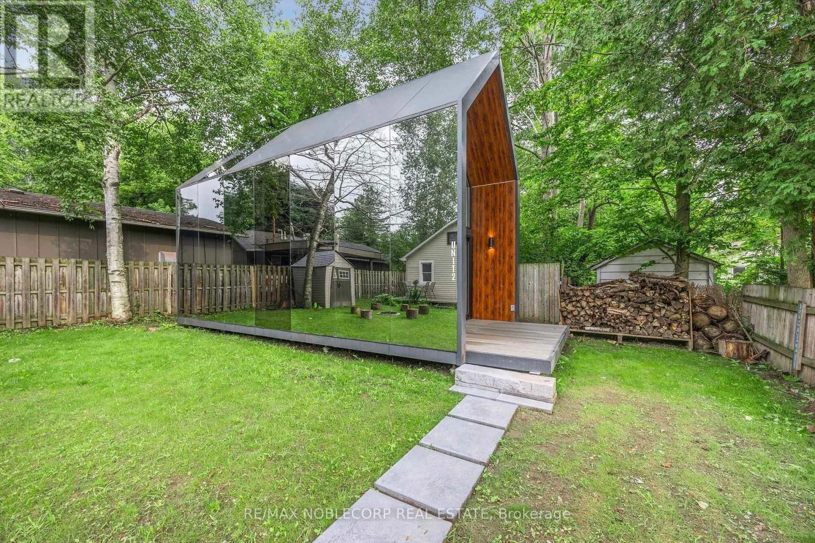 25th S/R & 9th Line Experience an exceptional opportunity with two separate homes on one expansive 50x150 ft private lot, just a short 3-minute stroll to a sandy Lake Simcoe shoreline. Whether you choose to live in one home and generate income from the other, or rent out both for a strong investment, this property delivers versatility and value. The newly constructed garden suite is a showstopper, showcasing striking modern architecture crafted with glass and aircraft-grade aluminum on a helical pile foundation. It features one-way privacy glass walls, a skylight, stainless steel appliances, and a heat pump. The main home offers a bright open-concept layout with an updated kitchen, new flooring and backsplash, newly installed laminate (2024), and a walkout to a private back deck overlooking a grassy yard and campfire area perfect for summer nights. The inviting living room boasts a cathedral ceiling and gas fireplace. The main floor includes a primary bedroom plus a versatile bonus room ideal as an office or walk-in closet, along with an updated bathroom featuring a soaker tub and new built-in washer/dryer (2024). A unique loft bedroom on the second level overlooks the living space. With parking for over eight vehicles and both dwellings fully turn-key, this rare offering is ready to enjoy or invest in. (id:27476)