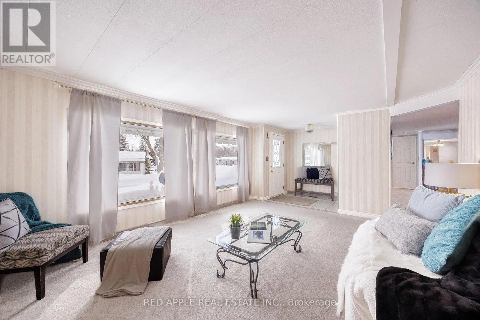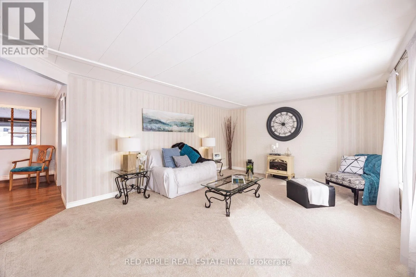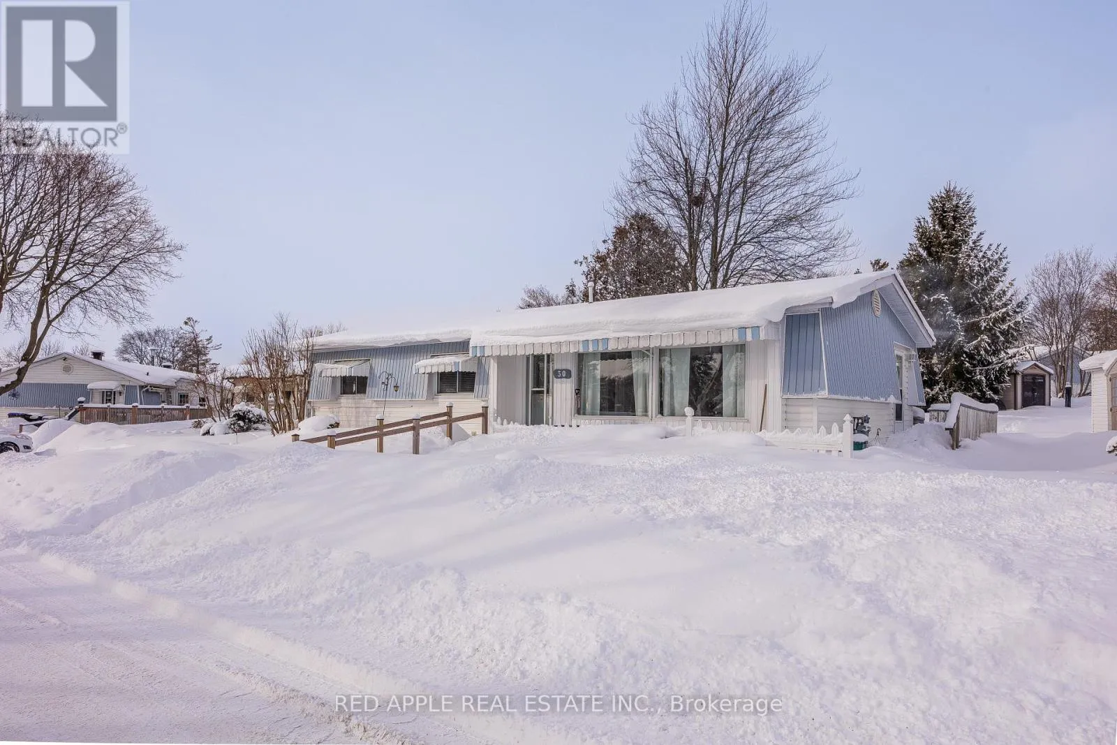 Cross Streets: 25th Sideroad & Lockhart. ** Directions: Lockhart Rd, right on Earl St to Flora, right on Mimosa D. Welcome to 30 Mimosa Drive, located in the highly sought-after Sandy Cove Acres Retirement Community, one of Ontario's premier 55+ lifestyle destinations. This bright and inviting 2-bedroom, 2-bathroom bungalow is filled with natural light throughout and offers comfortable, low-maintenance living. The spacious primary bedroom features a convenient 2-piece ensuite and generous closet space. A cozy enclosed three-season sunroom provides the perfect spot to relax and includes a separate side entrance leading into the family room. The main bathroom was renovated in 2020, and recent updates include fresh paint in the dining room and steam-cleaned all carpets. Notable upgrades include furnace and air conditioning (2019), roof (2015), and a front-door ramp for added accessibility. The home is surrounded by mature landscaping within this beautifully maintained 300-acre community, complete with scenic walking paths and natural green spaces. Residents of Sandy Cove enjoy access to three full clubhouses offering an exceptional array of amenities: two outdoor heated pools, a fully equipped fitness center, shuffleboard, darts, billiards, hobby and craft rooms, a woodworking shop, libraries, social lounges, and dedicated event spaces. A vibrant calendar of activities includes dances, theatre nights, bingo, card games, and more - fostering an active and social lifestyle. A Delightful community! (id:27476)