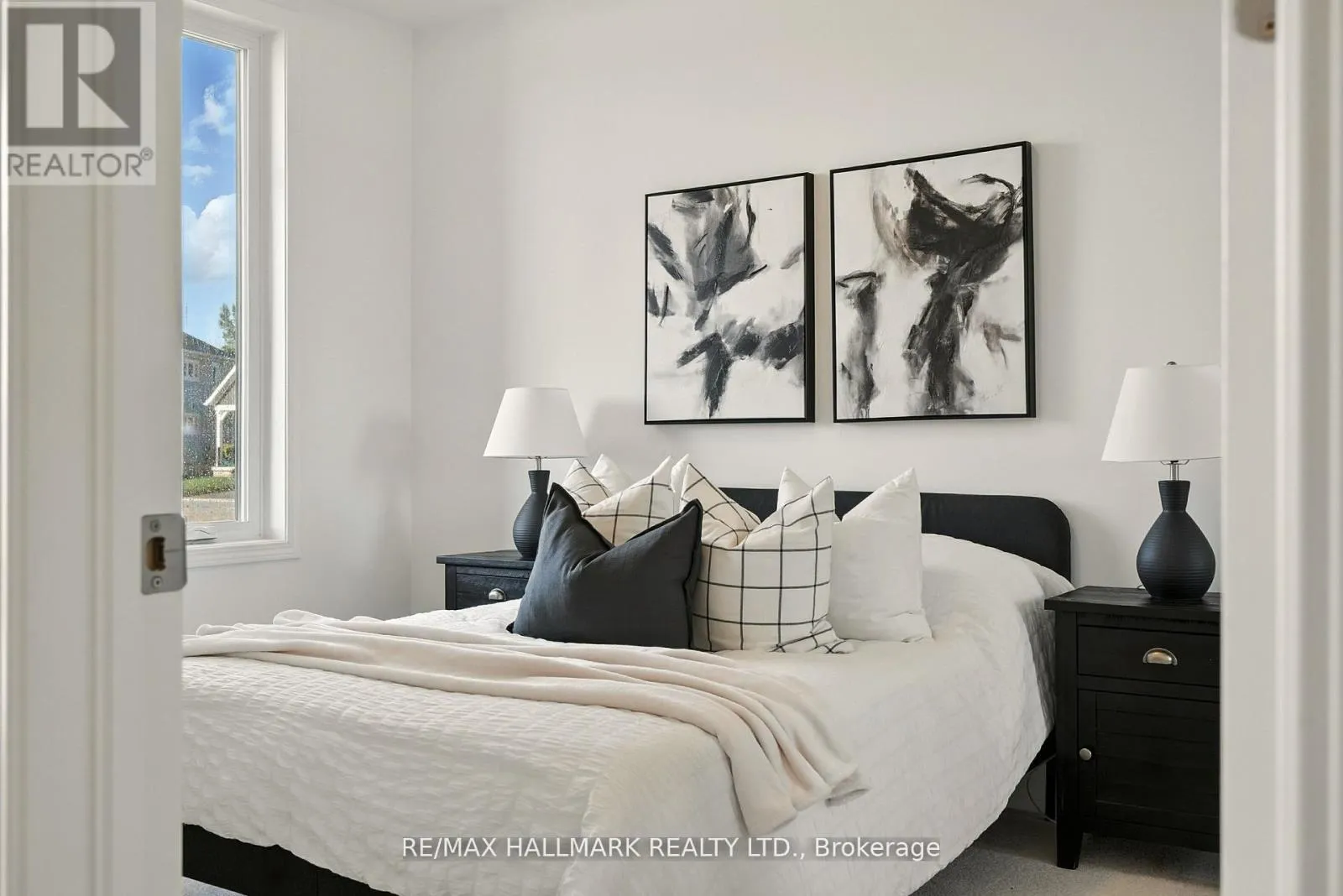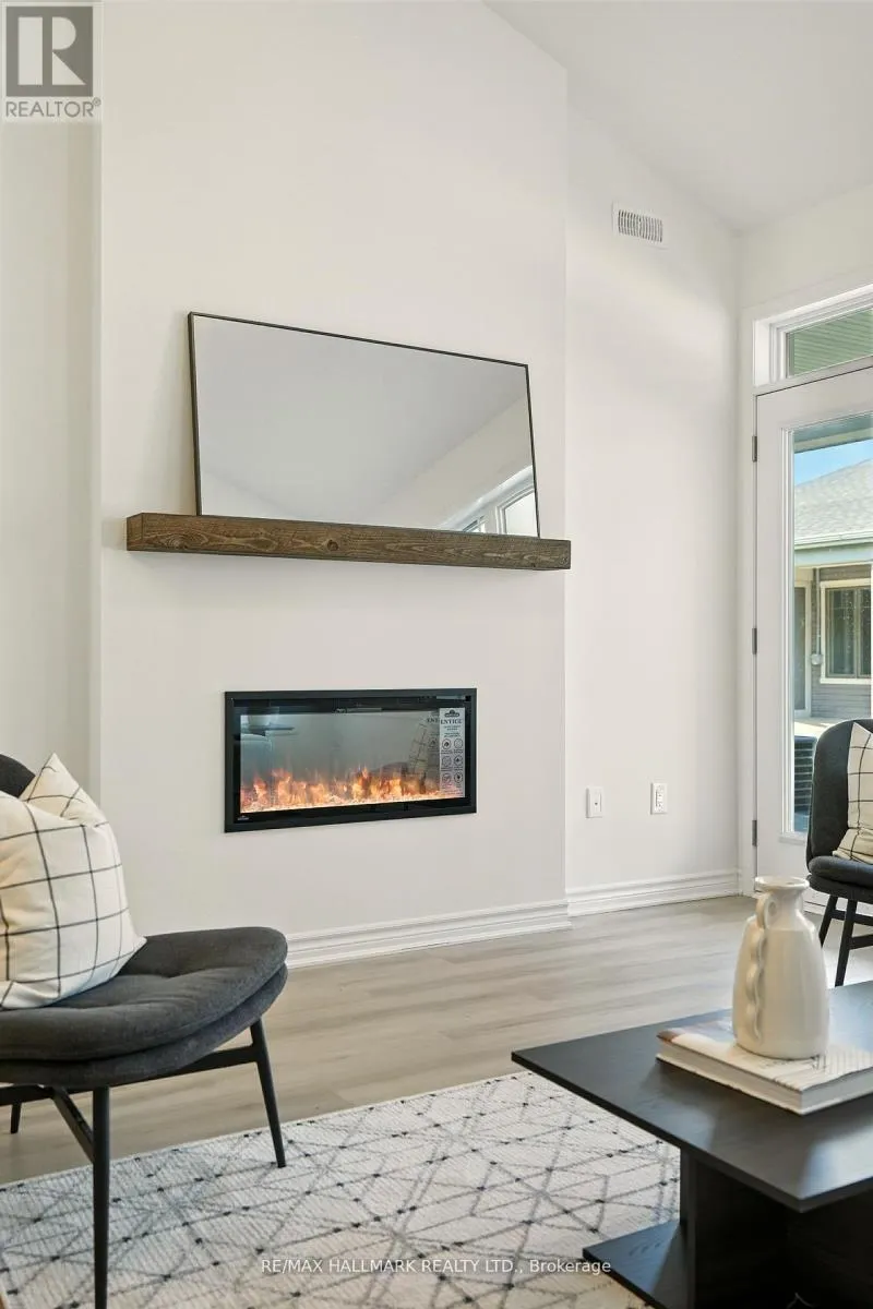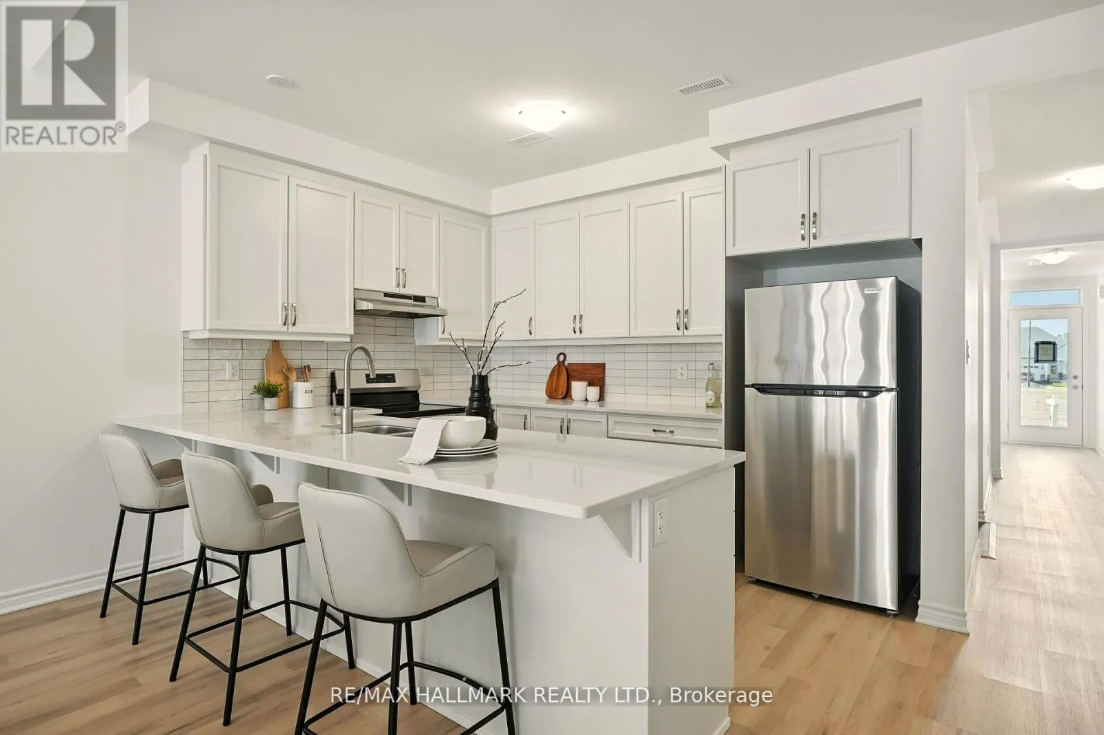 Ireton/25th Sideroad BRAND-NEW BUNGALOFT WITH LUXURY FINISHES. Welcome to this stunning, brand-new, never-lived-in land lease bungaloft townhome, offering a rare combination of modern design, energy efficiency, and move-in-ready convenience! Nestled in a vibrant all-ages community, this land lease home is an incredible opportunity for first-time buyers and downsizers alike. Step inside to find soaring vaulted ceilings and an open-concept main floor designed for effortless living. The kitchen is a true showstopper, featuring quartz countertops, stainless steel appliances, an oversized breakfast bar, a tile backsplash, a built-in microwave cubby, and full-height cabinetry that extends to the bulkhead for maximum storage. The inviting living room boasts a cozy electric fireplace and a walkout to a private covered back patio, perfect for relaxing or entertaining. The main floor primary bedroom offers a 4-piece ensuite with a quartz-topped vanity plus a walk-in closet. A second main floor bedroom is conveniently served by its own 4-piece bathroom. Enjoy the convenience of in-floor heating throughout, main-floor in-suite laundry, and a garage with inside entry to a mudroom complete with a built-in coat closet. Upstairs, a spacious bonus family room/loft offers endless possibilities as a second living space, home office, or guest room, along with an added second-floor powder room for extra convenience. Smart home features include an Ecobee thermostat, and comfort is guaranteed with central air conditioning and Energy Star certification. Eligible First Time Home Buyers may be able to receive up to an additional 13% savings on the purchase of this home through the proposed Government FTHB Rebate Program. (id:27476)