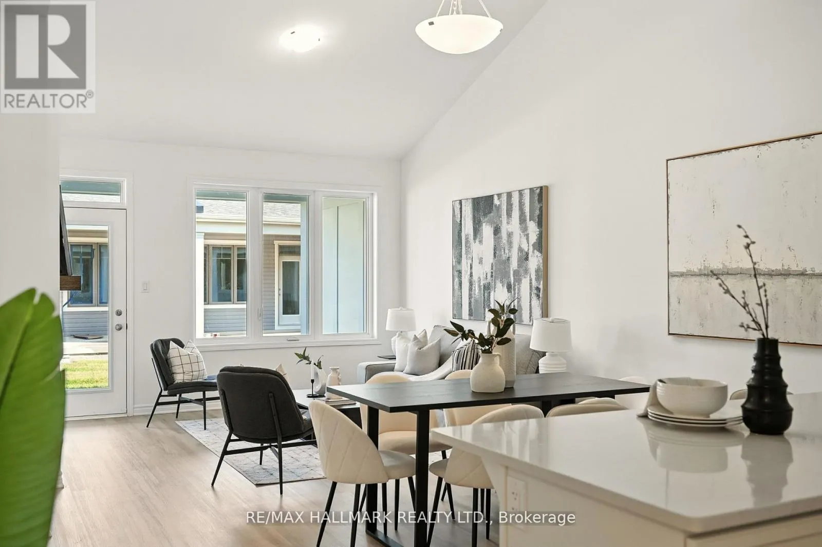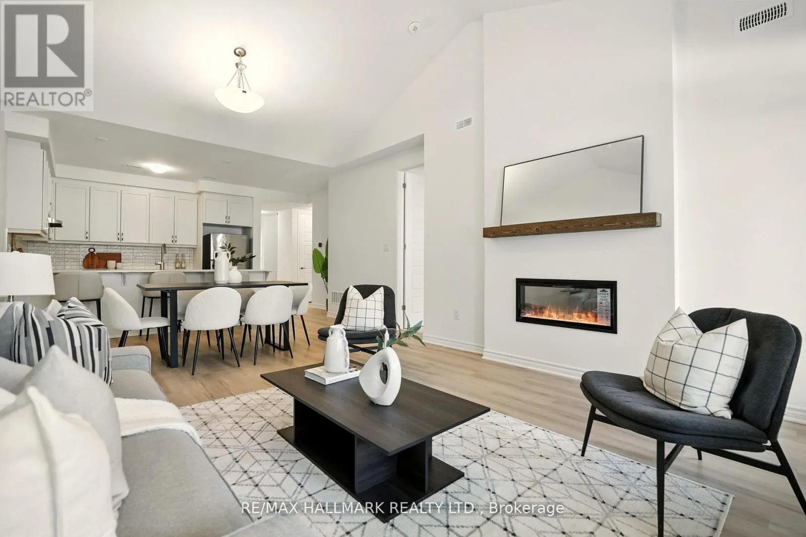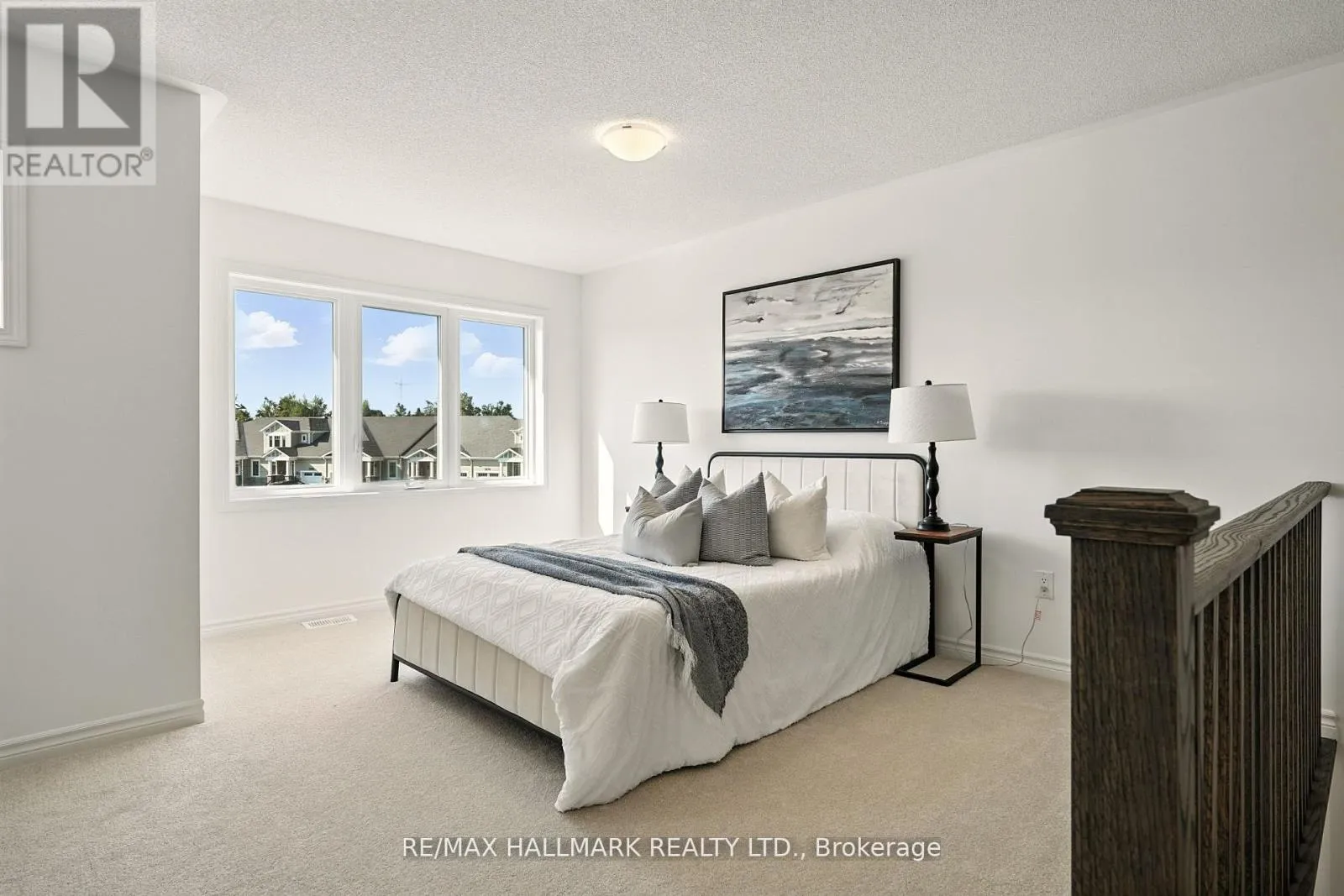 Ireton/25th Sideroad BRAND-NEW BUNGALOFT WITH LUXURY FINISHES. Welcome to this stunning, brand-new, never-lived-in land lease bungaloft townhome, offering a rare combination of modern design, energy efficiency, and move-in-ready convenience! Nestled in a vibrant all-ages community, this land lease home is an incredible opportunity for first-time buyers and downsizers alike. Step inside to find soaring vaulted ceilings and an open-concept main floor designed for effortless living. The kitchen is a true showstopper, featuring quartz countertops, stainless steel appliances, an oversized breakfast bar, a tile backsplash, a built-in microwave cubby, and full-height cabinetry that extends to the bulkhead for maximum storage. The inviting living room boasts a cozy electric fireplace and a walkout to a private covered back patio, perfect for relaxing or entertaining. The main floor primary bedroom offers a 4-piece ensuite with a quartz-topped vanity plus a walk-in closet. A second main floor bedroom is conveniently served by its own 4-piece bathroom. Enjoy the convenience of in-floor heating throughout, main-floor in-suite laundry, and a garage with inside entry to a mudroom complete with a built-in coat closet. Upstairs, a spacious bonus family room/loft offers endless possibilities as a second living space, home office, or guest room, along with an added second-floor powder room for extra convenience. Smart home features include an Ecobee thermostat, and comfort is guaranteed with central air conditioning and Energy Star certification. Eligible First Time Home Buyers may be able to receive up to an additional 13% savings on the purchase of this home through the proposed Government FTHB Rebate Program. (id:27476)