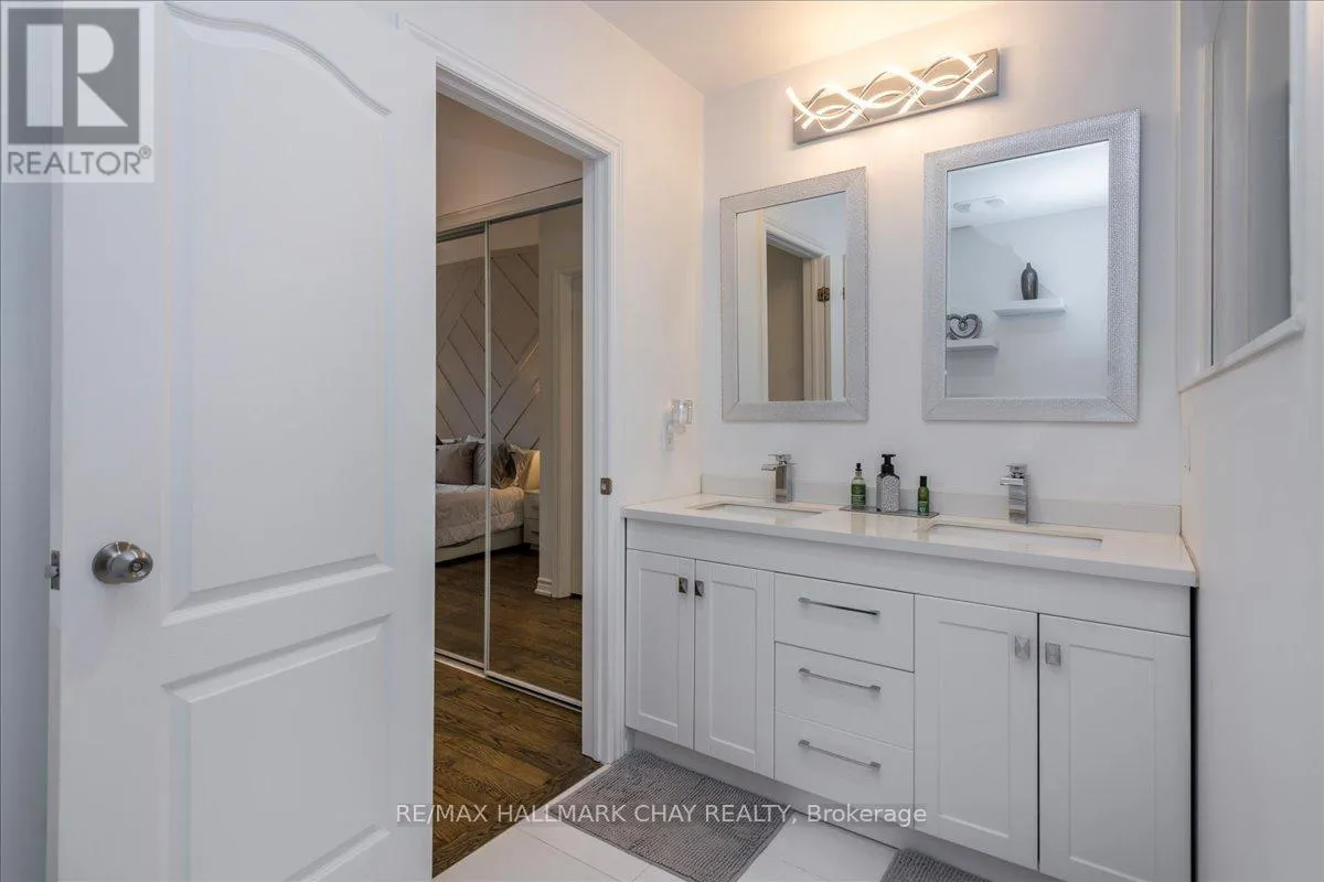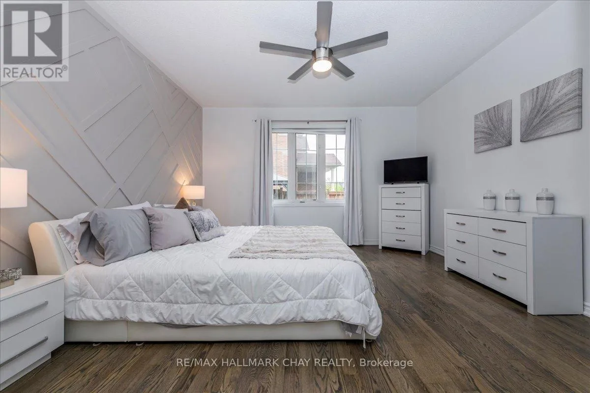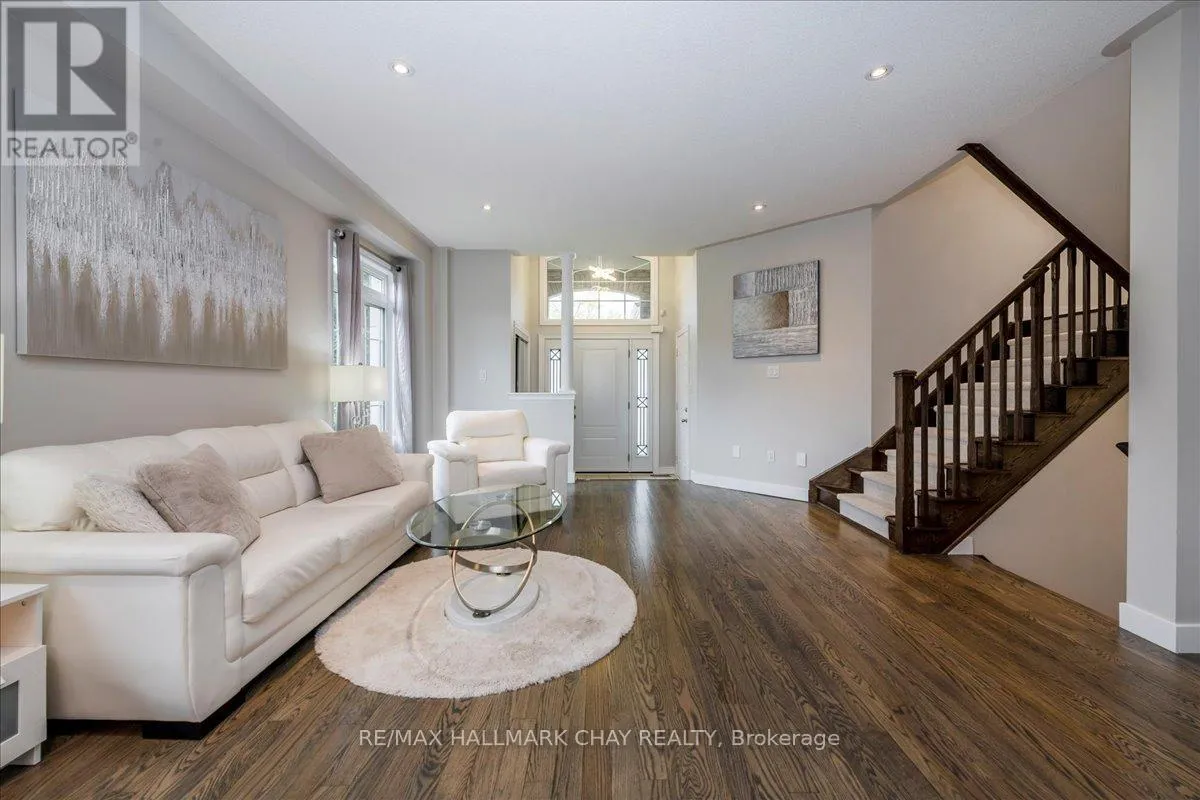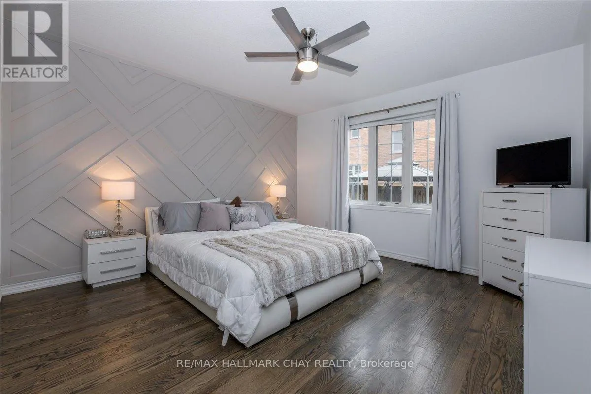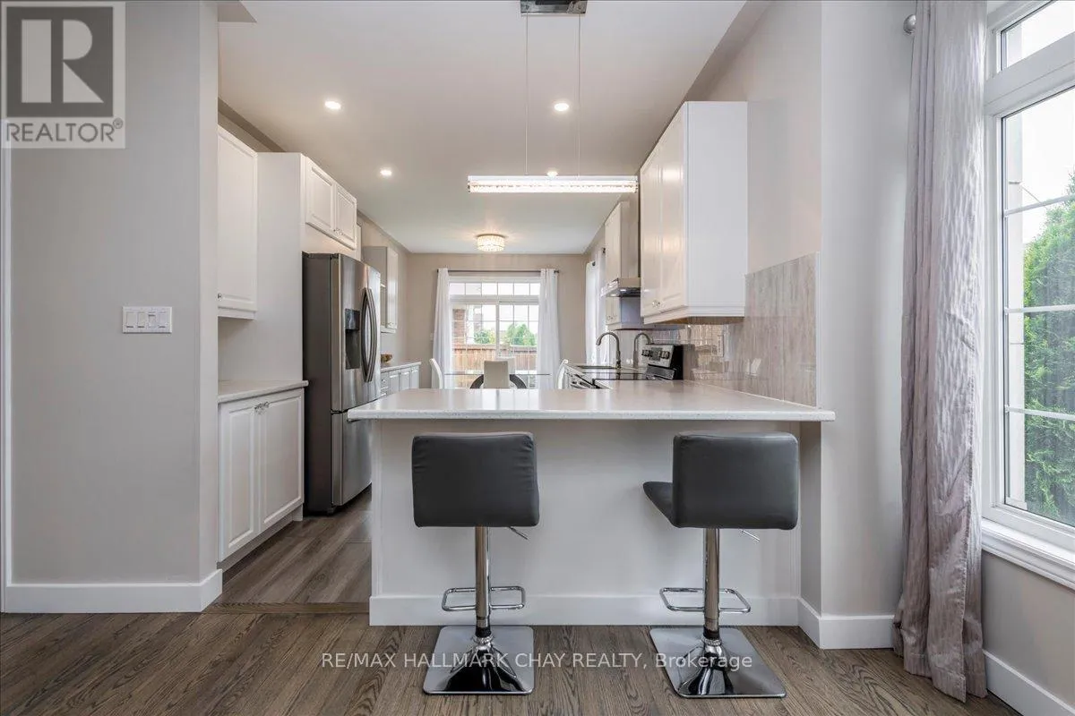 Cross Streets: IBR AND WEBSTER. ** Directions: WEBSTER TO HUNTER. Beautifully Finished Bungaloft in the Heart of Alcona! This pristine 3+1 bedroom, 4 bathroom home offers approximately 2,617 finished sq.ft. of thoughtfully designed living space, showcasing exceptional curb appeal and true pride of ownership throughout. A grand foyer with soaring ceilings welcomes you into a spacious open-concept living room featuring hardwood flooring. The stunning eat-in kitchen is complete with a breakfast bar, stylish backsplash, and stainless steel appliances. The main-floor primary suite features a walk-in closet and a beautifully updated ensuite bathroom. Upstairs, two generously sized bedrooms share a modern full bathroom. The fully finished lower level offers a large family room, additional bedroom, full bathroom, cantina, and ample storage. Enjoy outdoor living in the fully fenced backyard with patio, gazebo, and BBQ area with natural gas line. KEY UPDATES: kitchen, primary and basement bathrooms, front and garage doors, flagstone walkway and patio, some flooring, stair runner, trim, pot lights, and fresh paint. Additional highlights include a 4-car driveway with no sidewalk, double garage with inside entry, brick and stone exterior, covered entryway, and 9' and vaulted ceilings on the main floor. Ideally located close to schools, shops, parks, recreation centre, health centre, Lake Simcoe, and with easy access to Highway 400. Just unpack and relax! (id:27476)