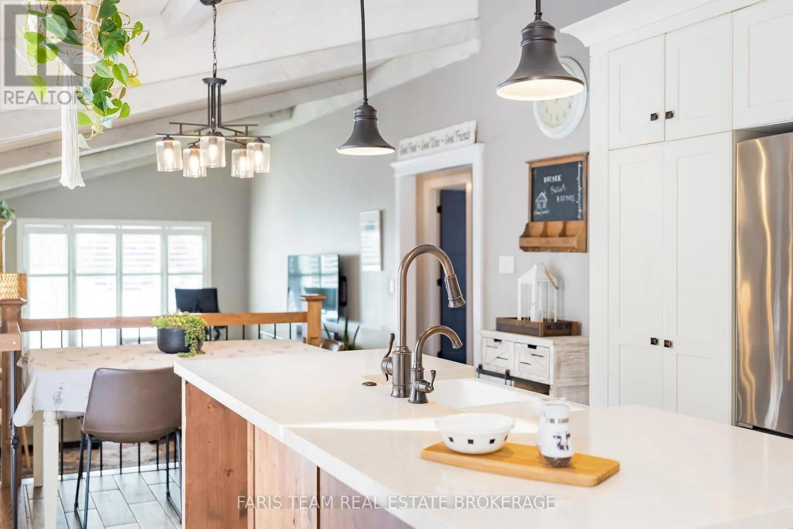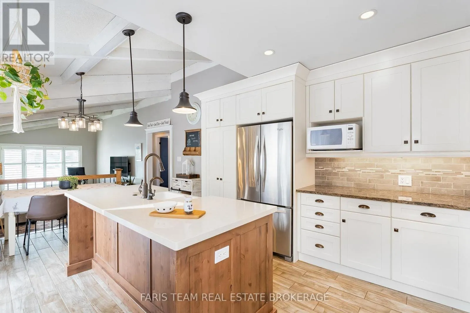 Roberts Rd/25th Sdrd Top 5 Reasons You Will Love This Home: 1) Set in a family-friendly neighbourhood in the heart of Alcona, offering laid-back living just steps to the beach and an hour from Toronto, with easy access to Highway 400, the GO station, schools, and everyday shopping 2) Short walk bringing you to Lake Simcoe, nearby beaches, and a public boat launch, perfect for boating, fishing, and spontaneous summer days by the water, without the cottage-country drive 3) With just over 1,800 square feet of finished living space, four generously sized bedrooms, and two bathrooms, this bungalow delivers the space and flexibility families need 4) Inside, the main level features a mindfully updated gourmet kitchen with Caesarstone countertops, decorative cabinetry, a cast-iron farmhouse sink, recessed lights, and ceramic flooring, all flowing seamlessly into a welcoming living room with a cathedral ceiling 5) Recent upgrades provide true peace of mind, including a new furnace and air conditioner, front door, and bedroom windows (all 2025), plus a metal roof, HEPA filtration system, and renovated bathrooms, making this a move-in-ready home on a spacious lot with room to gather around the firepit and enjoy the outdoors. 1,104 above grade sq.ft. plus a finished basement. *Please note some images have been virtually staged to show the potential of the home. (id:27476)
