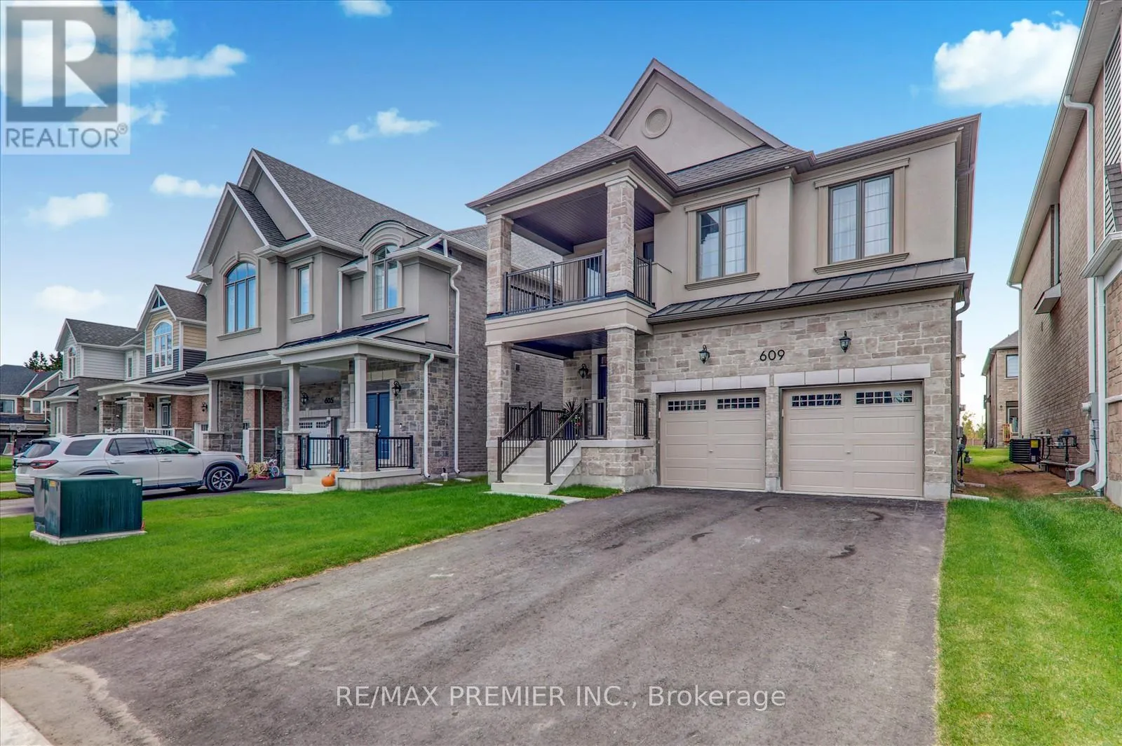 MIKA ST/ MIDDLEMAS ST Welcome to 609 Mika Street, 2,360 sqft above grade in Innisfil's home highly anticipated Lakehaven community-a quiet, features a stunning high end French Chateau exterior with elegant stone and stucco detailing accented. Lakeside neighbourhood offering large lots, peaceful streets, and an inviting cottage-style feel just minutes from Lake Simcoe. This beautifully upgraded 4-bedroom + den, 3-bath detached home features a bright open-concept layout with 9-ft ceilings, hardwood flooring, smooth ceilings, and pot lights throughout inside and outside. The modern kitchen showcases quartz countertops, modern backsplash, upgraded cabinetry, a large centre island, and high-end appliances, overlooking a sun-filled Great Room with a cozy gas fireplace. A formal dining area makes entertaining effortless. Convenient second-floor laundry, and a spacious Primary Suite with walk-in closet and luxurious ensuite. One bedroom opens to a covered balcony, perfect for relaxing mornings. With a deep backyard, thoughtful finishes, and close proximity to schools, parks, shopping, beaches, and trails, offers the perfect blend of lakeside charm and modern family living. (id:27476)