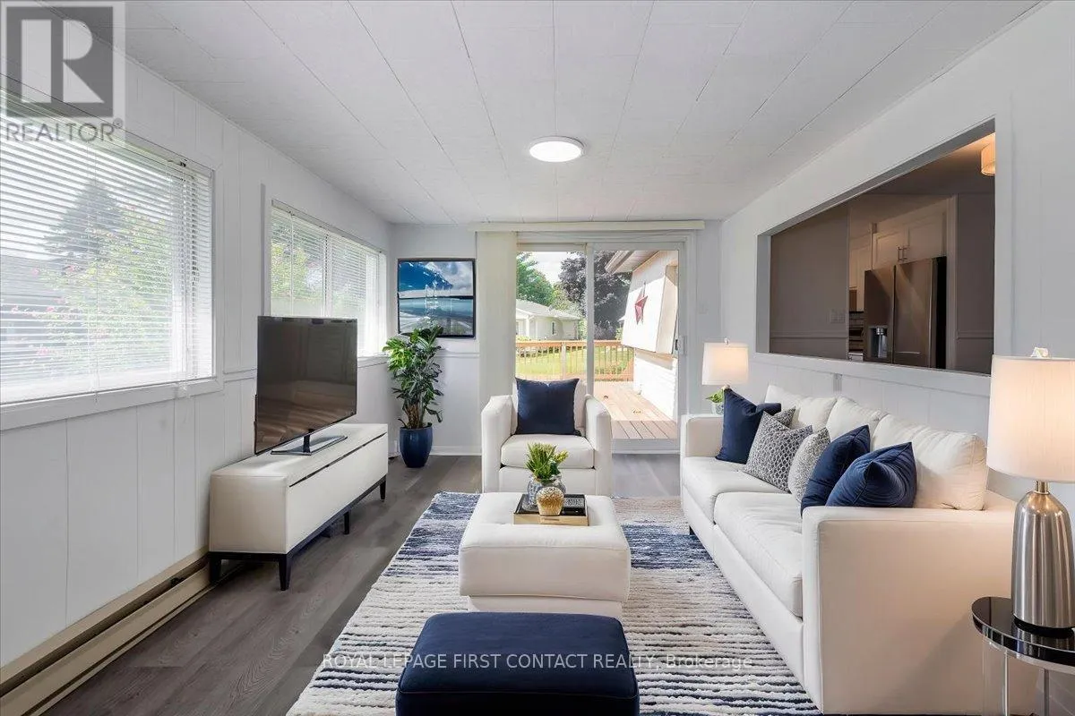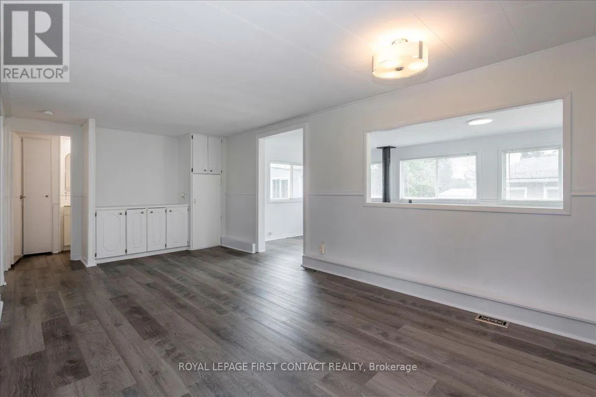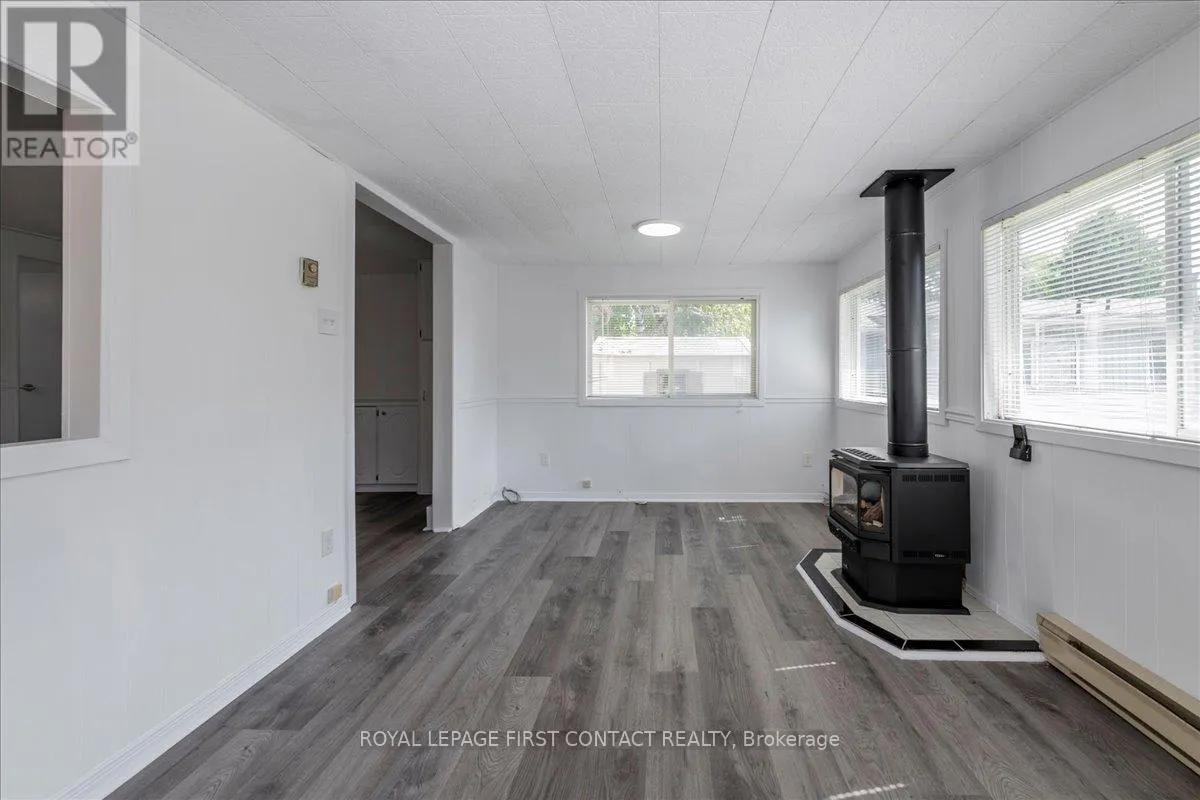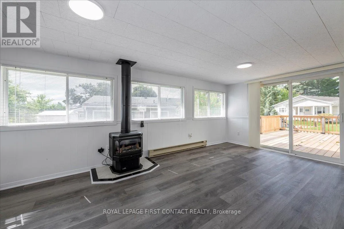 Cross Streets: Weeping Willow Drive and Hawthorne Drive. ** Directions: Lockhart Rd to Weeping Willow Dr to Hawthorne Dr. This home is sure to please. Located in the vibrant adult community of Sandycove Acres South. This bright and spacious 2 bedroom, 1+1 bath popular Argus model has a large family room with a gas fireplace and walk out to a spacious deck large enough for lounge chairs to enjoy the outdoors. The flooring has been updated with quality vinyl plank throughout the entire home with no transitions and the walls are painted in a bright neutral white. The galley style kitchen has been totally updated with new cupboards, quartz countertops, undermount sink with faucet and tiled backsplash, new stainless-steel appliances including a built in microwave over the stove. The bathrooms have also been totally updated with new quartz counter vanities, sinks, taps, mirrors, lighting and the main bathroom has a new spa like walk-in shower with soft close glass doors. This extensively improved home is move in ready with newer gas furnace, central air conditioner and windows (2013), shingles (2010) and back deck with steps (2024). The laundry area next to the kitchen has white side by side washer and dryer with storage above and a large pantry closet. Private side by side 2 car parking with level access to the front door and convenient access to the side door. Sandycove Acres is close to Lake Simcoe, Innisfil Beach Park, Alcona, Stroud, Barrie and HWY 400. There are many groups and activities to participate in along with 2 heated outdoor pools, 3 community halls, wood shop, games room, fitness centre, and outdoor shuffleboard and pickle ball courts. New lease fees are $717.24/mo lease and $116.08 /mo taxes. Come visit your home to stay and book your showing today. (id:27476)