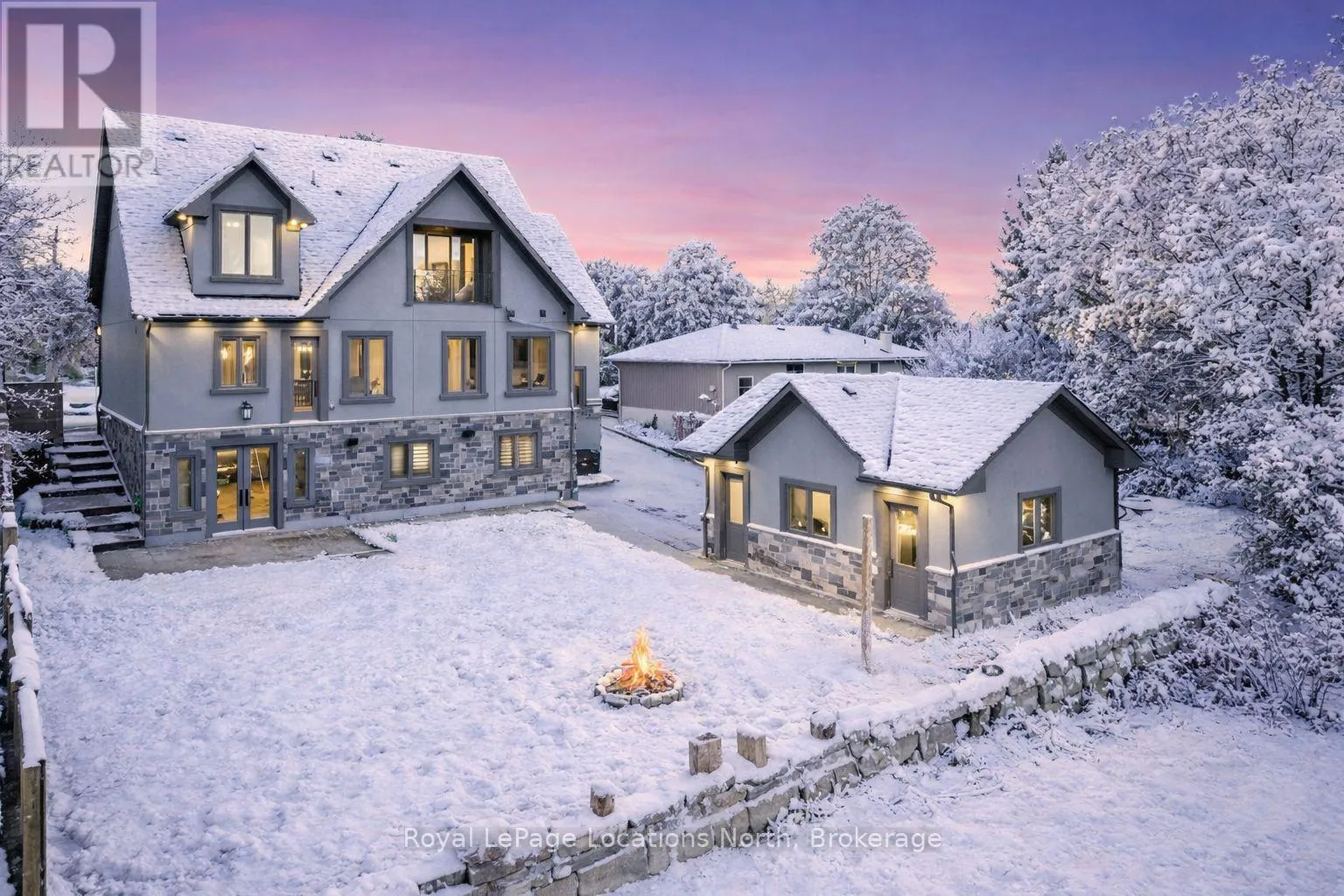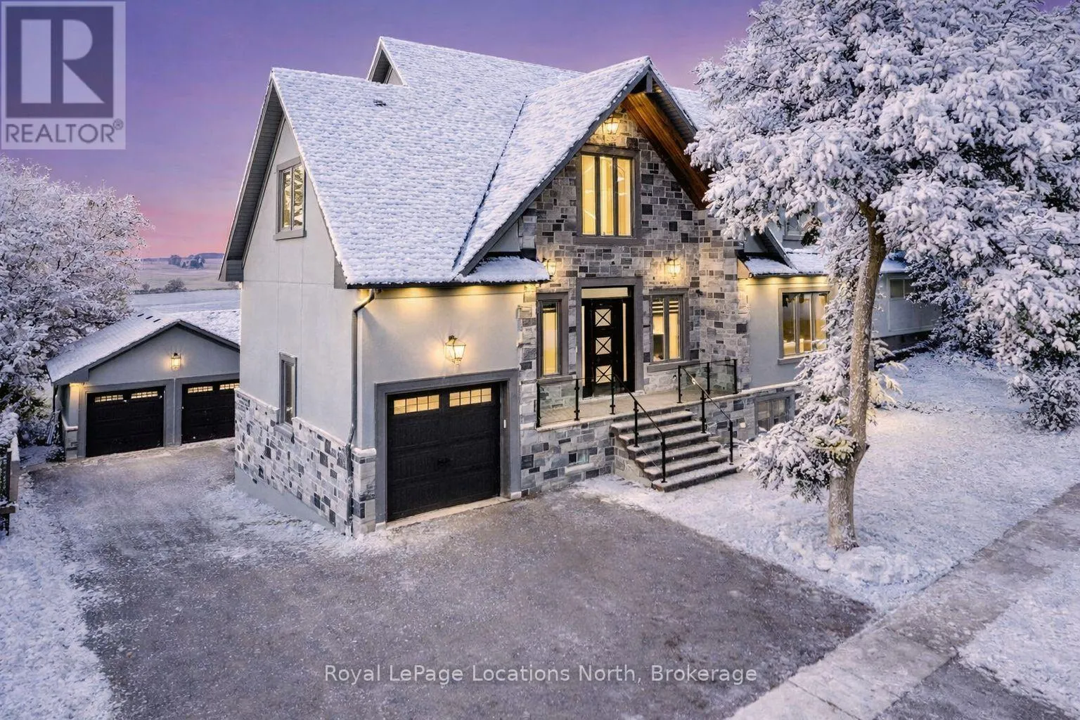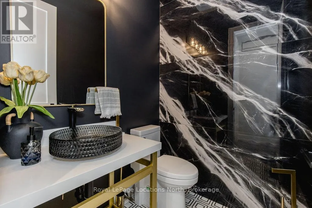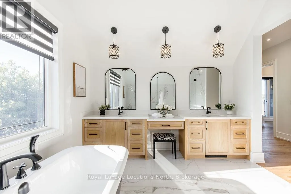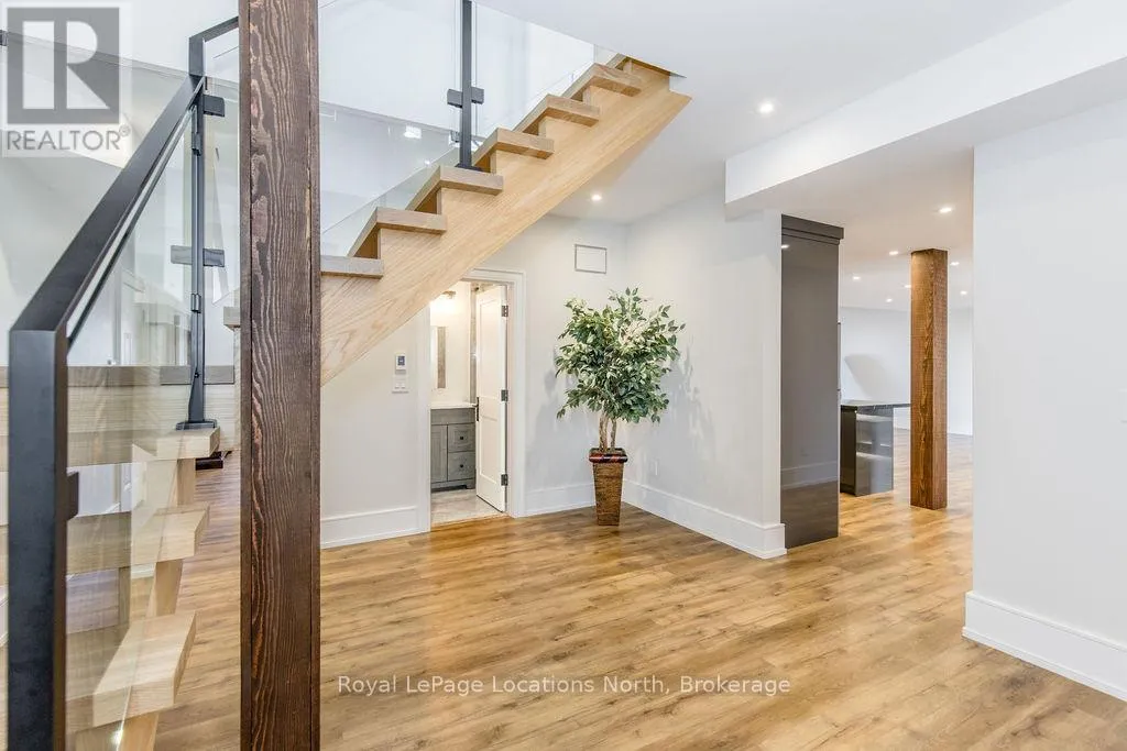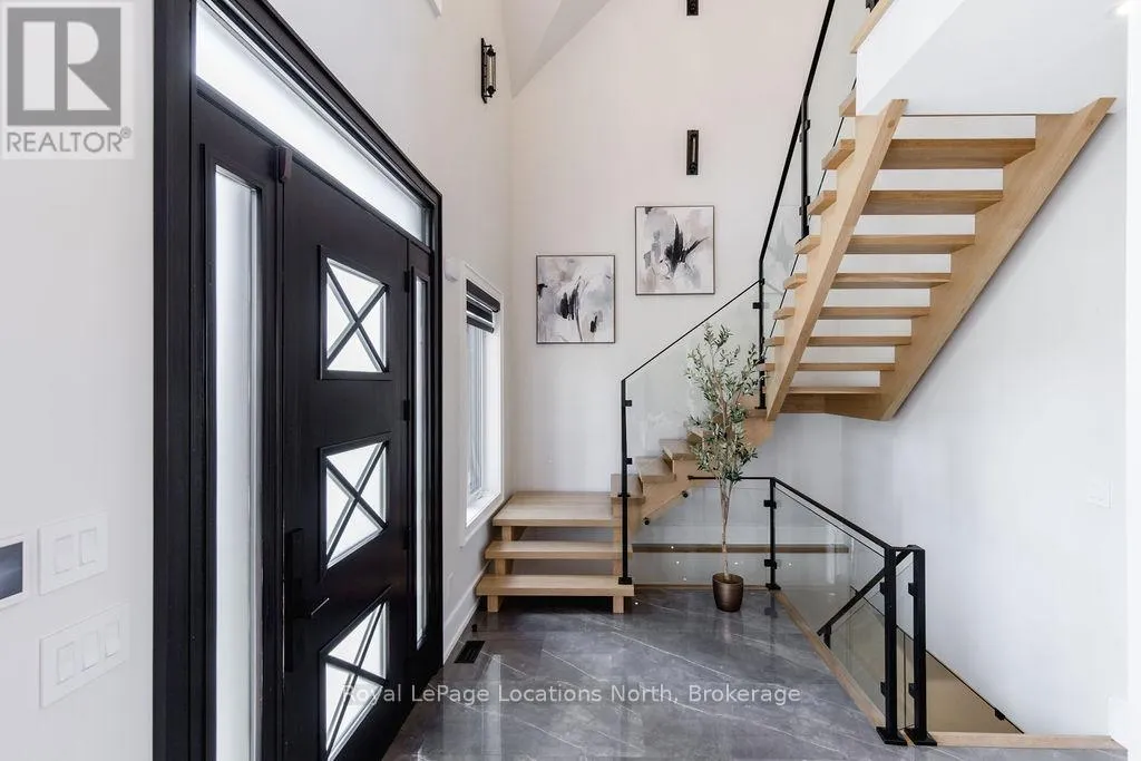 King St N/E John St or 89-Elizabeth St to East John St BACKS ONTO PROTECTED LAND. This stunning luxury home is situated on a quiet dead-end st, w/views of the countryside, + steps from park/rink/courts/library. This thoughtfully designed home offers an elegant, vibe, w/high end craftsmanship, featuring a stone + stucco exterior w/exceptional curb appeal. Upon entering, you are greeted by a grand entrance w/ heated porcelain tile floors, a custom wood staircase w/glass railing, + vaulted ceilings that create an inviting ambiance. The main level showcases engineered white oak flooring + exposed beam accents. The spacious living room offers custom-built cabinetry, a tiled feature wall with a built-in electric f/pl, + space for a TV. Adjacent is the elegant dining room, equipped w/ built-in cabinetry, dry bar, quartz counters, backsplash, +under-mount lighting perfect for entertaining. The family room flows directly from the dining room, offering a 2nd tiled wall w/ built-in electric f/pl, lg windows + seamless transition. The gourmet kitchen is classy, featuring an oversized island, quartz countertops, high-end s/s appliances, incl a gas range w/ a custom range hood + walk-in pantry. A private office w/views + a mud/laundry room w/heated tile floors, inside entry to garage w/ epoxy floors + w/up from basement. 25 ft ceilings impress, flowing into 2nd flr w/white oak flooring that continues throughout, leading to the luxurious primary suite. This retreat incl access to private balcony, a walk-through closet w/ built-in organizers, + 6PC ensuite w/ dbl sinks, soaker tub, + large glass shower. Two additional bedrooms each have their own 3PC bathrooms w/ tiled showers + heated floors. The basement offers versatility, featuring expansive rec room + walk-out French doors leading to the patio, providing in-law potential. This bright space offers luxury plank floor, full kitchen, 2 bedrooms, + a 3PC bathroom. Outside, enjoy an add. detached,heated 2-car garage w/ gas + water lines for future pool installation. (id:27476)