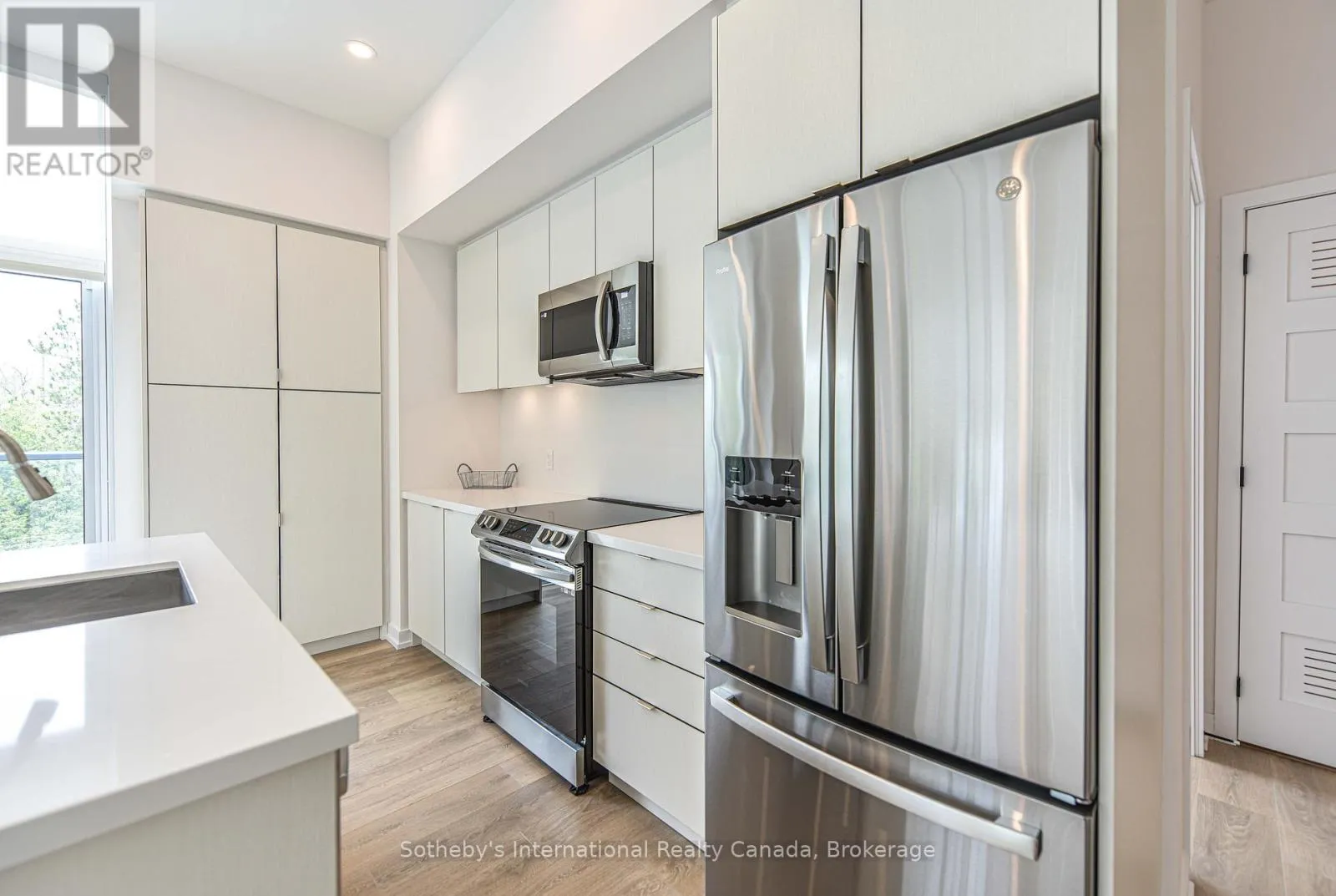 Cross Streets: Friday drive-Sea ray ave. ** Directions: Big Bay point road-13th line-Friday drive-Sea ray ave (First building). Corner Penthouse suite in new "High Point" at Friday Harbour. One of the largest 2 Bedroom layouts with 1,010 sqft, 10' ceilings and situated with forest views across from the on-site walking trails. spacious 120 sqft deck off the open concept living/dining/kitchen. The Primary has a small walk in closet with custom closet organizer and a second lockable owners closet, as well as a beautiful ensuite bath with upgraded fixtures. The second bedroom is large and bright and near the second full bath. the open concept kitchen comes with new stainless appliances and an island that can accommodate a few barstools for casual dining. Lots of upgrades. Enjoy the outdoor in ground pool at the condo or head to the resorts beach club or other facilities on site to enjoy your down time. weekly entertainment at the waterfront pavilion brings everyone out at night, or just enjoy a quiet dinner at one of the great restaurants. (id:27476)
