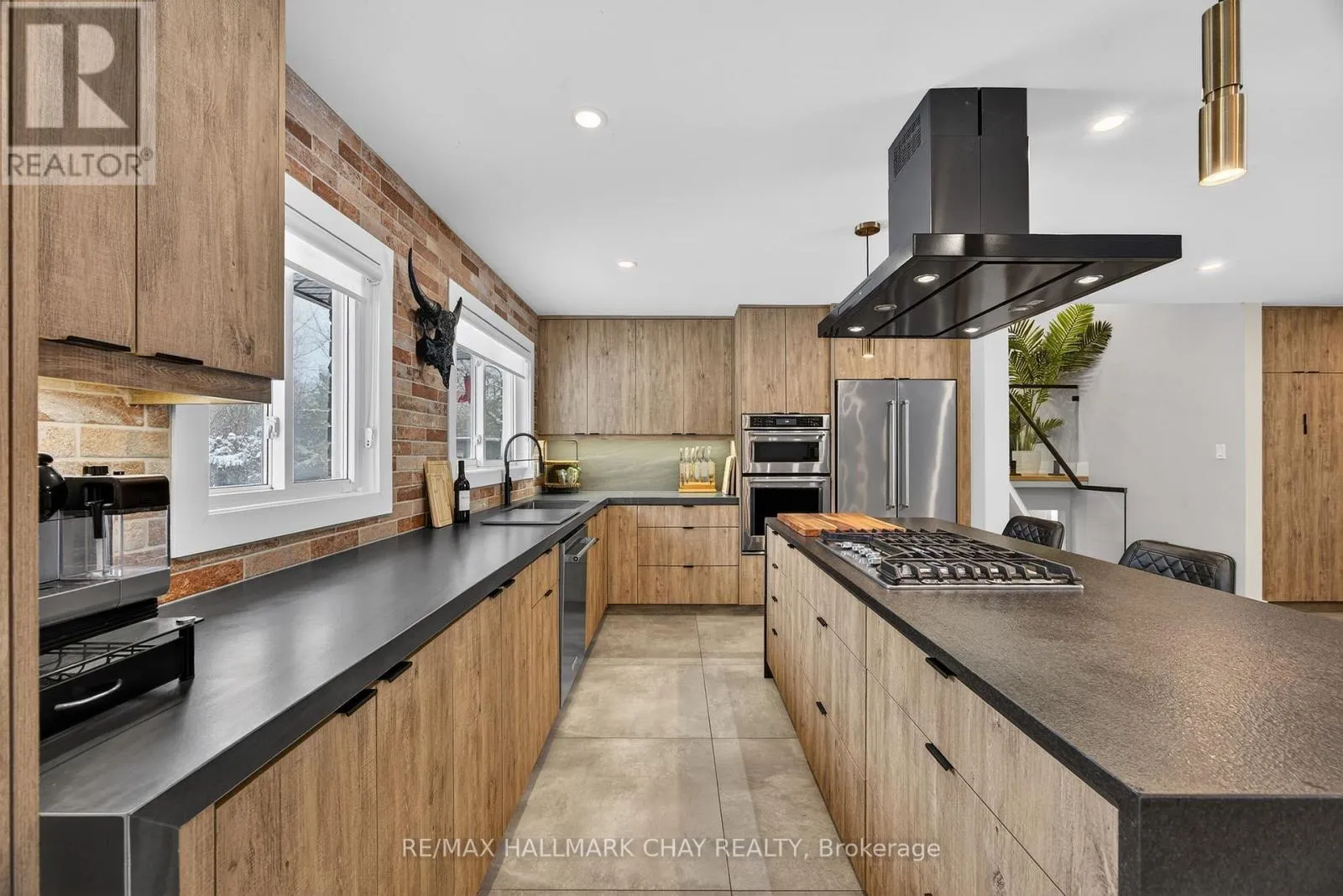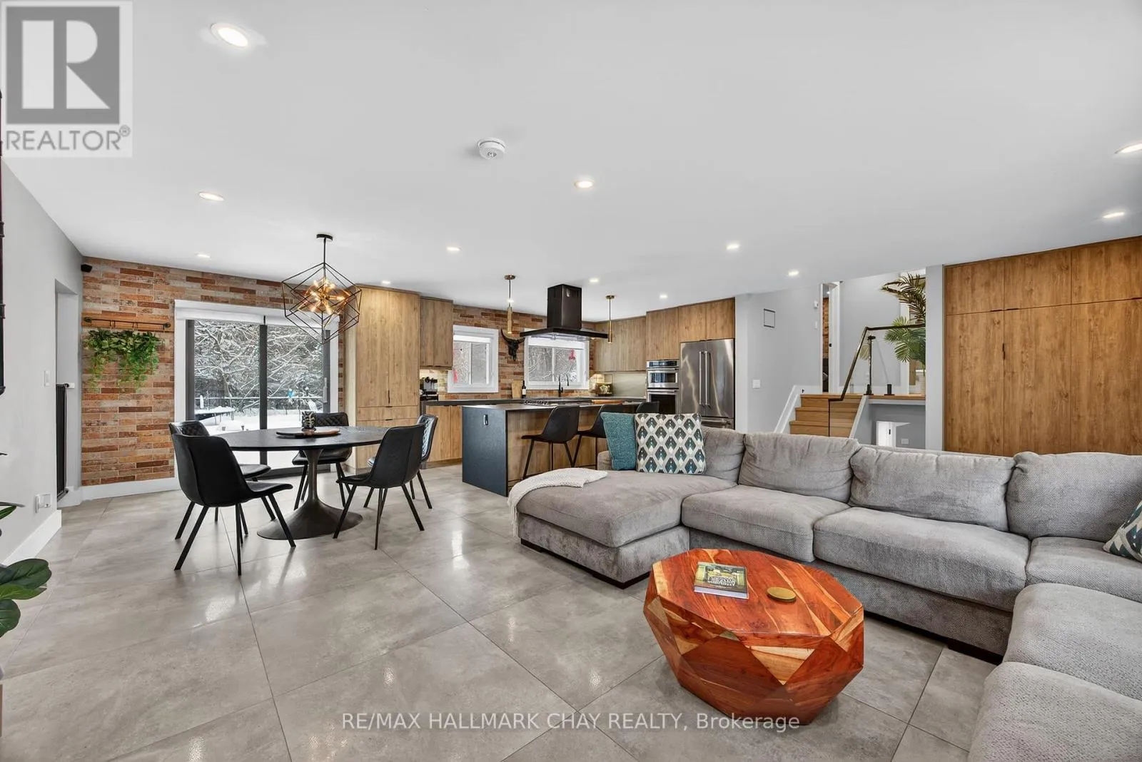 Yonge St / Gilford Road Turnkey Family Home Nestled On Huge 117 x 162Ft Lot In Quiet & Growing Gilford! Fully Renovated From Top To Bottom In 2023 With No Details Spared! Open Concept Layout Features 1,800+ SqFt Of Available Living Space With Potlights, Hardwood Flooring & Porcelain Tiles Throughout. Chef's Kitchen Features Porcelain Counters, High-End Kitchen Aid Stainless Steel Appliances, Farmhouse Sink, & Large Centre Island With Granite Counters, Built-In Stove Top & Hood Range. Conveniently Combined Dining Area Has Walk-Out To Massive Two-Tiered Deck & Heated Above-Ground Pool! Cozy Living Room With Electric Fireplace & Large Window Overlooking Front Yard. Upper Level Boasts 3 Spacious Bedrooms & Shared 4 Piece Bathroom With Heated Flooring. Primary Bedroom Includes Large Closet, & 3 Piece Ensuite With Heated Floors, Walk-In Shower, & Linen Closet. Fully Finished Lower Level Bright & Spacious Rec Room Featuring Porcelain Flooring, Pot Lights, & Laundry Room. Fully Fenced Private Backyard Has Mature Trees, No Neighbours Behind, & Above Ground Heated Pool, Perfect For Entertaining Family & Friends, Or Relaxing On A Warm Summer Day. Garden Shed For Extra Storage. Heated Garage With 2 Parking Spaces, & Inside Access Leads To Mudroom & 2 Piece Powder Room. Recent Upgrades Include: New Roof (2023), New Paved Driveway (2025), New Furnace (2024), Whole Home Reinsulated (2023), New Siding (2023), & New Front Door With 3-Point Lock. Prime Location Just Minutes To Cooks Bay Marina, Harbourview Golf & Country Club, Gilford Local Eatery, & Orm Membery Memorial Park, & Cook's Bay! Plus Down The Road From Gilford Road Park With Lake Access & Short Drive To Barrie, Highway 400, & All Major Amenities! (id:27476)