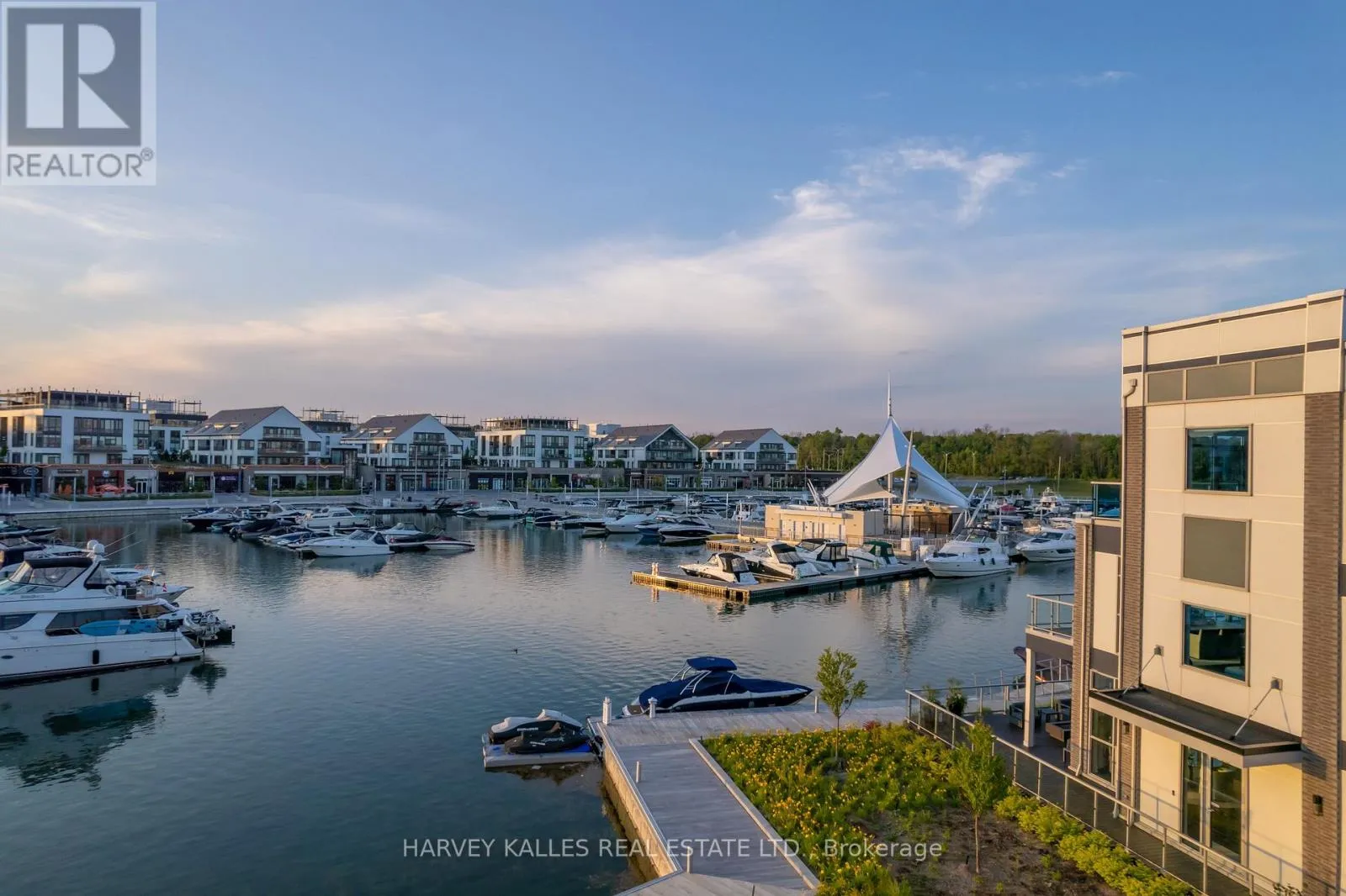 Cross Streets: Friday Harbour Resort. ** Directions: Friday Harbour Dr to Riva. STUNNING MARINA VIEWS! Luxury waterfront townhome in the exclusive marina community of Friday Harbour Resort, featuring multiple outdoor sitting areas, private dock and boat slip, and breathtaking views. Just a short drive from Toronto, enjoy resort-style living within this 600-acre master-planned community offering a Beach Club/Lake Club, pools, tennis courts, fitness centre, nature trails, championship golf course, and vibrant marina boardwalk with shops, restaurants and cafés.Extensively renovated with custom finishes throughout, including hardwood floors, upgraded lighting, and a designer kitchen with extended granite island, granite backsplash, built-in appliances, custom fluted cabinetry, and under-cabinet lighting. The family room features a striking white oak fluted feature wall with floor-to-ceiling built-ins and LED lighting.The redesigned primary suite offers custom closets, floating desk, and a spa-inspired ensuite with floating vanity, linear drain shower and custom tile. Additional upgrades include renovated powder and laundry rooms, custom cabinetry throughout, interlocking patio off the primary bedroom, and a fully upgraded garage by Garage Living.No expense spared - shows 10+. Exceptional waterfront living with luxury resort amenities at your doorstep! (id:27476)