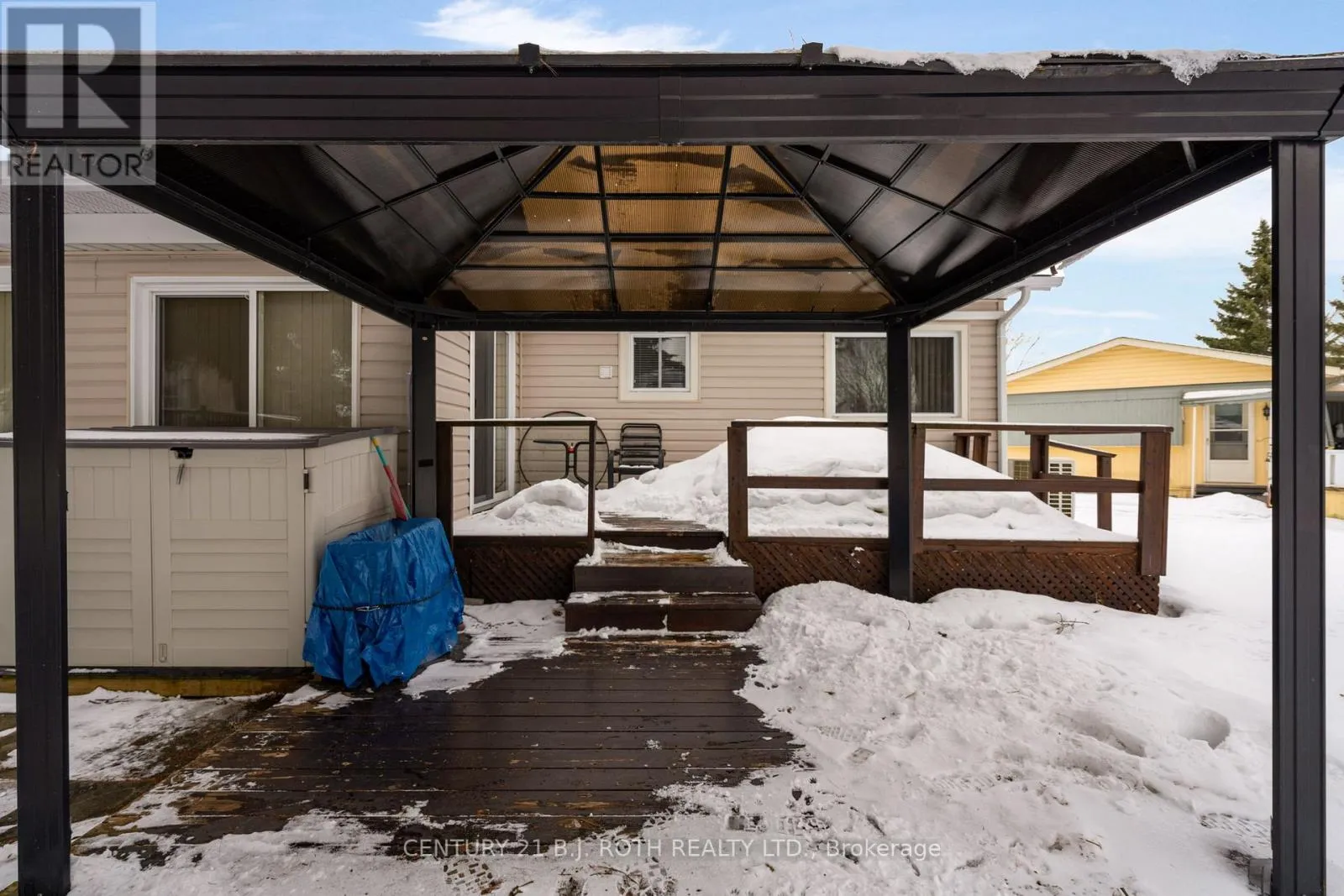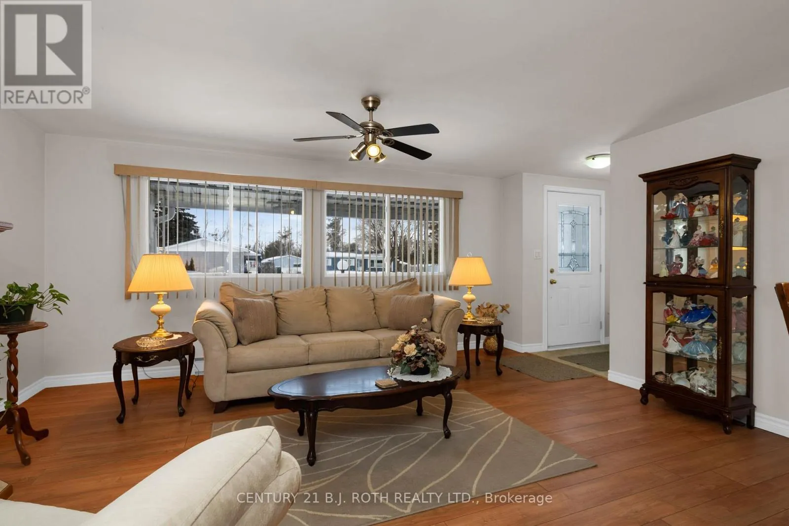 25th Side Rd to Main St Welcome to this well-cared-for home ideally located on the north end of Sandy Cove Acres. A stunning stone walkway and patio create an inviting first impression. Inside, the open concept layout features an updated kitchen with a separate island, flowing seamlessly into a lovely dining area-perfect for everyday living and entertaining. The living room is highlighted by a gas fireplace, adding warmth and charm. This thoughtfully designed home offers a two-bedroom layout, a full bathroom, and a separate laundry area for added convenience. A bright sunroom addition completed in 2019 provides extra living space and walks out to a deck overlooking an open field, offering privacy and peaceful views. Drywalled throughout with laminate flooring and two parking spots, this home is move-in ready and shows true pride of ownership. Book your showing today! Maintenance and Property Tax $1014/month (id:27476)