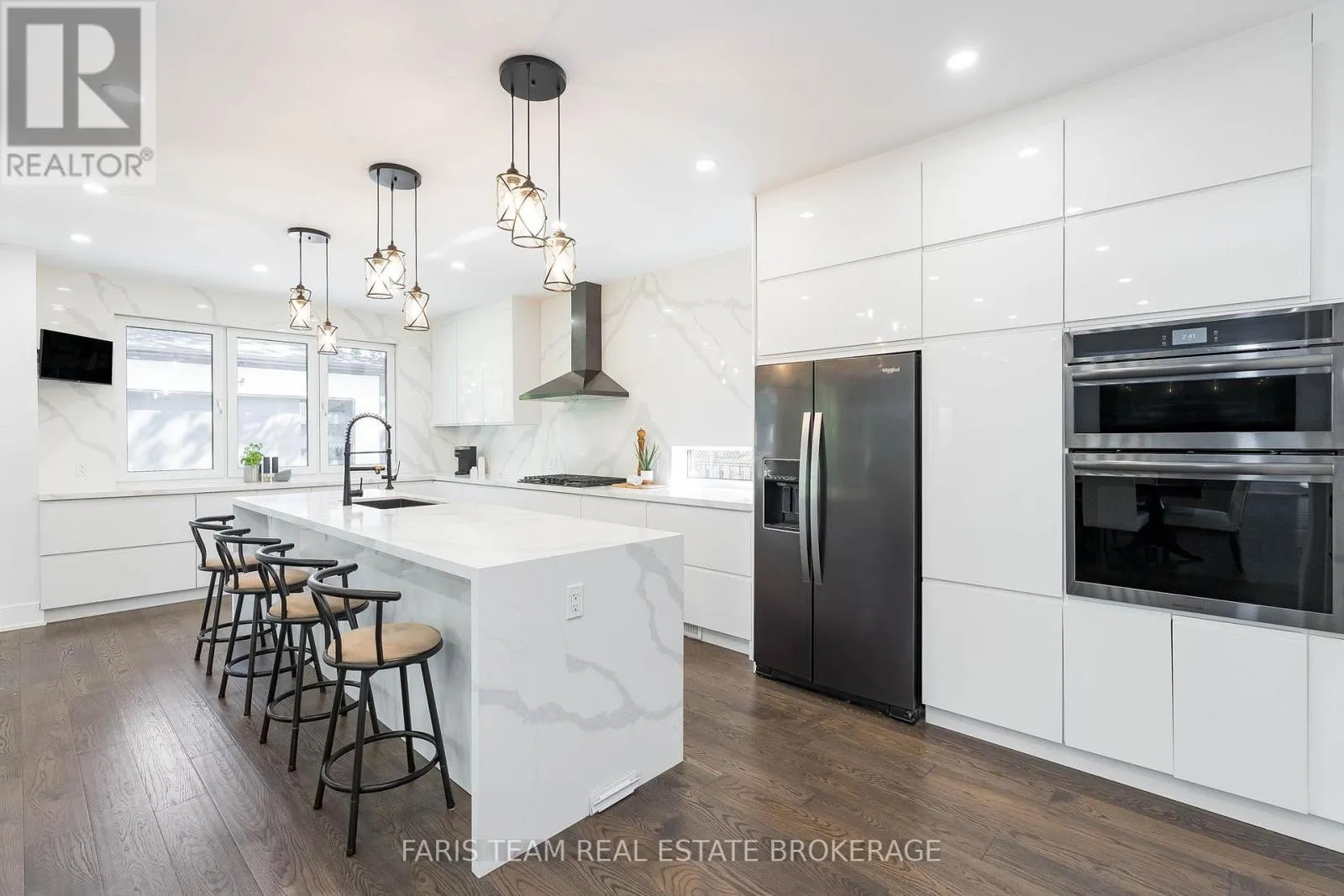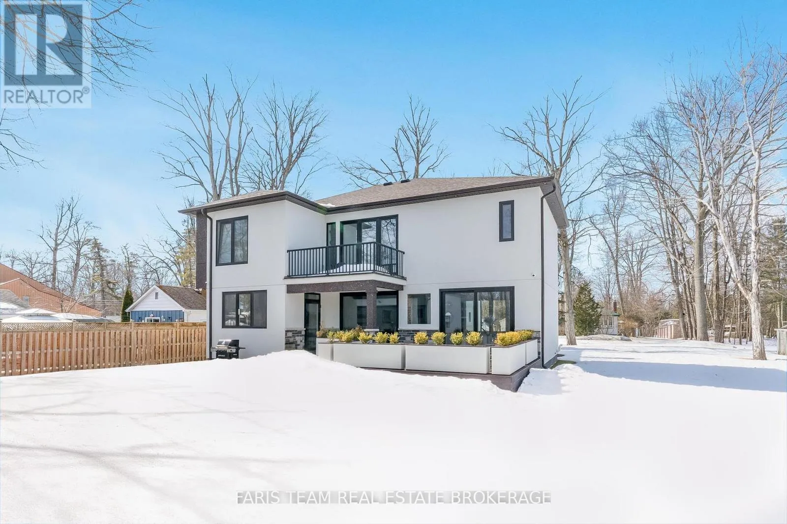 Lakeside Dr/Alberta Ave Top 5 Reasons You Will Love This Home: 1) Perfectly positioned just steps to Lake Simcoe with beach access and a boat launch, and directly across from Friday Harbour Resort 2) Built only four years ago, it showcases over 4,500 square feet of beautifully finished space with 4 bedrooms, 3.5 bathrooms, tall 9' ceilings, and refined finishes throughout 3) European craftsmanship shines with triple-pane windows, elegant European doors, a custom kitchen, and spa-inspired vanities in the primary ensuite, setting a standard of quality and style rarely seen 4) The gourmet kitchen is a chef's dream with a waterfall island, walk-in pantry, gas cooktop, and built-in oven and microwave, while the primary suite impresses with a walk-in closet, luxurious 5-piece ensuite, and private walkout balcony 5) All set on a generous 95'x150' double lot with mature trees, a detached double car garage with a 10' door, ample parking, and the convenience of a new septic and drilled well for peace of mind. 3,423 above grade sq.ft. plus a finished basement. (id:27476)