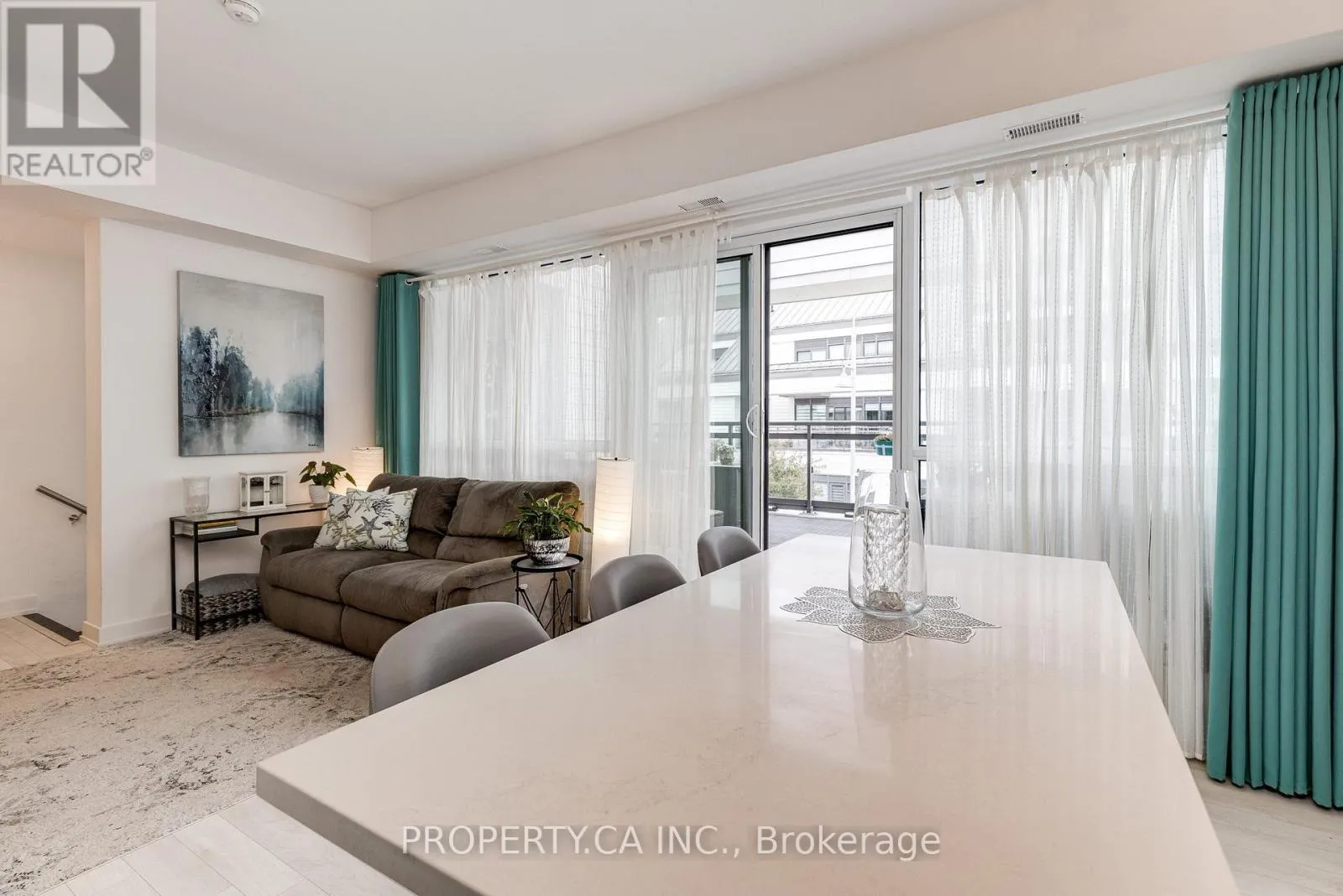 Friday Harbour Resort Step into easy, resort-style living at Friday Harbour, where every day feels like a getaway. Available April 1st - just in time to enjoy the best of the season. Recently painted and refreshed, this beautiful 2-storey boardwalk townhome offers a bright, open-concept layout that feels both spacious and welcoming. The kitchen and living area flow effortlessly together, creating the perfect setting for quiet mornings or entertaining with ease. Upstairs, you'llfind two generous bedrooms and three well-appointed bathrooms, along with the convenience of ensuite laundry. What truly sets this home apart is the incredible private terrace overlooking the marina - a rare and special space to unwind, dine outdoors, or take in the view. Offered unfurnished and priced well, this home also includes 1 underground parking space and a locker. Located just steps from the boardwalk, you're surrounded by some of Friday Harbour's best offerings - restaurants, cafés, shops, the marina, golf course, and year-round amenities including the Lake Club, beach club, pool, fitness centre, and scenic trails. All just an hour from the city - but a world away. (id:27476)