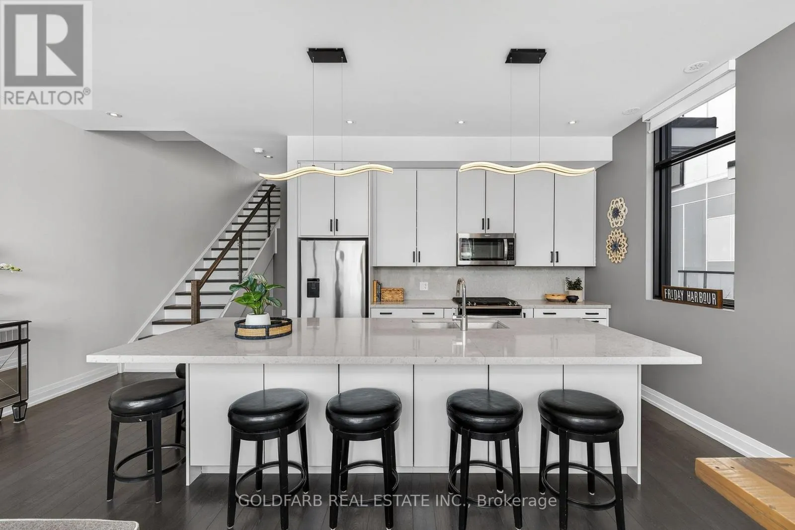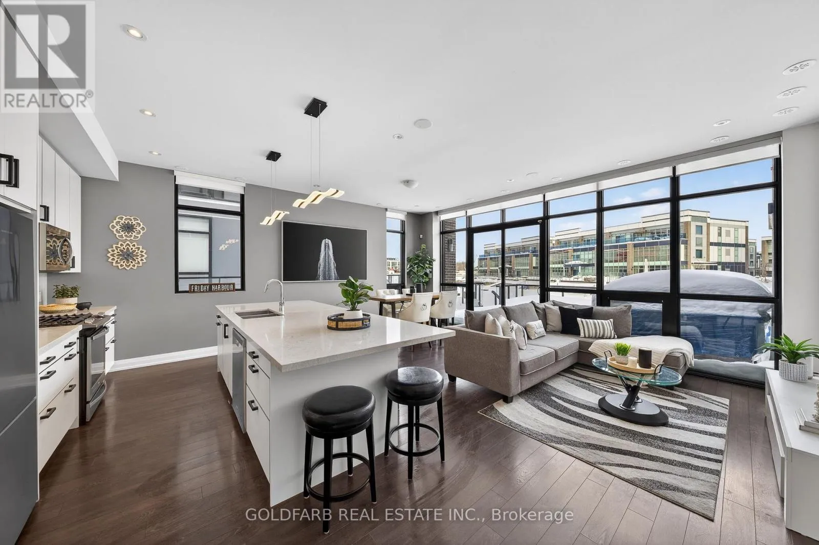 Cross Streets: Sunseeker Avenue & Riva Avenue. ** Directions: Take 13th line to Friday Drive. Turn left on Friday Drive. Continue straight until Riva Ave. Turn right on Riva Avenue... 3785 Riva Ave is in the second block of townhomes you will come across. ***End-Unit Riva Townhome | Steps to the Boardwalk*** End-unit Riva townhomes in this location are limited-and rarely offered. Set just steps from the Boardwalk Promenade and Lake Club, this home combines what many look for but rarely find together: an end unit in a true walkable position to the core of Friday Harbour. What sets this unit apart is how it lives day to day. Riva Avenue has many interior units that are accessed primarily through the garage. Here, as an end unit, you have both garage access and a proper side-door main entrance, making coming and going far more practical and it is in a sought-after location. The home is oriented to the north-east, with open views toward the marina and Boardwalk. Large windows bring in strong natural light, including morning sun across the main living areas. The main floor is open concept with floor-to-ceiling windows and walkout to a full-width deck facing the marina. The kitchen is centered around an oversized island, designed for everyday use and entertaining. The property includes a private dock and boat slip, with a pedestal providing power, water, and lighting. Upstairs, the primary bedroom faces the water, opens to a private balcony, and includes ample closet space. Two additional bedrooms provide flexibility for guests, family, or workspace. Parking includes two garage spaces and two driveway spots. Includes high speed internet, access to boat/dock slip. (id:27476)