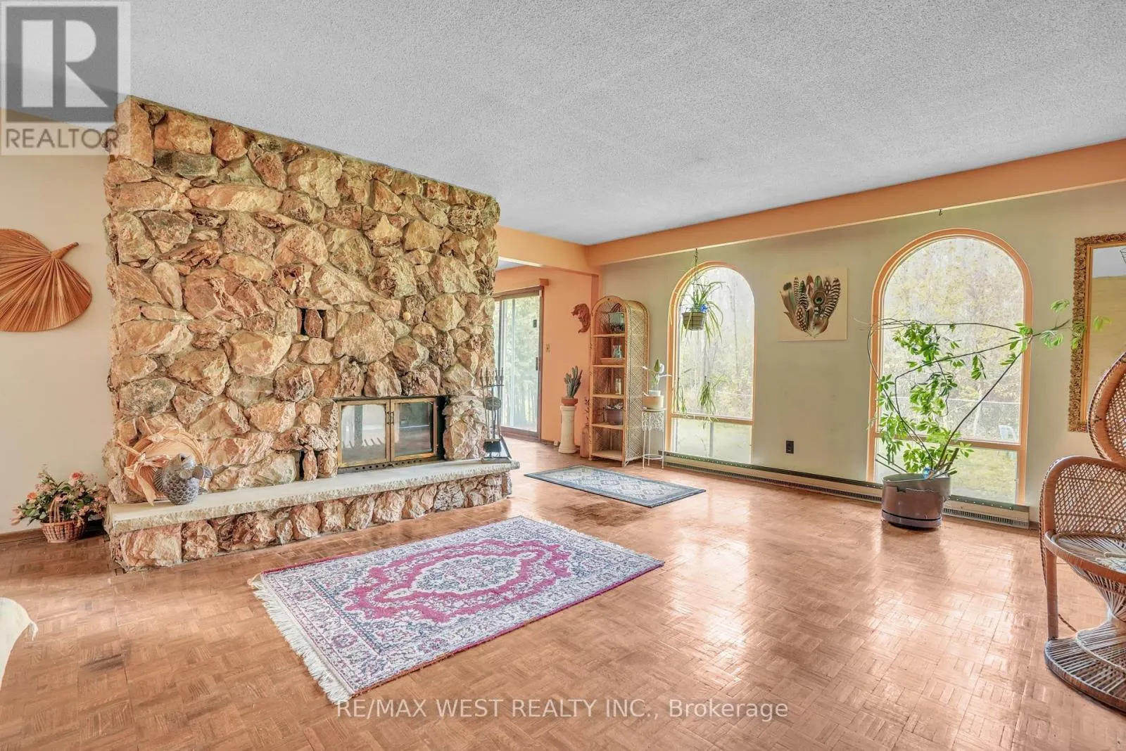 Everton to North Shore Welcome to a rare opportunity to enjoy the relaxed lifestyle of Gilford's coveted lakeside community. This sprawling all-brick bungalow backs directly onto Harbourview Golf & Country Club and is just steps from the beach, offering the perfect balance of nature, recreation and small-town charm. Set on a beautifully treed 75x150 ft lot, this solid home offers 3+1 bedrooms, 3 bathrooms, and a finished basement, providing generous space for family living or weekend escapes. Inside, the living and dining areas are highlighted by soaring cathedral windows and a striking natural stone two-sided fireplace, creating a warm and inviting focal point for both entertaining and relaxing evenings at home. The main-floor primary suite offers comfort and privacy with its own ensuite bath. The finished lower level expands the living space with an additional bedroom, bathroom, large recreation/family room, and plenty of storage. Outdoors, enjoy peaceful mornings and summer gatherings surrounded by mature trees and nature. A large private driveway with no sidewalk provides ample parking. Ideally located just minutes to Cooks Bay, two marinas, golfing, the Tanger Outlet Mall, and Hwy 400, with Toronto only 40 minutes away, this location combines lakeside tranquility with everyday convenience. Recent updates include electrical panel, roof shingles, front entry door, oversized garage doors, select basement windows, and a new garden shed. This well-built home offers tremendous potential and is ready for its next chapter. Bring your vision and personal updates - the property is being sold in as-is condition. A wonderful opportunity to create your dream home in one of Lake Simcoe's most desirable communities. (id:27476)