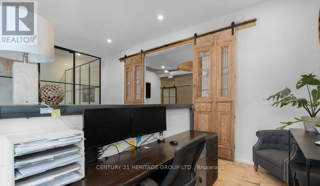 Queen and Dufferin One-of-a-kind mixed property with retail/office/Apartment space, Located in the heart of quaint Cookstown just 5 minutes from the 400 HWY this property has had many successful businesses over the years. Fully gutted and renovated in 2021 and 2022. The main commercial unit has huge wide-plank wood flooring and a wrap-around covered porch. You enter through garden doors to a glassed in office space with 10-foot ceilings and to your right a ship lapped wall perfect for your business logo. Through the Egyptian antique doors to the huge board room with Balinese light fixture (and pot lights) and industrial style tile work. A small kitchenette area and3-piece bathroom are also in this space as well as a huge storage area with garage door and back door for all of your storage needs. Parking around back, as well as on the boulevard in front of the property your commercial visitors will never be at a loss for parking. Endless opportunities for this property. What business will you open up? Vacant building open to any date. (id:27476)