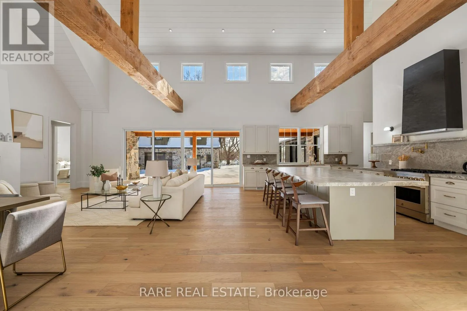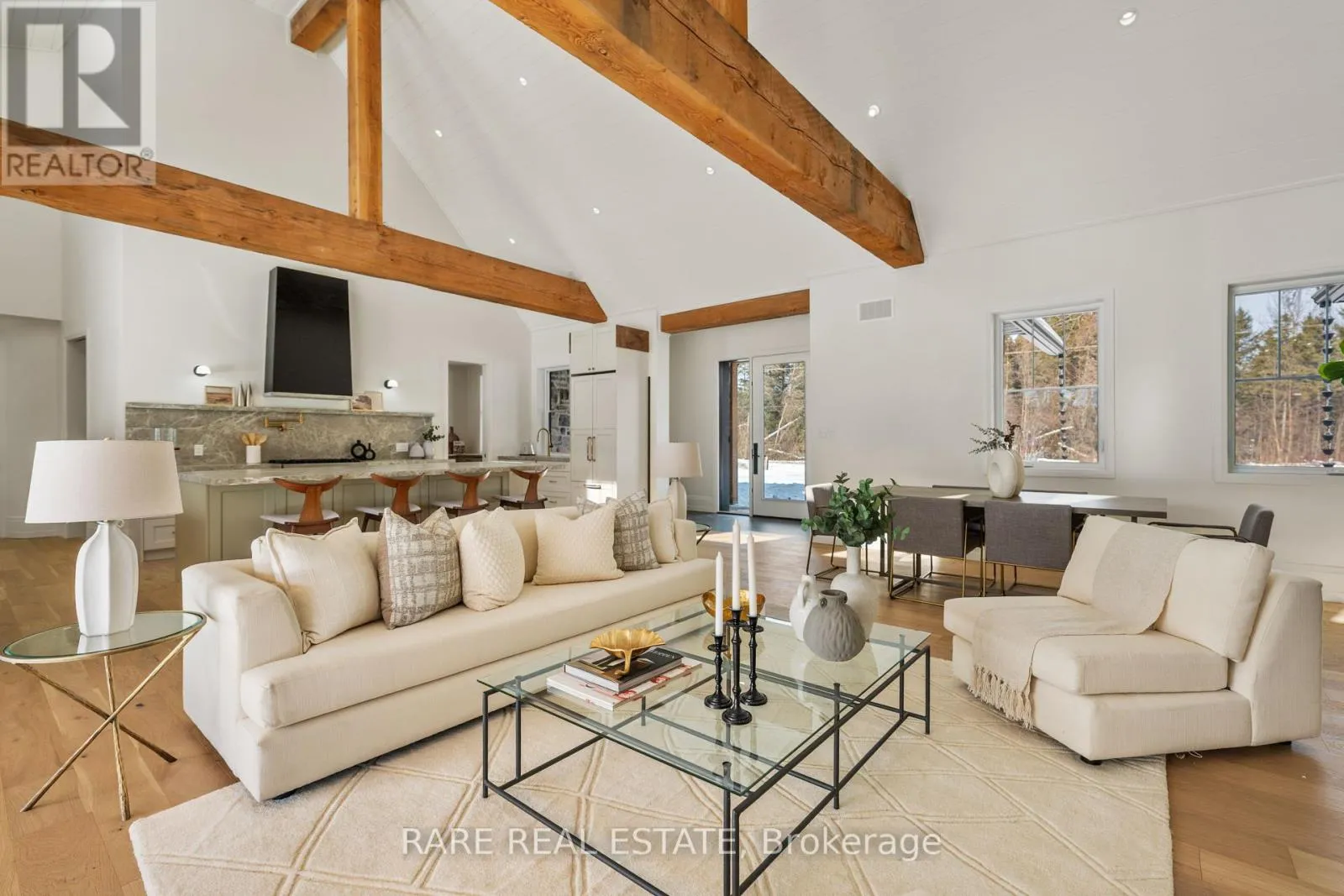 2nd Line & 20th Sideroad A rare offering for those who appreciate quality and thoughtful design. This custom-built estate combines solid ICF construction and spray foam insulation with carefully selected finishes throughout. Inside, 18-foot vaulted ceilings and expansive windows create a bright, open atmosphere. Engineered Oak Woolf flooring, architectural fir beams, and custom millwork add warmth and character. The kitchen is both beautiful and functional, featuring premium appliances, a walk-in pantry, and a serving window to the backyard, while a 16-foot sliding door extends the living space outdoors to a snow melt patio. The primary suite is a true retreat leading to a spa-inspired ensuite with radiant in-floor heating. A fully self-contained legal second dwelling includes its own kitchen, laundry, separate utilities, and a dedicated 100-amp panel, offering excellent flexibility for extended family or additional income. Currently operating as a successful Airbnb, it generates approximately $250 per night. Guests are drawn to the unbeatable lifestyle- lake swimming in the summer and ice fishing in the winter. The property also includes a coach house with the potential of creating even more possibilities for additional living space, a studio, or guest accommodations. This home is equipped with a Waterloo Biofilter septic system, thoughtfully engineered to support the potential addition of a pool while offering both efficiency and flexibility for your long term plans. With lake views from the Juliet balcony, and just a short walk to the water, this energy efficient home offers comfort, versatility, and an exceptional lifestyle. (id:27476)