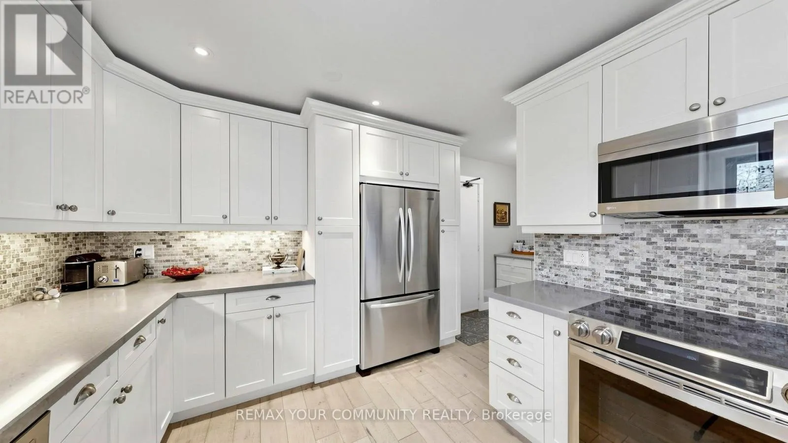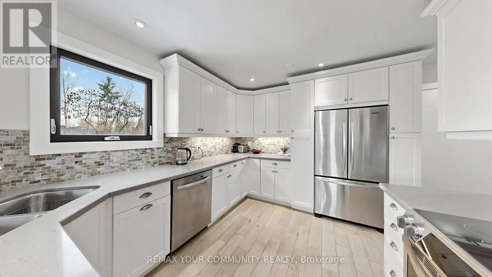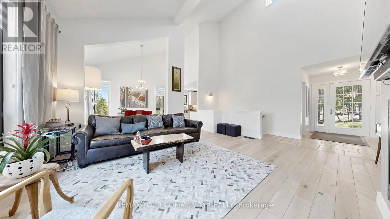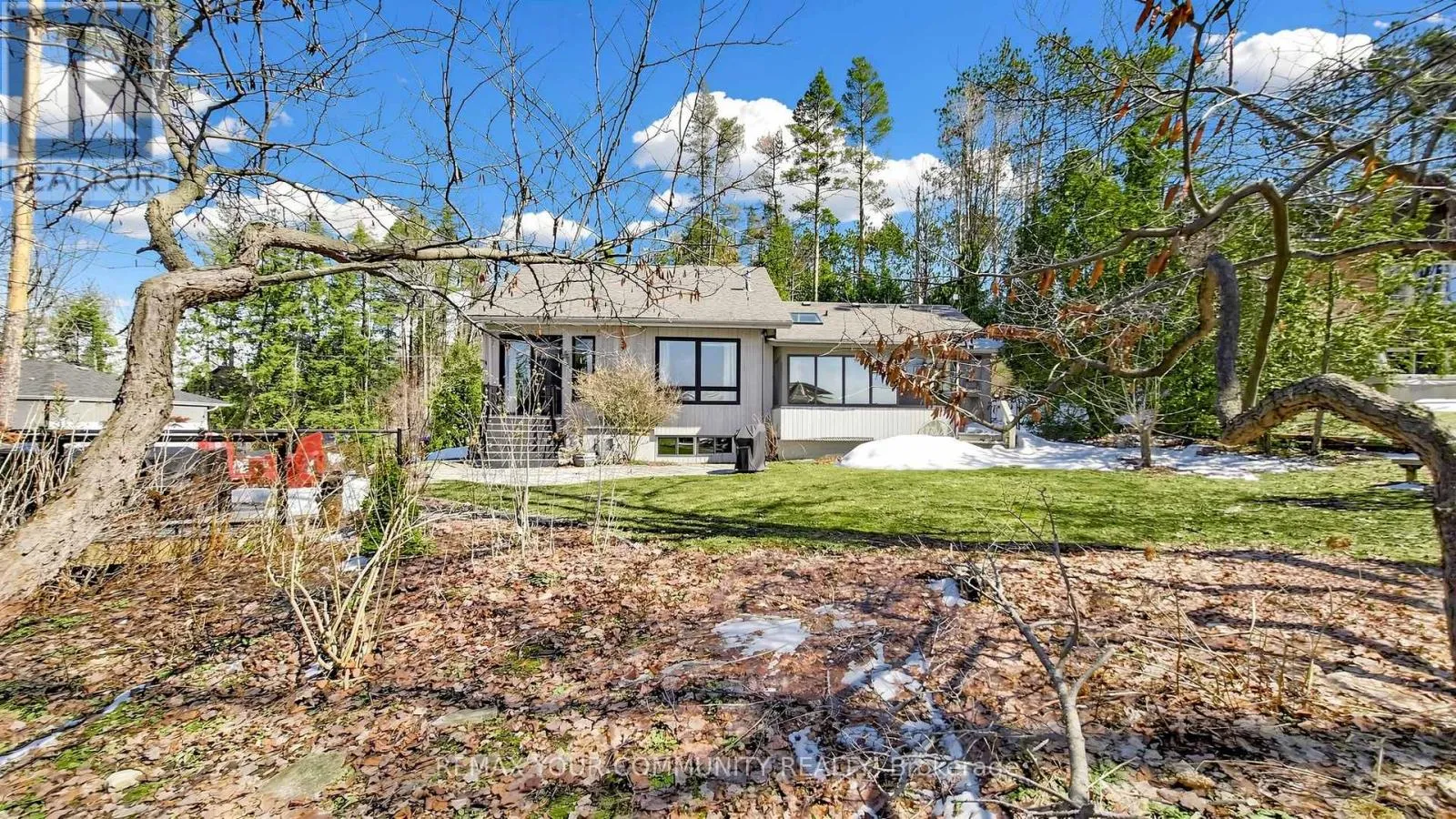 Big Bay Pt To Fairway Rd It will take your breath away! Fully renovated contemporary bungalow offering a rare blend of country-style living with deeded access to a private beach. Over 3,000 sq ft of finished living space, includes 3 bedrooms on the main floor with 3 washrooms and finished basement with large crawl space for extra storage. Set on a private treed lot, this home features a bright open-concept main living space highlighted by soaring 20-ft cathedral ceilings, and engineered hardwood flooring on main. The chef's kitchen is finished with quartz countertops, marble backsplash, and quality appliances, flowing seamlessly into the living and dining areas with extended large windows. There are two walkouts to a beautifully landscaped yard. The main level includes a spacious primary suite with a spa-inspired ensuite featuring a glass shower, skylight, and closet space. One bedroom has been converted into a functional home office, and a convenient main floor laundry adds to everyday ease. The finished basement features quality laminate flooring and offers additional living space with a rec room and bedroom (with two windows), ideal for guests or extended family. Premium finishes throughout include solid wood doors with Italian hardware, Grohe plumbing fixtures, Toto toilets with washlets, and thoughtful upgrades for comfort and efficiency. Most recent updates include a high-efficiency fumace (2023), multi-stage water filtration system (2024), new garage door (2024), epoxy garage floor (2025), and new back porch (2025). Owned tankless water heater. Located steps from deeded access to a private community beach, offering a unique lifestyle opportunity in a serene setting. (id:27476)
