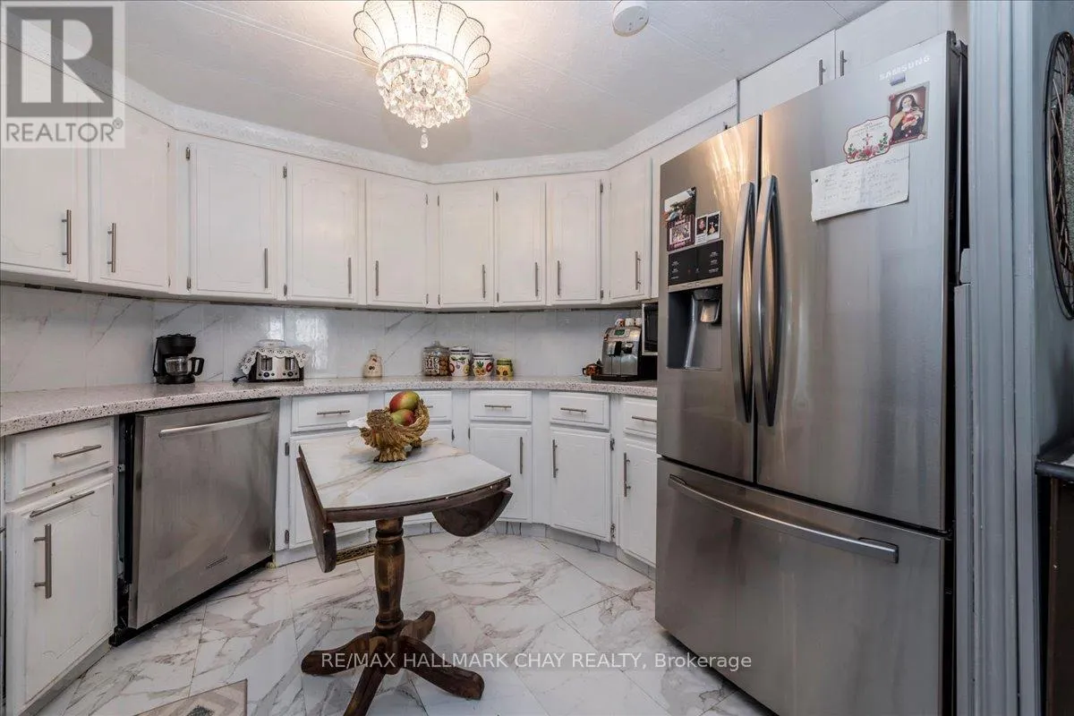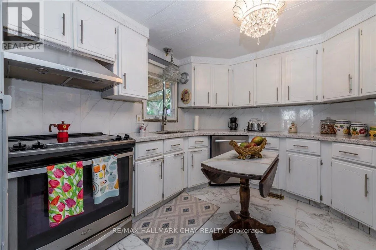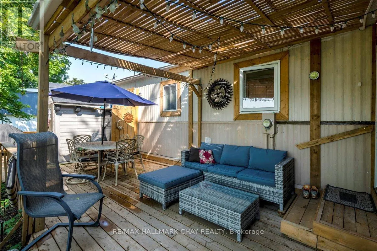 Cross Streets: FLORA AND LINDEN LANE. ** Directions: FLORA TO LINDEN LANE. Fantastic Opportunity in Innisfil's Sought-After Sandycove Acres! Beautifully updated 2-bedroom, 2-bathroom home offering approximately 1,120 sq. ft. of stylish, comfortable living space-backing onto private green space for added tranquility. Enjoy a bright sunroom with walkout to your own secluded backyard oasis, complete with mature trees, extensive decking, pergola, shed, and multiple seating areas-perfect for relaxing or entertaining! Step inside to a fully equipped kitchen featuring granite countertops, backsplash, and stainless steel appliances. A grand formal dining room and a spacious living room with fireplace provide elegant and cozy gathering spaces. The generous primary bedroom includes a walk-in closet and private ensuite bath. A second full bathroom offers double sinks and convenient in-suite laundry. KEY UPDATES: Kitchen, Bathrooms, Flooring, Lighting, Sunroom, Front & Back Decking & Landscaping. Private 2-car driveway. Cozy front porch with covered entry. Ample storage throughout. Located just minutes from shops, restaurants, beaches, marinas, golf courses, and the incredible Friday Harbour Resort. Enjoy year-round amenities and events in this welcoming, mature community. Don't miss your chance to call this peaceful retreat home! Land lease total: includes property taxes $1051.43 per month (id:27476)
