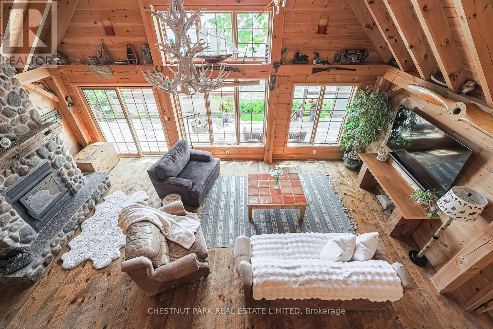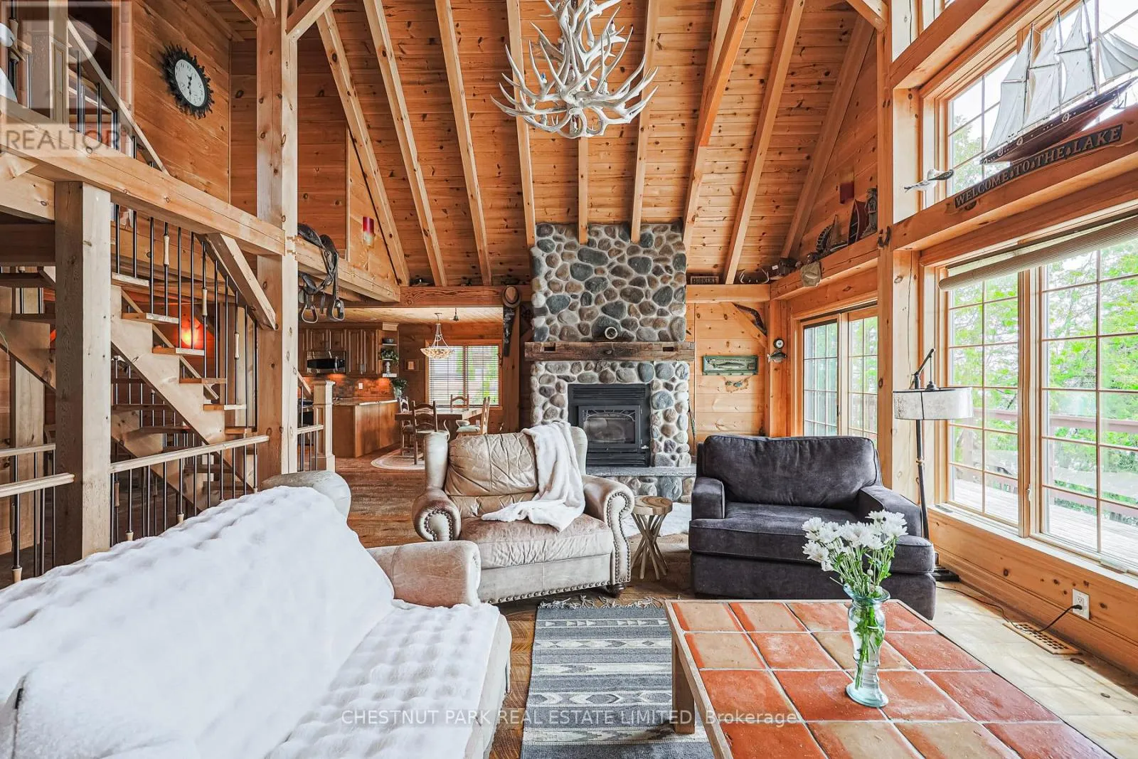 Cross Streets: Mapleview Drive & 25th Side Road. ** Directions: Mapleview Drive to Crescent Harbour Road. This exceptional 2011 custom-built home with over 3,000 sq ft of finished living space offers the perfect blend of modern luxury and classic cottage charm. Located just one hour north of Toronto on a private road, this stunning property provides just shy of 75 feet of private shoreline and panoramic eastern views for unforgettable sunrises. Gaze out across the lake and catch sight of both Fox and Snake Islands to the south. The waterfront is truly one-of-a-kind, featuring a beautifully crafted stone wall and patio that stretches across the entire frontage, creating an inviting space for entertaining, relaxing, or enjoying direct lake access - this is lakeside living at its finest. A custom-built boathouse with room for a 24-foot boat, a railway system, and a spacious dock make boating and waterfront activities effortless. Inside, the main floor is designed for comfort and connection, with an open-concept layout that includes a great room with a floor-to-ceiling stone wood-burning fireplace, a kitchen, and a main-floor primary bedroom that faces the water. Walk out to the expansive deck for seamless indoor-outdoor living. Upstairs, two more bedrooms and a full bath offer space for family or guests. The fully finished basement adds two additional bedrooms, a full bathroom, and a generous rec room perfect for movie nights, games, or cozy winter gatherings. An attached two-car garage provides direct access to the home, and above it, a partially finished bonus room offers additional square footage for a studio, office, or playroom. Outside, a paved driveway and a second detached two-car garage offer even more storage for recreational gear and vehicles. Low-maintenance landscaping means more time enjoying the lake and less time on upkeep. Whether you're looking for a summer escape or a four-season home, this property delivers the lifestyle you've been waiting for on beautiful Lake Simcoe. (id:27476)