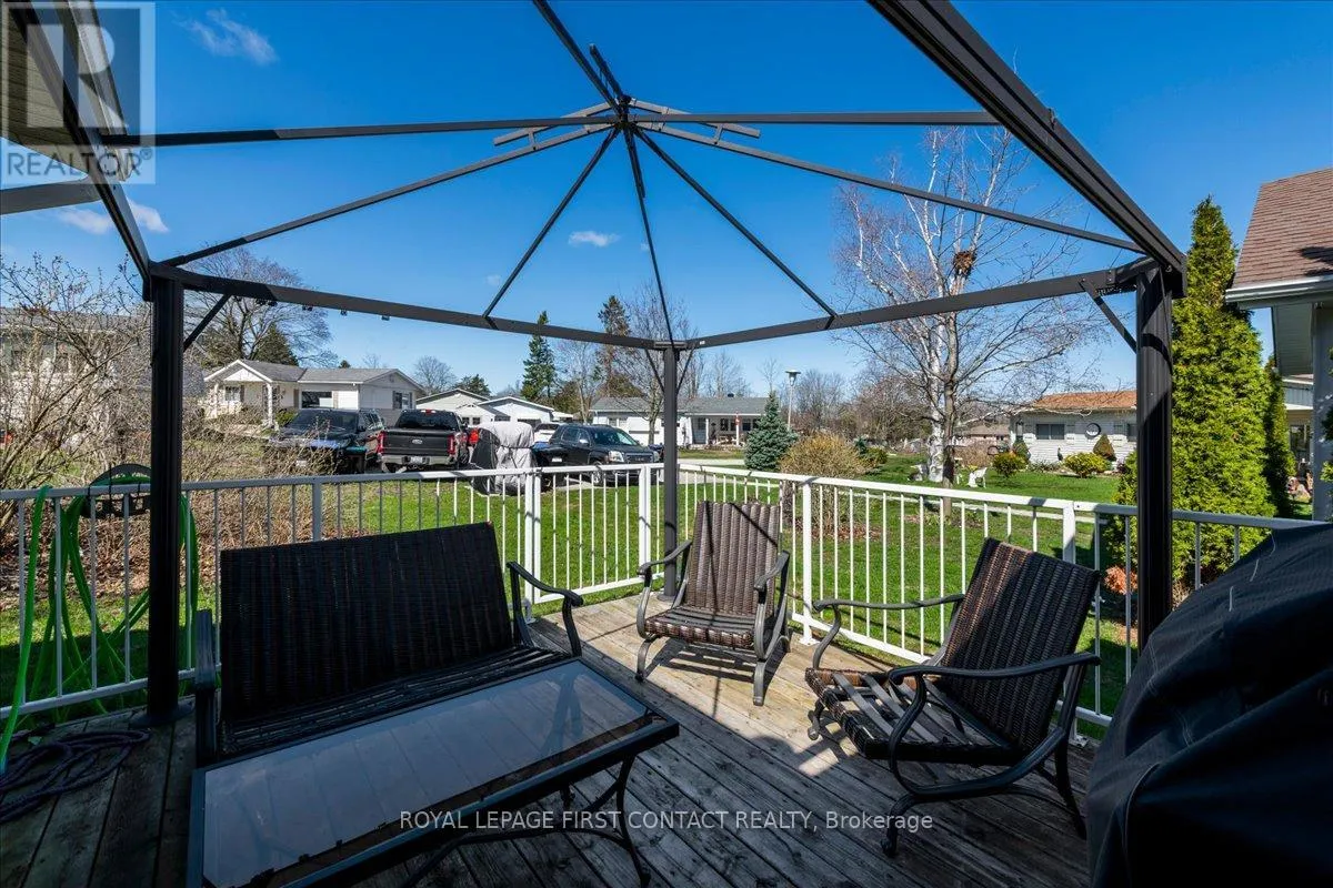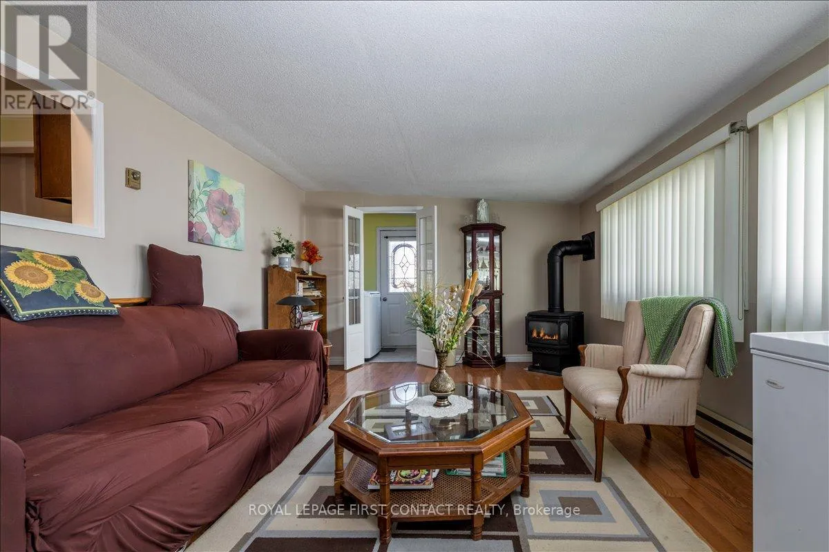 Cross Streets: Weeping Willow and Flora Drive. ** Directions: Lockhart to Weeping Willow to Flora Drive. Welcome to your new home. Located in the vibrant adult community of Sandycove Acres South conveniently located close to the community halls, swimming pool and local plaza. This clean and bright modified and renovated 2 bedroom, 1 bath Royal model featuring a 1,180 sq. ft floor plan. The home's exterior has been updated with vinyl siding and shingles (2019), has a patio paver front walkway along with a site built 8' x 8' wooden garden shed. The interior has been updated with drywall in most areas and is painted with neutral colours. The kitchen and bathroom have been updated along with a brand-new walk-in shower, sink and taps (2026). The primary bedroom has been combined with the third bedroom to create a sitting room/den with a large, shared walk-in closet. The flooring is laminate, newer front windows and sunroom windows (2023), furnace (2012) and new A/C (2025), Fridge and stove (2023). There is a large sunroom with a free-standing gas fireplace leading to a laundry room with newer appliances and access to the rear deck with a metal gazebo. The two front yard parking spaces provide easy access to the entrance of the home. Sandycove Acres is close to Lake Simcoe, Innisfil Beach Park, Alcona, Stroud, Barrie and HWY 400. There are many groups and activities to participate in along with 2 heated outdoor pools, 3 community halls, wood shop, games room, fitness center, and outdoor shuffleboard and pickle ball courts. New assumed lease fees are $ 603.87 /mo. and $ 181.11 /mo. taxes. Come visit your home to stay and book your showing today. (id:27476)