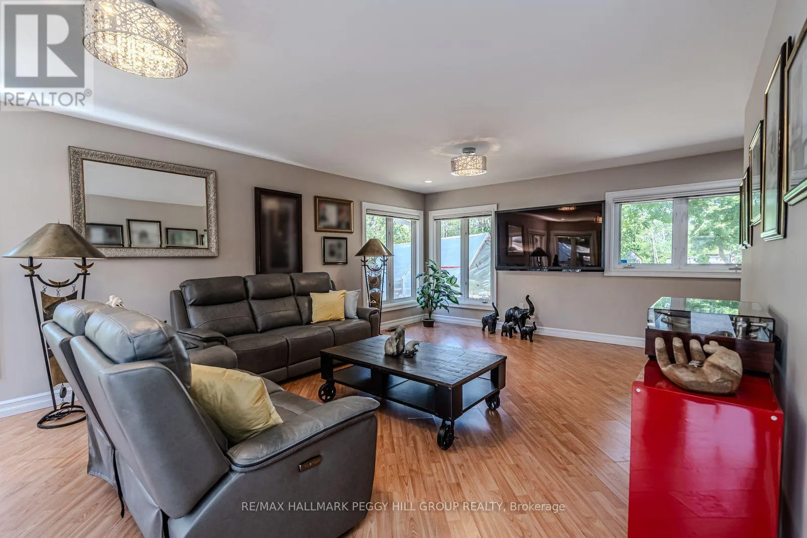 Cross Streets: 10TH LINE/25TH SIDEROAD. ** Directions: 25TH SIDEROAD/10TH LINE/LEONARD STREET. RARE ESTATE BUNGALOW NEAR LAKE SIMCOE ON JUST UNDER HALF AN ACRE WITH OVERSIZED GARAGE, 2,100+ SQ FT, MODERN UPDATES & WALKING DISTANCE TO TWO BEACHES! Set in one of Innisfil's most desirable Lake Simcoe communities, this beautifully maintained bungalow offers over 2,100 sq ft of single-level living on nearly half an acre. Enjoy proximity to a public boat launch, marinas, and two beaches within walking distance, plus quick commuter access-just minutes to Innisfil, 10 minutes to South Barrie, and a short drive to the GTA. The extraordinary oversized attached garage spans over 1,000 sq ft, ideal for vehicles, workshop space, or recreation. Features include newer insulated doors, 10-ft ceilings, LiftMaster openers, a steel beam with hoist, parking for up to six vehicles, and a circular driveway providing ample additional parking. Outdoors, the property showcases mature trees, landscaped grounds, partial water views, and a rare protected wooded backdrop with no direct rear neighbours. Inside, a bright functional layout includes three spacious bedrooms, two full bathrooms, and an updated kitchen with a centre island, abundant cabinetry, and neutral décor enhanced by modern LED lighting. Notable upgrades include a premium Lennox furnace and A/C (transferable warranty), Bosch tankless water heater (2018), R60 attic insulation (2018), architectural shingles (2018), and LeafFilter gutter guards (2019, transferable warranty). Additional highlights include 200-amp / 240V service and security cameras. The backyard retreat offers an interlock patio with a gazebo, a deck with a pergola, a fire pit area, and a large storage unit surrounded by peaceful natural beauty. This rare offering combines lot size, garage versatility, and Lake Simcoe lifestyle-perfect for those seeking space, comfort, and an easy commute to the GTA. (id:27476)