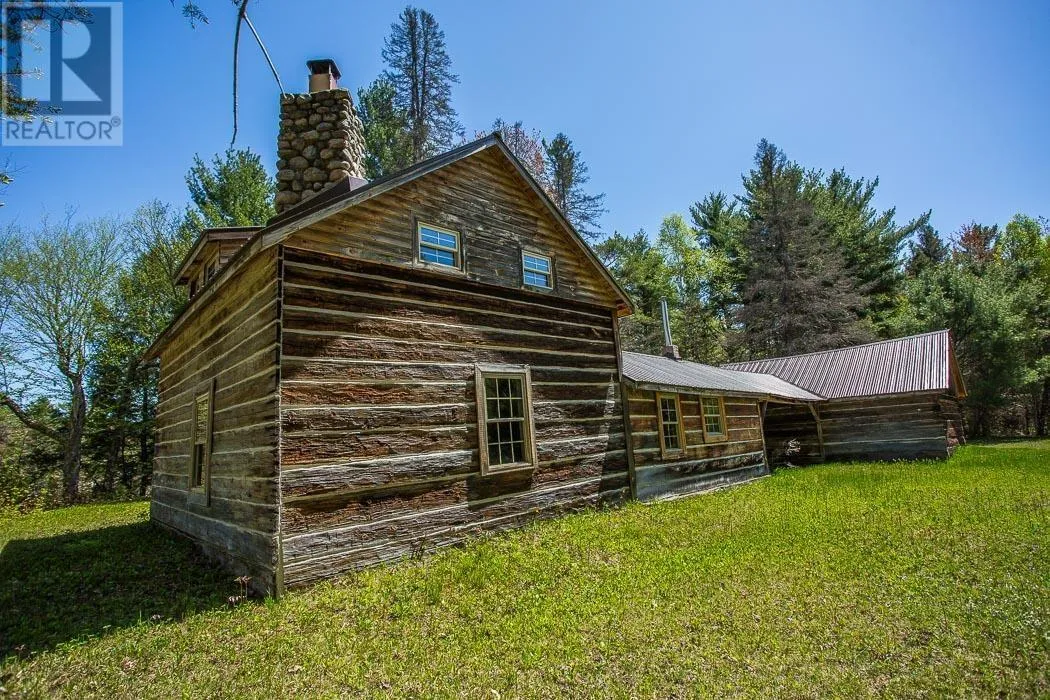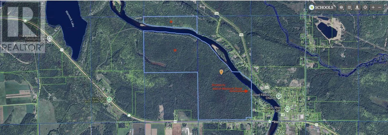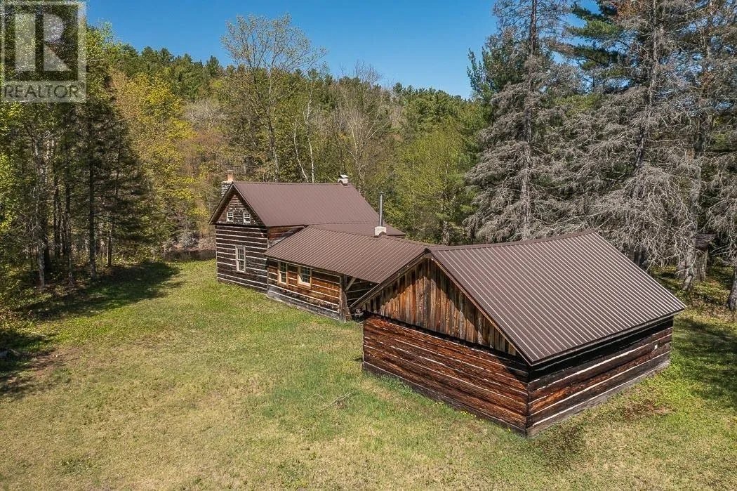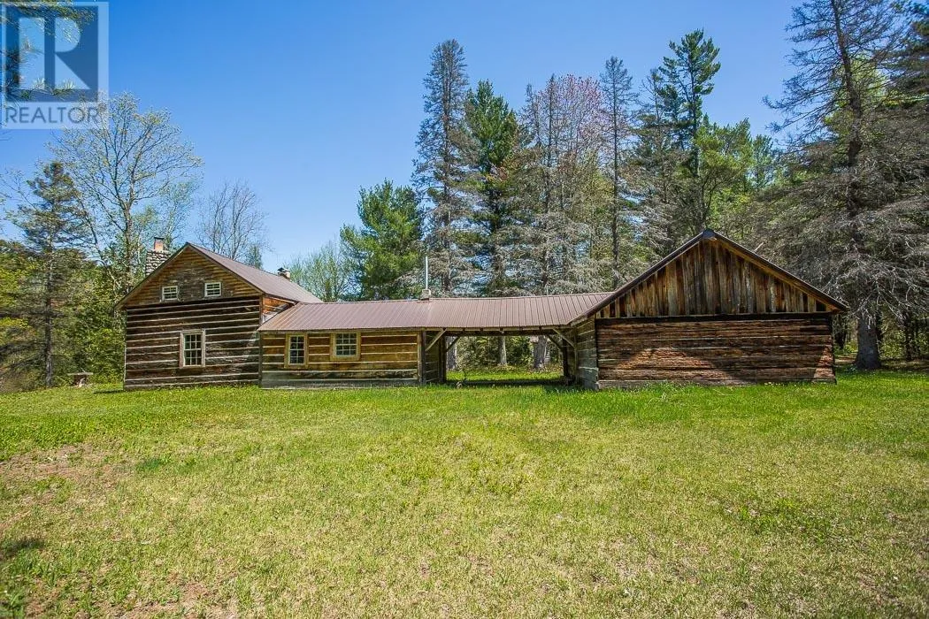 North in Iron Bridge on Warnock Road. Road ends at this property entrance. Exclusive 320-Acre Private Riverfront Estate and Northern Retreat on the Mississagi River for the Discerning Outdoorsman or Visionary Builder. One of Ontario's most extraordinary private holdings - this unspoiled wilderness estate includes both sides of the river and over a mile of secluded gated private driveway leading to a handcrafted log lodge rich with heritage and rustic elegance. For the individual who values privacy, tradition, and the essential things in life - solitude, wilderness, water, outdoor recreation, and heritage, this is not just property. It is a sanctuary. Ideal as a private family retreat, exclusive hunting and fishing lodge, or future estate residence, the possibilities here are as vast as the land itself. At the heart of the property sits a historic hand-hewn log cabin, lovingly preserved with its original stone fireplace, wood cookstove, sloping floors, and handcrafted details. Generations of outdoor adventure are etched into this property with hand-carved tallies, names, and a timeworn fishing map that whispers stories of days spent hunting, fishing, and gathering fireside. Surrounded by towering timbers of hardwoods and evergreens, meadows, and the river's rushing power, the land is rich with wildlife and ready for exploration. Whether fly fishing off your own shore, boating a winding stretch of the river, or walking forest trails in total privacy, this is a place to disconnect from the modern world and reconnect with what matters. For those who seek land not merely for what it holds, but for what it preserves - solitude, tradition, and timeless connection - this is a rare offering in the Canadian wilderness with convenient access by plane, vehicle, or helicopter. (id:27476)