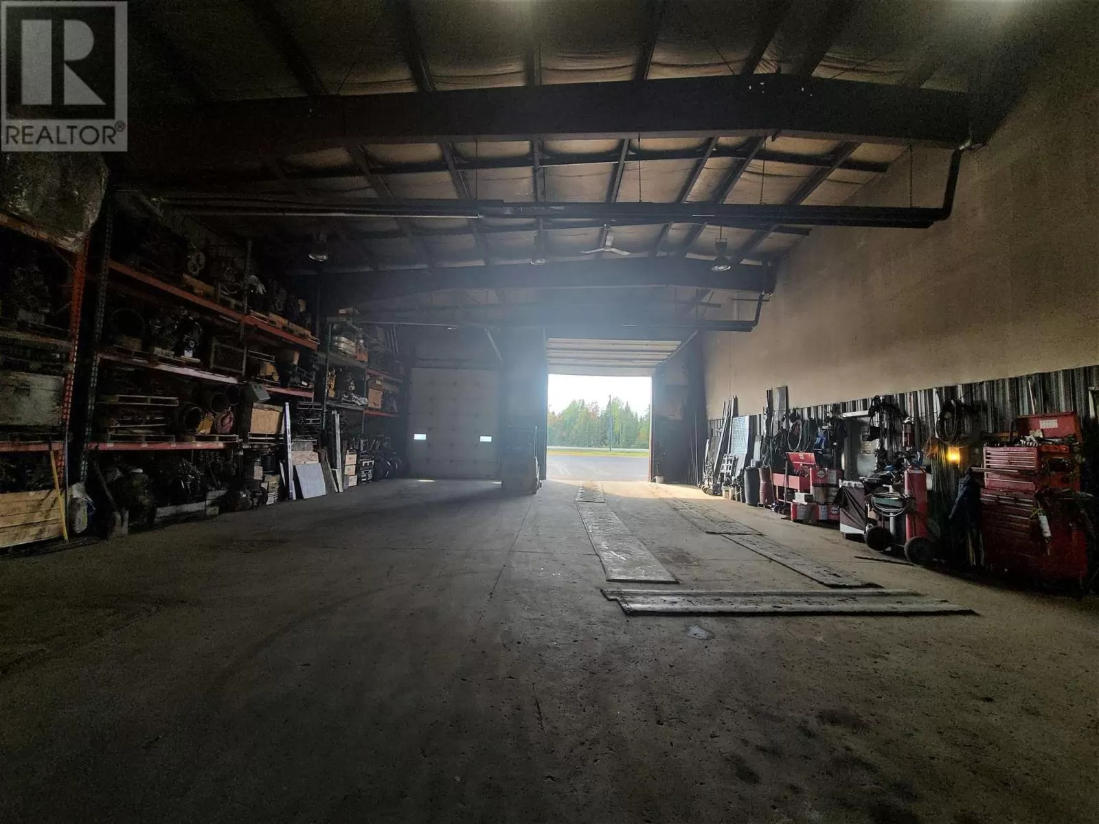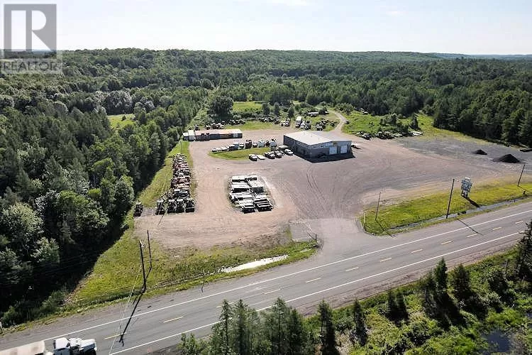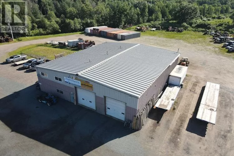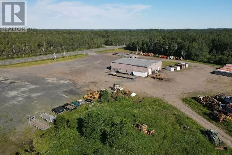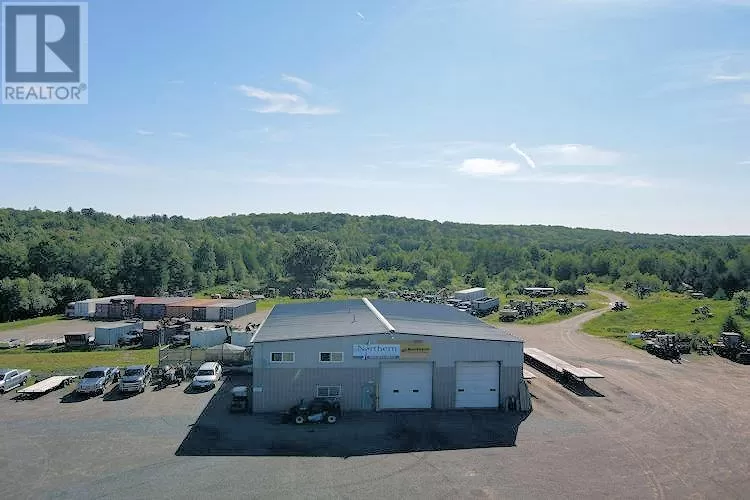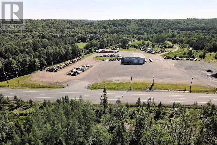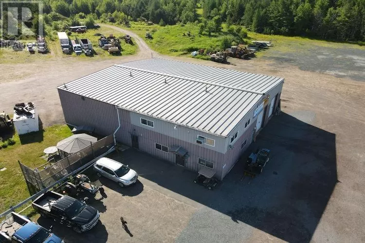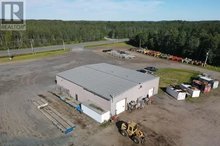 Great business opportunity! Fantastic exposure along the Trans-Canada Highway in Iron Bridge, Ontario with over 580' of frontage. This 7,589 square foot, steel Butler building is ideal for investment or owner-occupied use. The main level features a large open vaulted workshop with two overhead doors, separate parts counter and storage area, 2 private offices and reception area. The second level features cozy 1+1 bedroom apartment, open mezzanine area and an elevator lift down to the main level. This building is situated on a level 16 acres with ample parking for large vehicles and trucks. With M2 zoning this building is ideal for automotive, mining equipment and shipping/receiving use. Call for more information today! (id:27476)