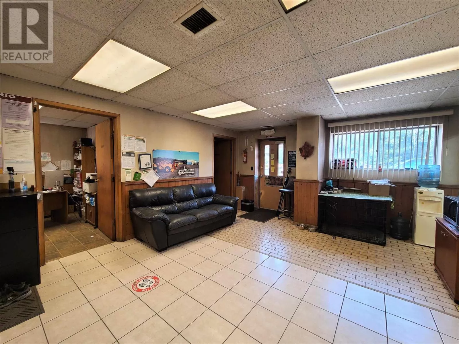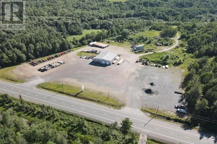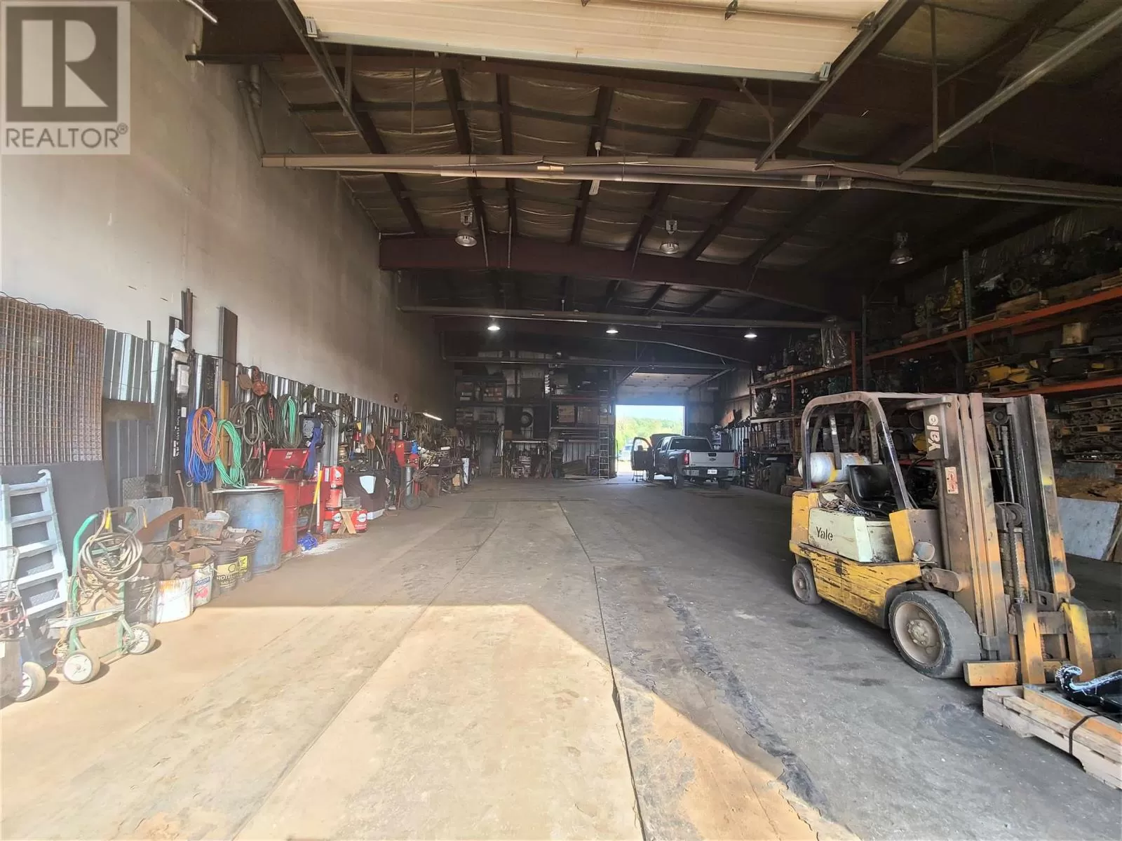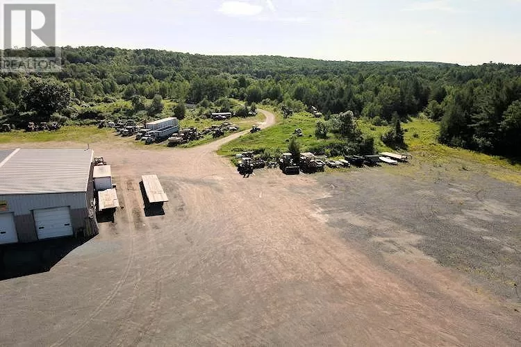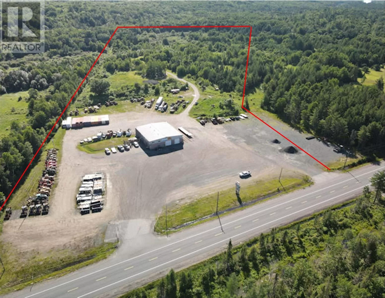 Great business opportunity! Fantastic exposure along the Trans-Canada Highway in Iron Bridge, Ontario with over 580' of frontage. This 7,589 square foot, steel Butler building is ideal for investment or owner-occupied use. The main level features a large open vaulted workshop with two overhead doors, separate parts counter and storage area, 2 private offices and reception area. The second level features cozy 1+1 bedroom apartment, open mezzanine area and an elevator lift down to the main level. This building is situated on a level 16 acres with ample parking for large vehicles and trucks. With M2 zoning this building is ideal for automotive, mining equipment and shipping/receiving use. Call for more information today! (id:27476)